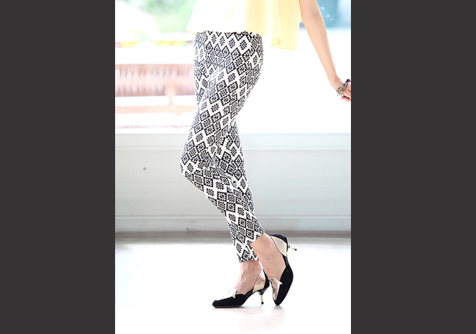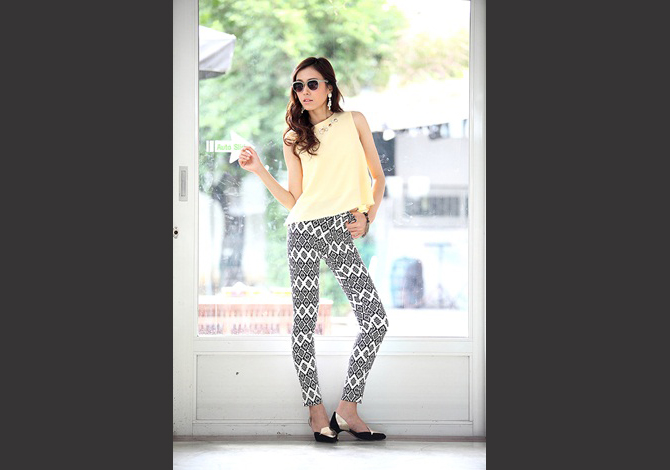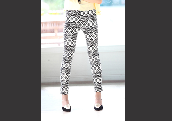 สกินนี่ ผ้าคอตตอนผสมสแปนเด็กซ์ เนื้อนิ่มยืดใส่สบายตัวสุดๆ ตัวนี้ลายผ้าเก๋ไก๋ จับมาแมทช์กับเสื้อคร๊อป หรือ เสื้อยืดเรียบๆ ก็ดูดีมีสไตล์มากๆ เลยค่ะ (น้องกุ๊กกิ๊กและฟาใส่ S นะคะ)