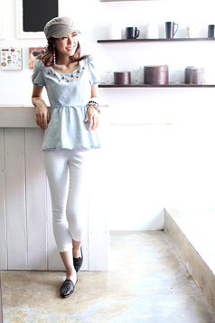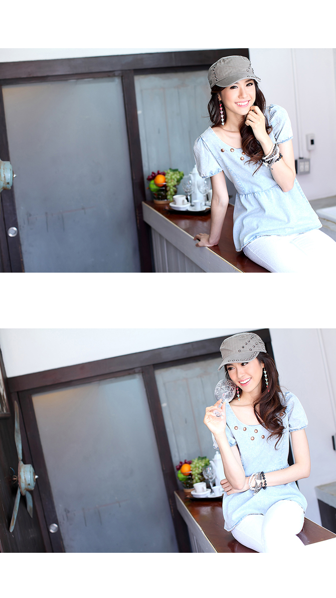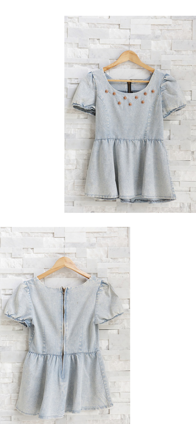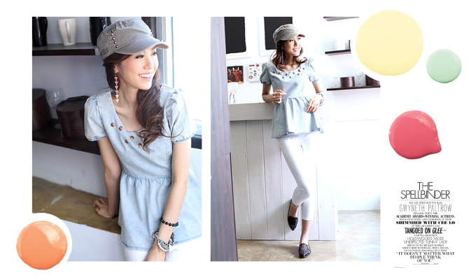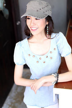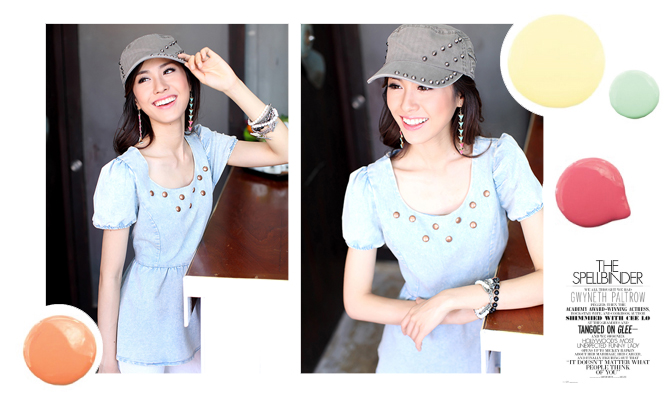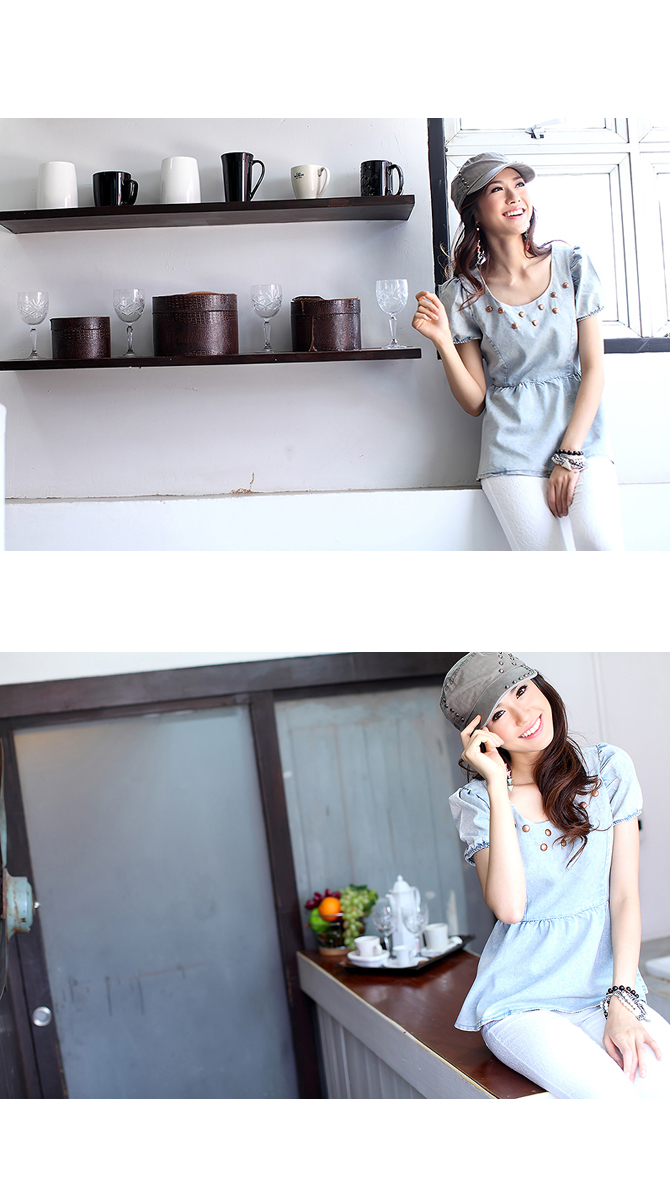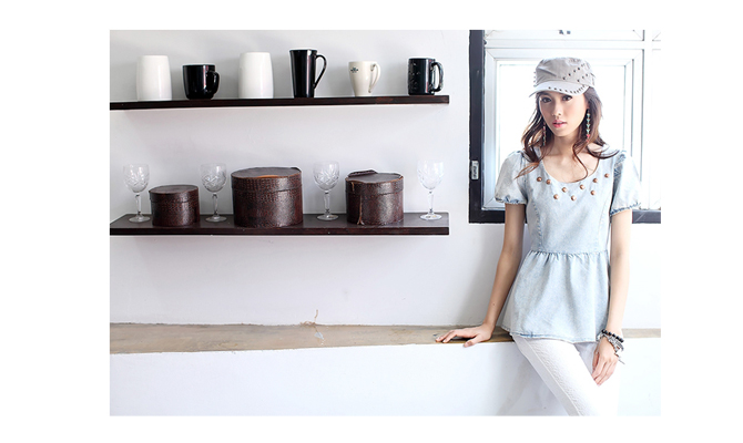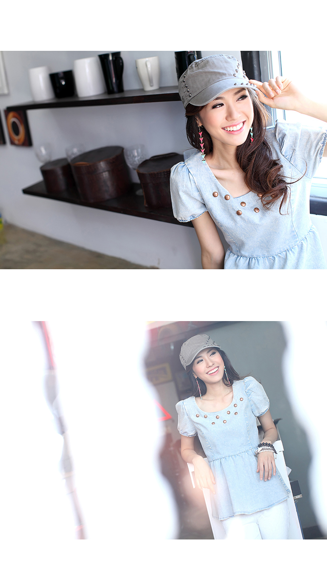 เสื้อยีนส์แขนตุ๊กตาทรงน่ารักน่าหยิก เนื้อผ้านิ่ม สีฟ้าฟอกสวยมากก ปักหมุดช่วงอกเพิ่มดีเทลเก๋ไก๋ งานดีจาก La Rami เช่นเคยค่า สาวเซอร์ สาวเท่ห์ จับแมทช์กับเลกกิ้งก็เก๋ไม่หยอกนะค๊า