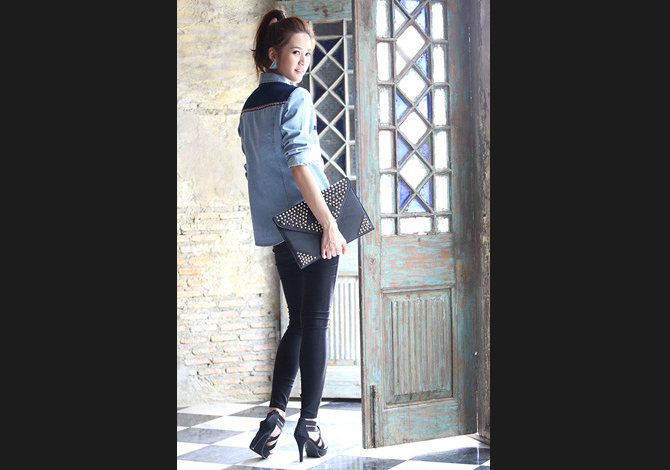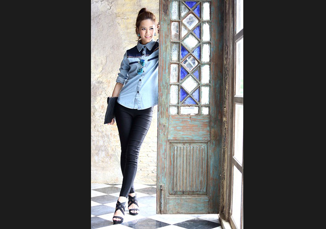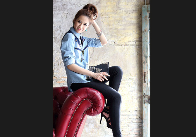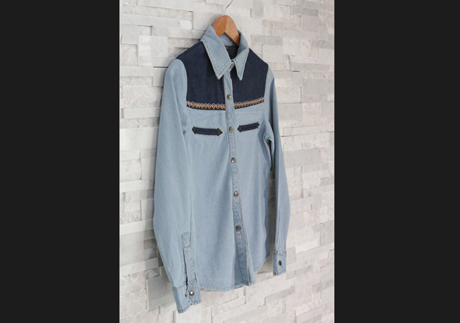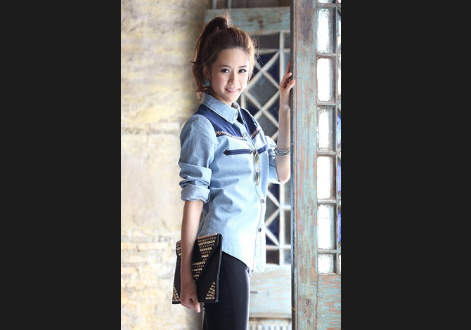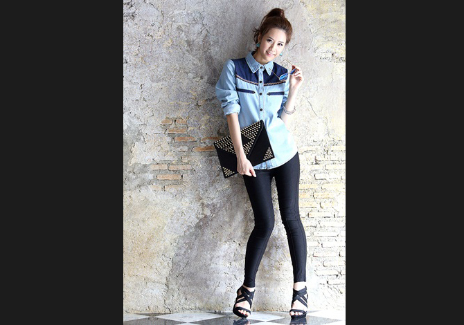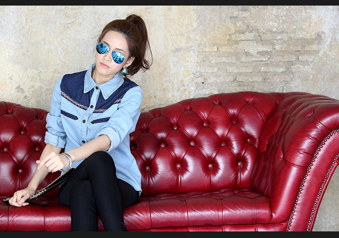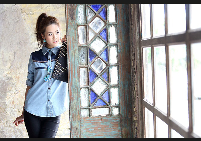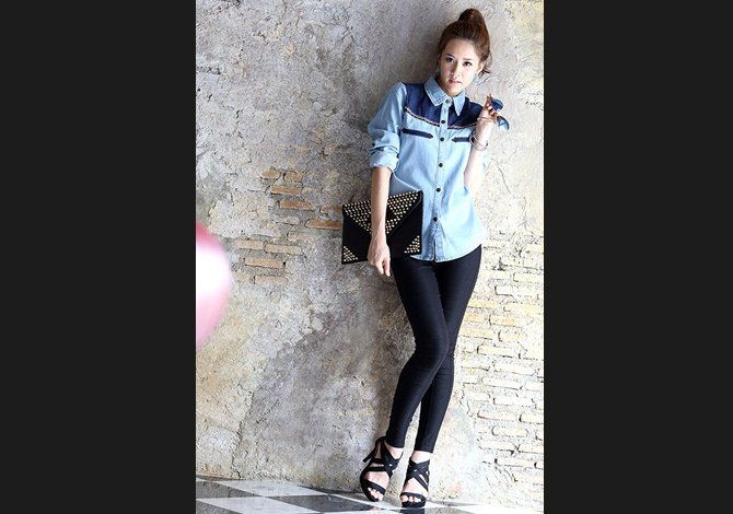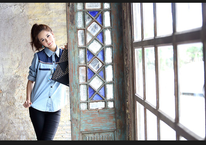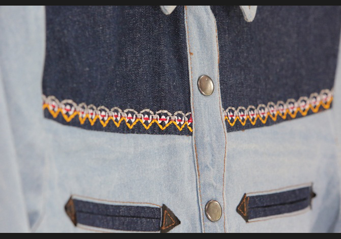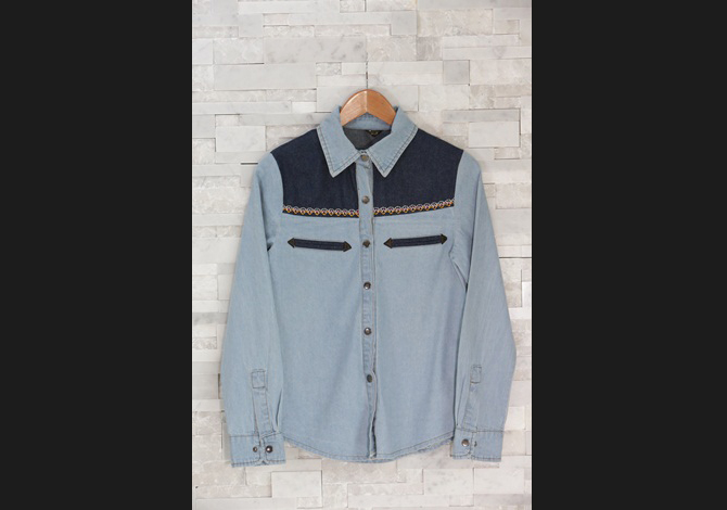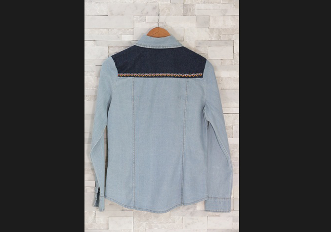 เสื้อยีนส์ตัดต่อสีเข้มและอ่อนพร้อมลายปักเล้กๆพอน่ารัก สวยเก๋ พกไว้แมทได้หลากหลายสไตล์ค่ะ