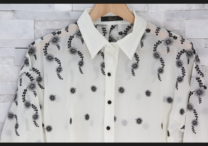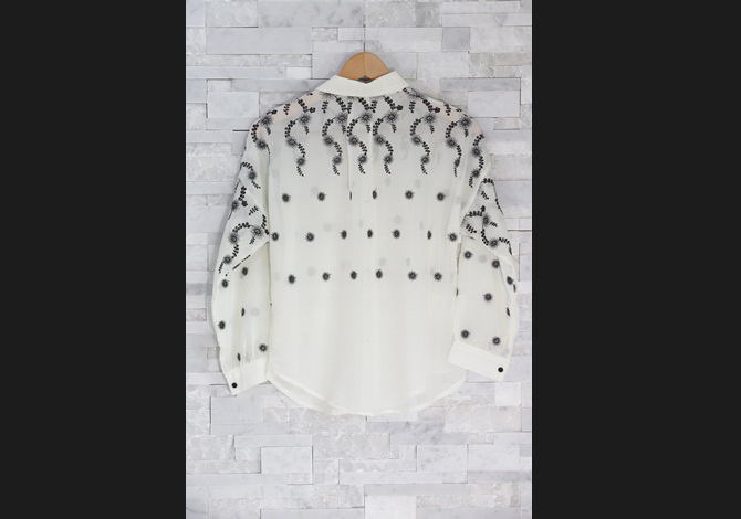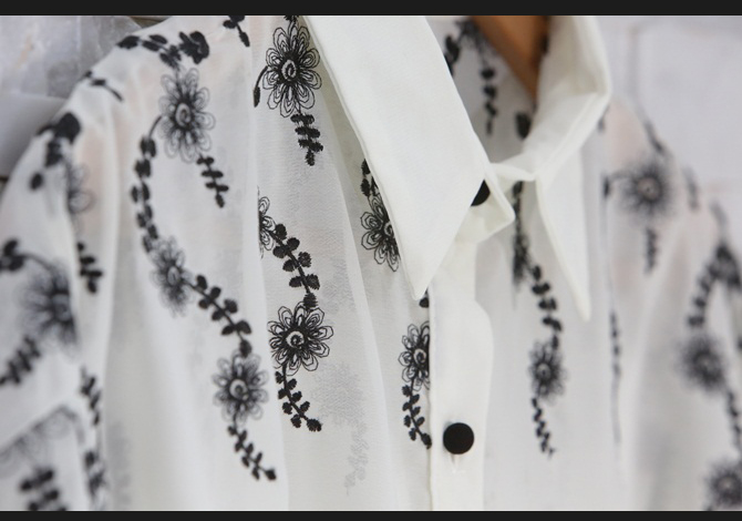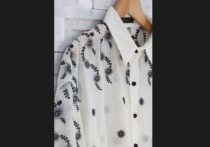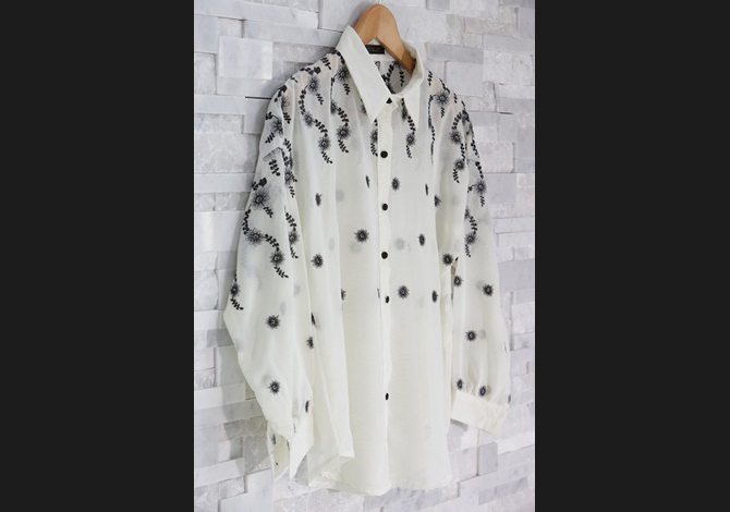 - เสื้อเชิ๊ตผ้าชีฟองเนื้อบางทรงหลวม ปักลายเถาวัลย์ช่วงไหล่สวยงามมาก งานคุณภาพเกาหลี เรียบหรูและดูดีค่า