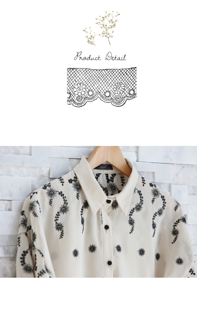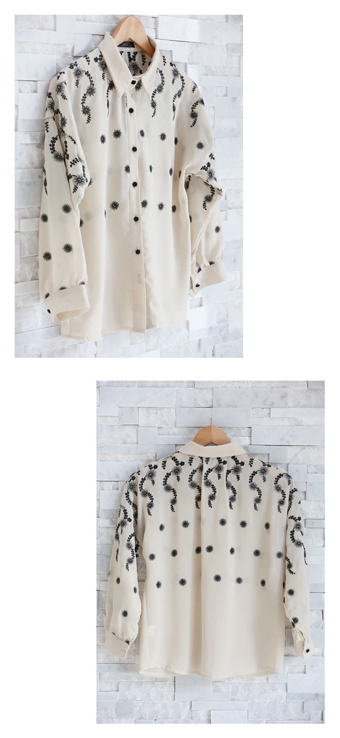 - เสื้อเชิ๊ตผ้าชีฟองเนื้อบางทรงหลวม ปักลายเถาวัลย์ช่วงไหล่สวยงามมาก งานคุณภาพเกาหลี เรียบหรูและดูดีค่า