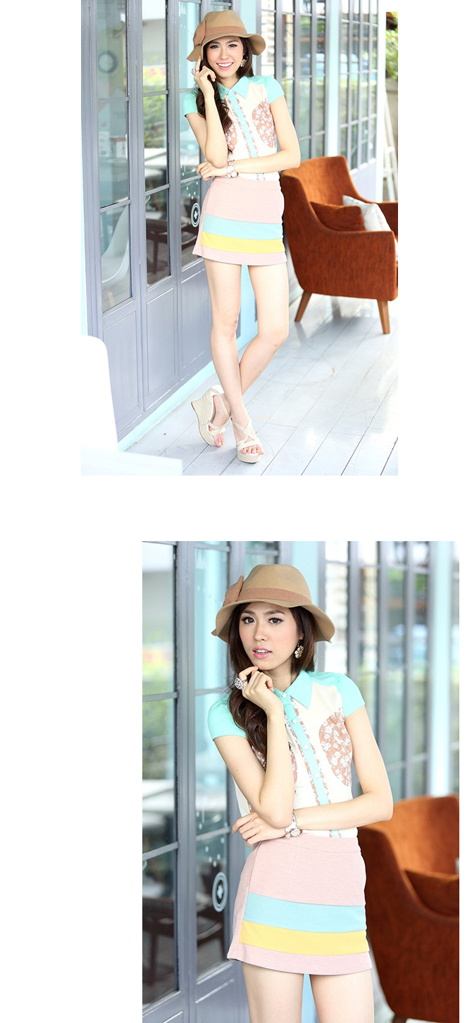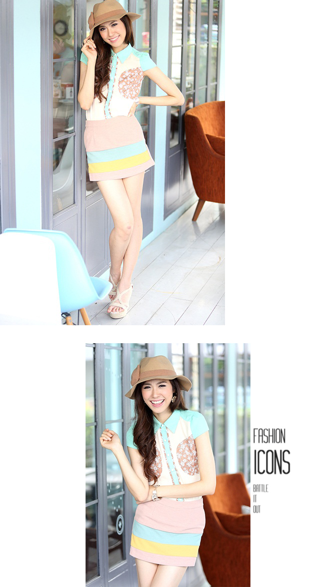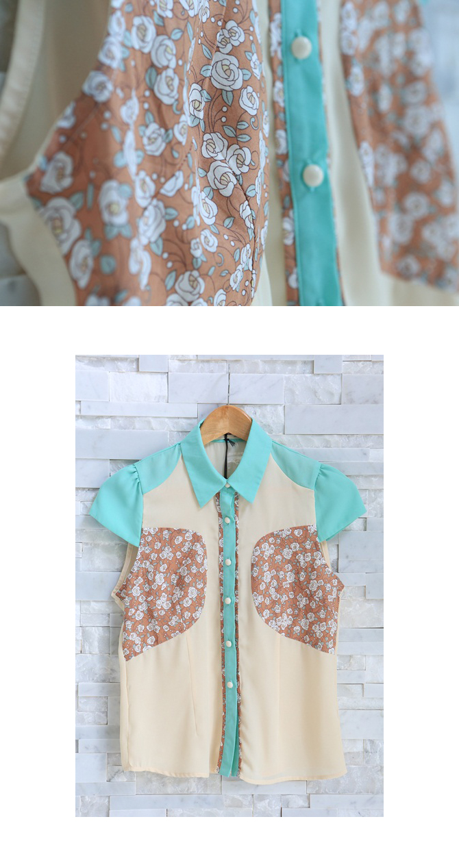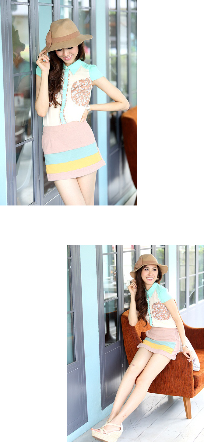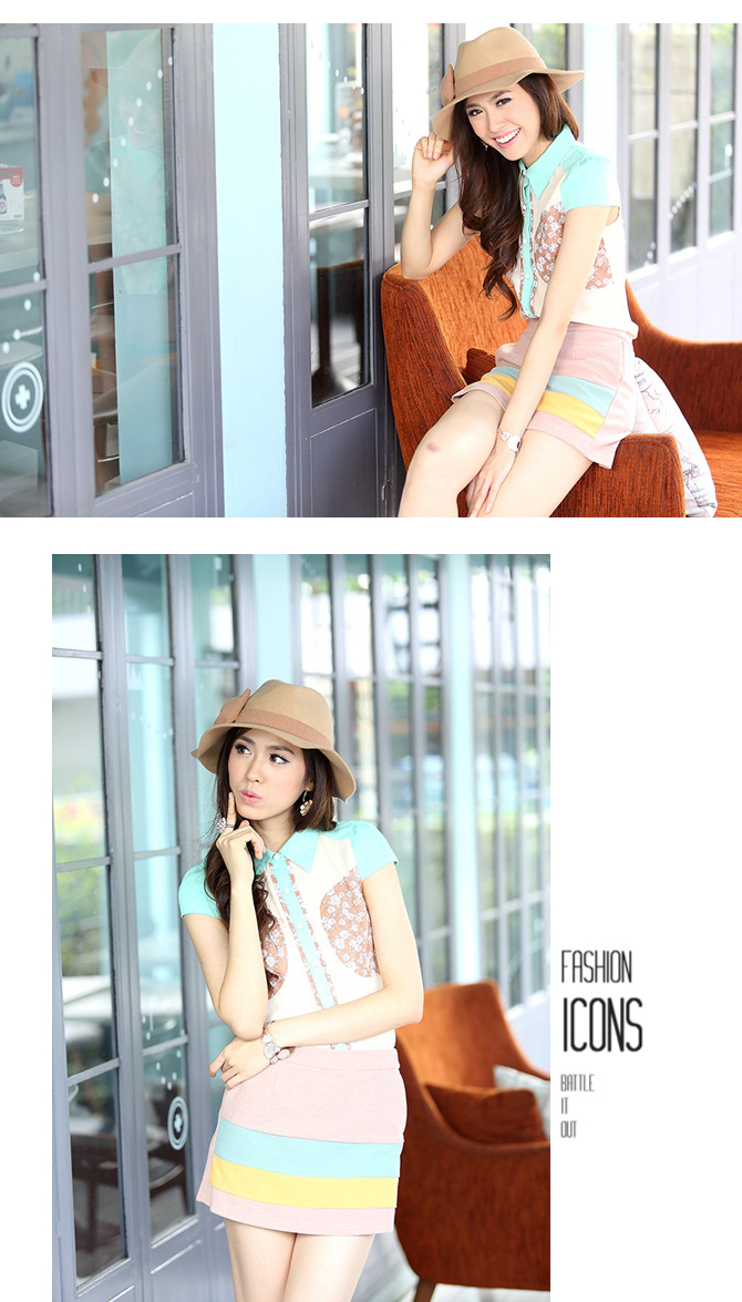 - เสื้อเชิ้ตสีหวาน ตัดต่อปก ช่วงแขน และสาบกระดุมเป็นสีเขียวเข้ากัน ช่วงตัวใช้ผ้าลายกุหลาบเพิ่มความหวาน แมทช์กับไอเทม ST280 แล้วเข้าชุดกันมากๆ ค่ะ