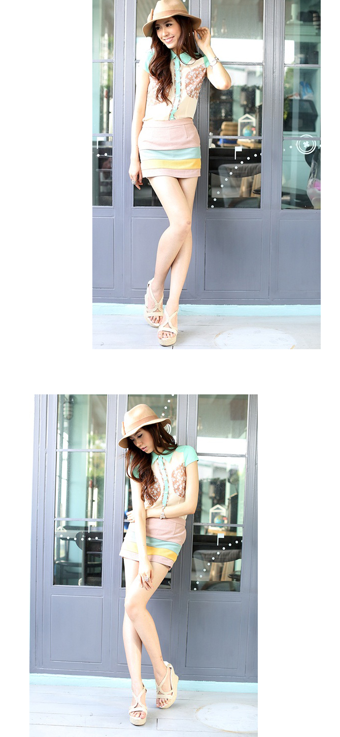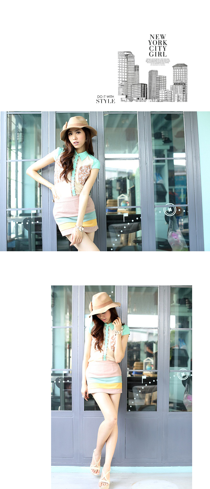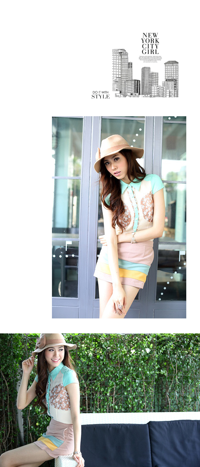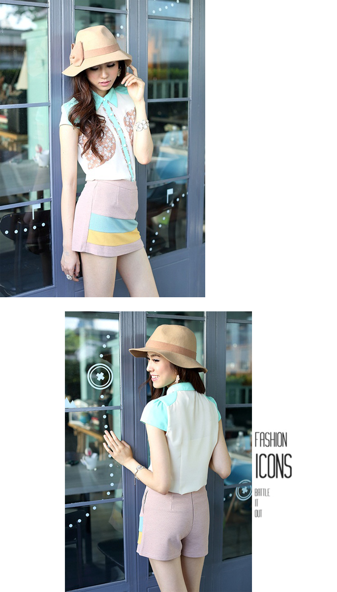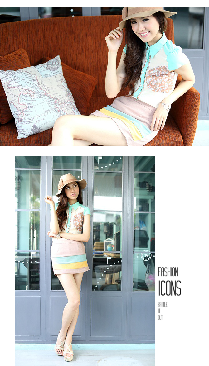 - เสื้อเชิ้ตสีหวาน ตัดต่อปก ช่วงแขน และสาบกระดุมเป็นสีเขียวเข้ากัน ช่วงตัวใช้ผ้าลายกุหลาบเพิ่มความหวาน แมทช์กับไอเทม ST280 แล้วเข้าชุดกันมากๆ ค่ะ