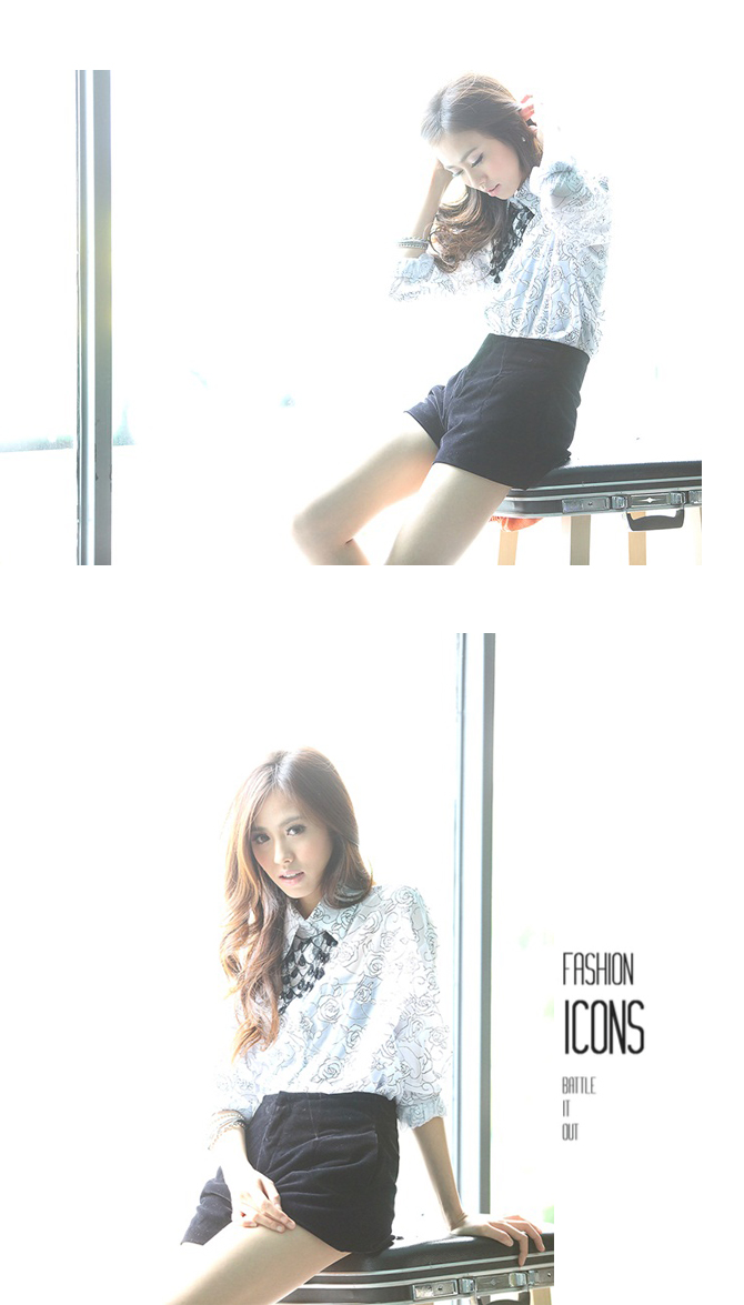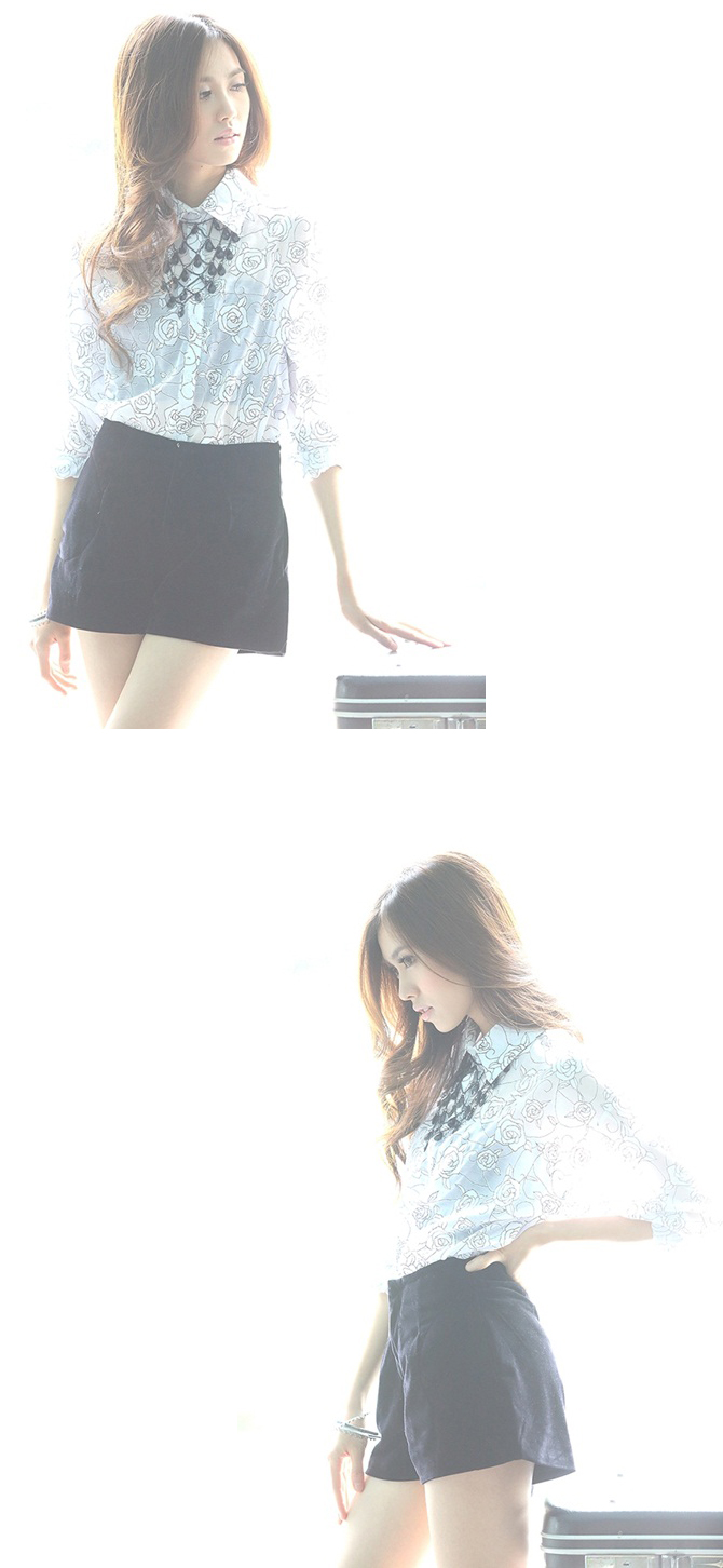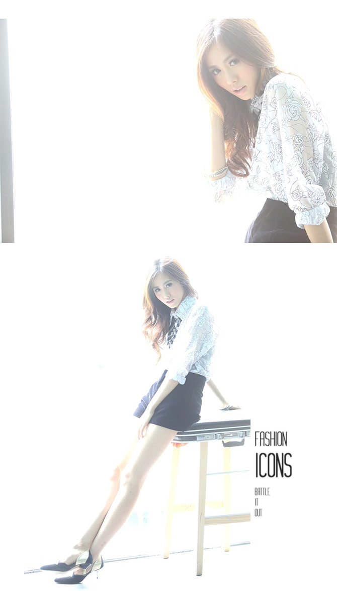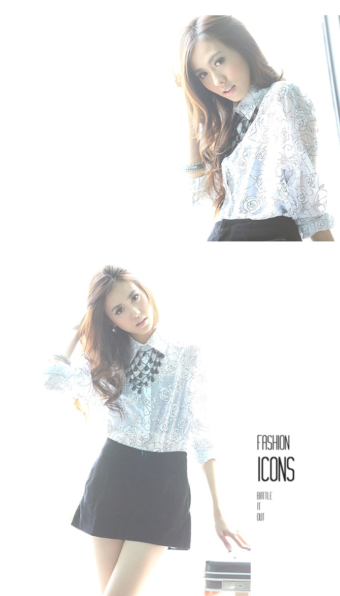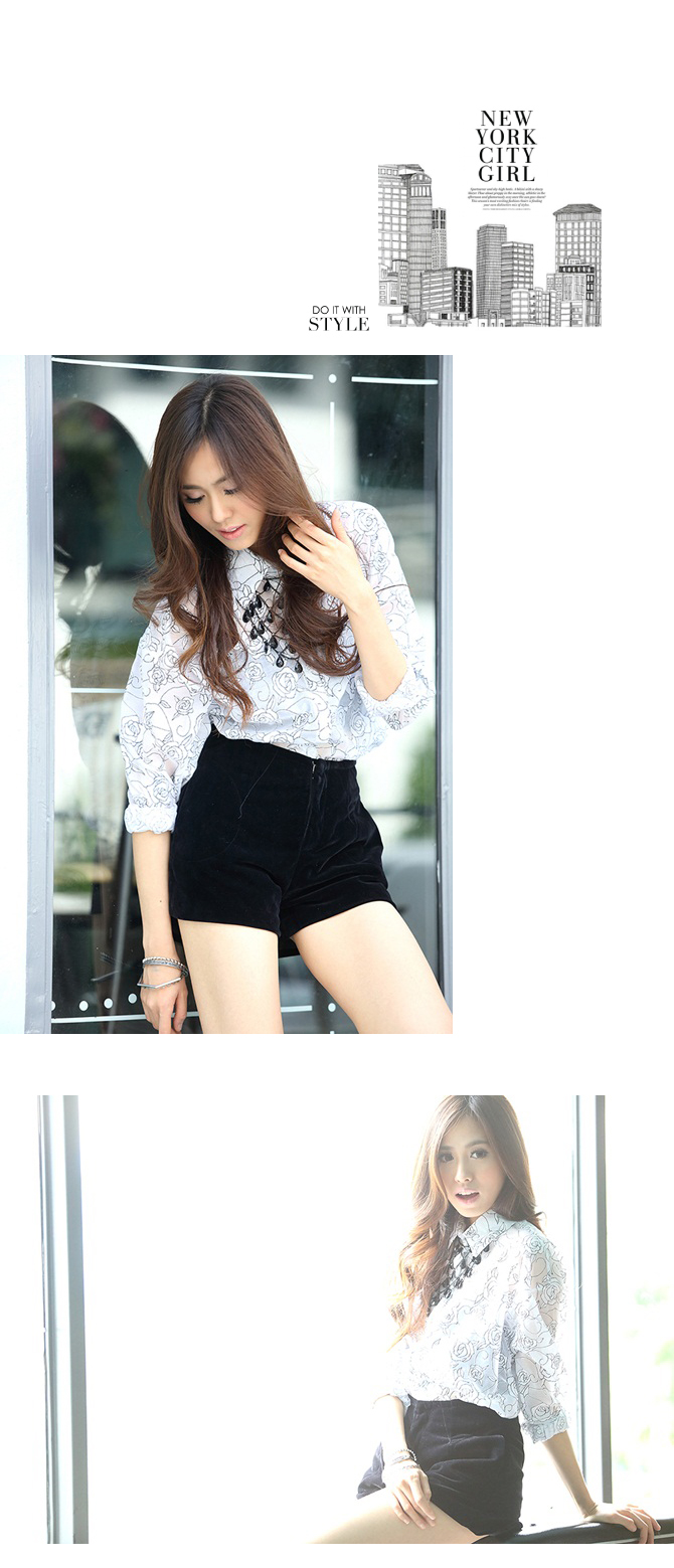 เสื้อเชิ้ตผ้าชีฟองพิมพ์ลายกุหลาบในตัว เนื้อผ้าลื่น.ใส่สบาย ปลายแขนจั้มพ์เล็กๆ จะใส่ปล่อยแขน หรือ พับแขนขึ้นก็สวยค่ะ Must Have Item นะคะ