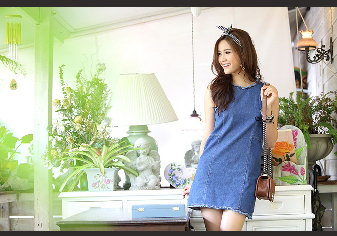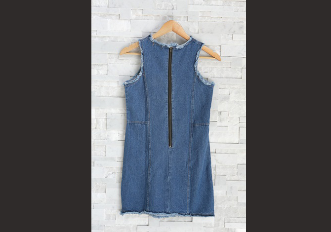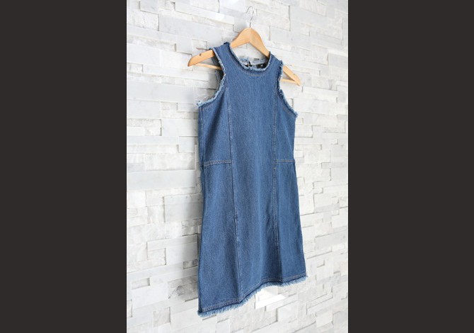 15-DS598 Ragged denim dress