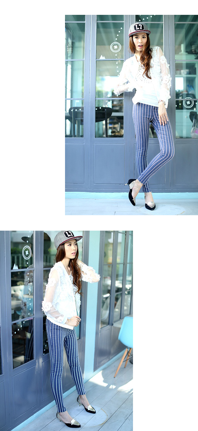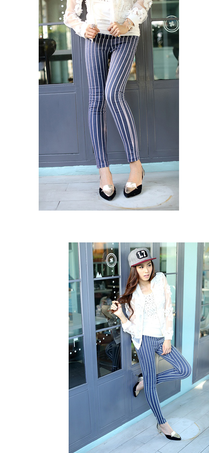 - เลกกิ้งผ้ายีนส์เนื้อนิ่มผสมคอตตอน เนื้อยืดดีหนานุ่ม ลายทางแบบฮิตๆ ผ้ากระชับพรางหุ่นได้ดี ลายทางใส่แล้วดูขายาวเรียว แมทช์ง่ายได้สารพัดนะคะ ตัวนี้มีไว้ คุ้มมากค่ะ