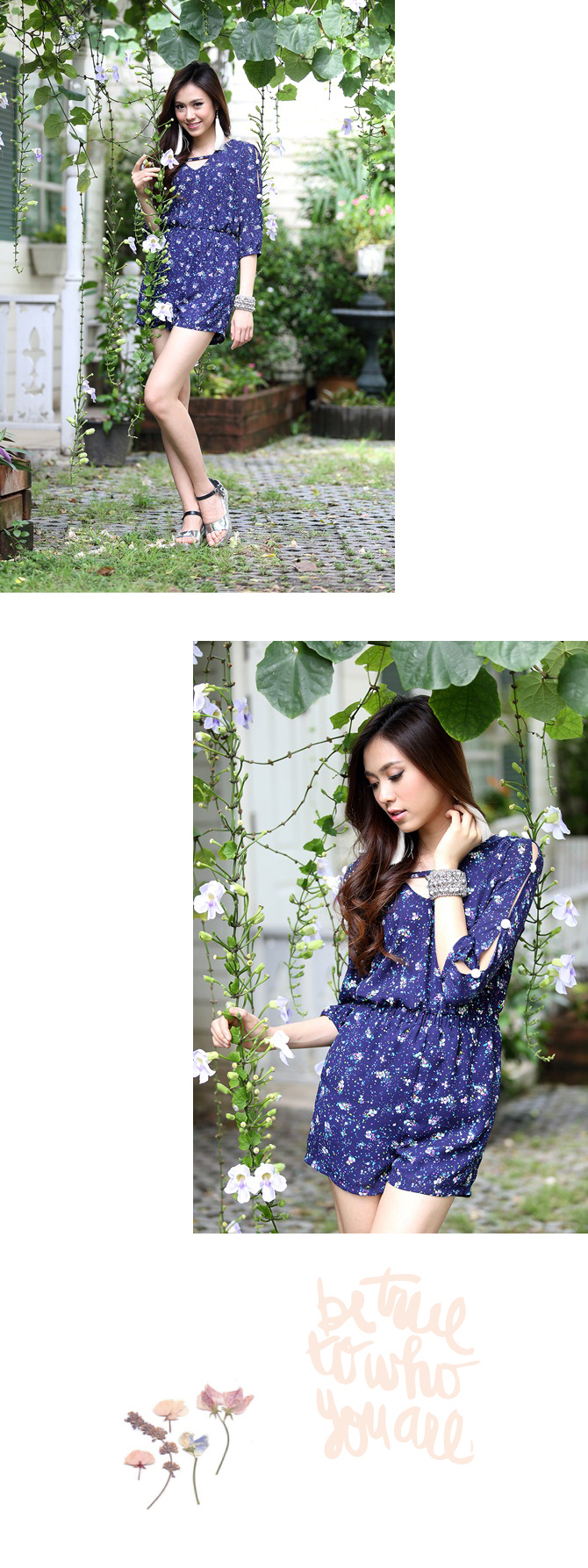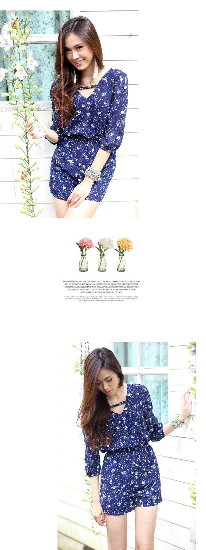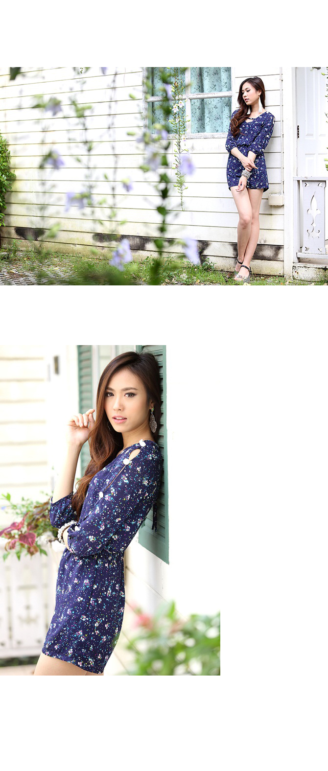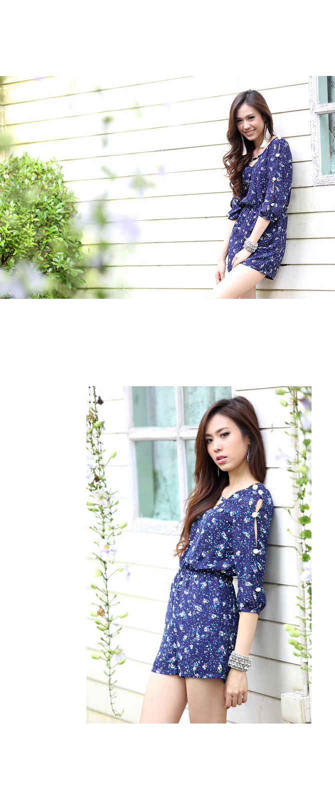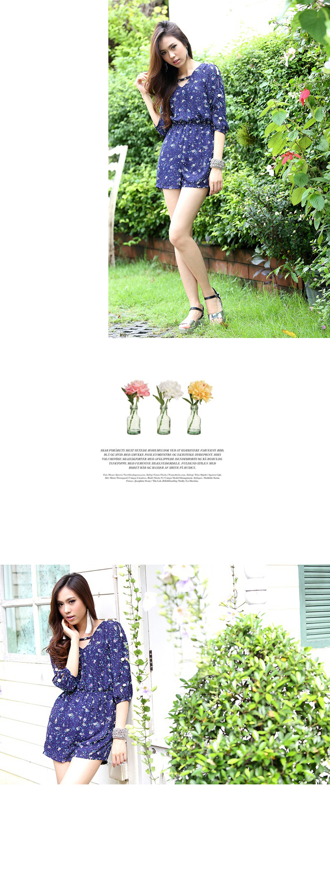 - Jumpsuit แขนสามส่วนรับลมหนาวจากใจ La Rami ค่า ตัวนี้ใช้ผ้าชีฟองลายสวยโทนสีน้ำเงิน เล่นดีเทลผูกเชือกด้านหลังเป็นโบว์น่าร๊ากกก ด้านหน้าทำเป็นคอวีเบาๆ เอวสม็อก ใส่แล้วดูเพรียว งานซิปมีซับในอย่างดีค่ะ