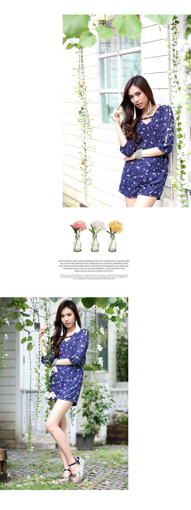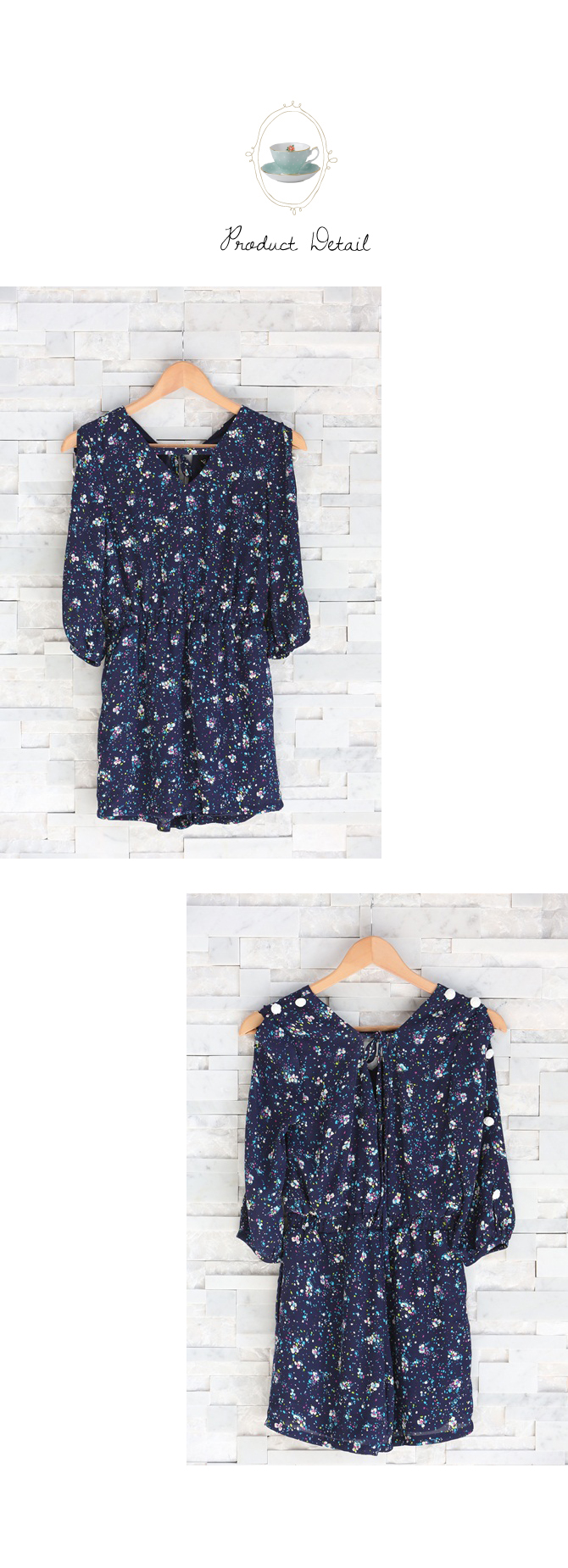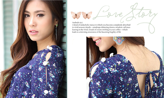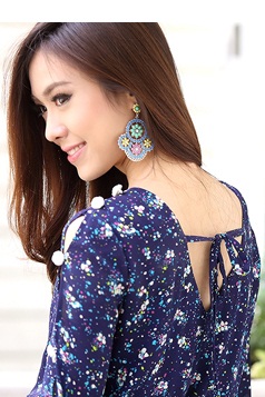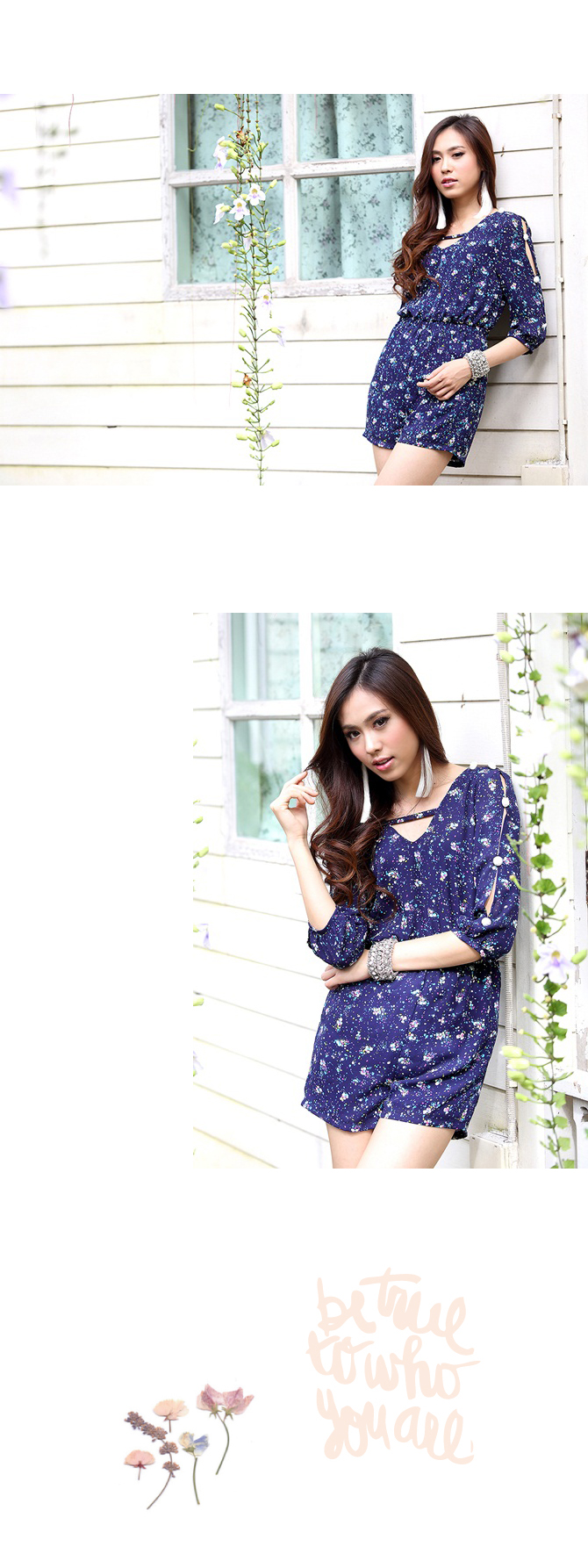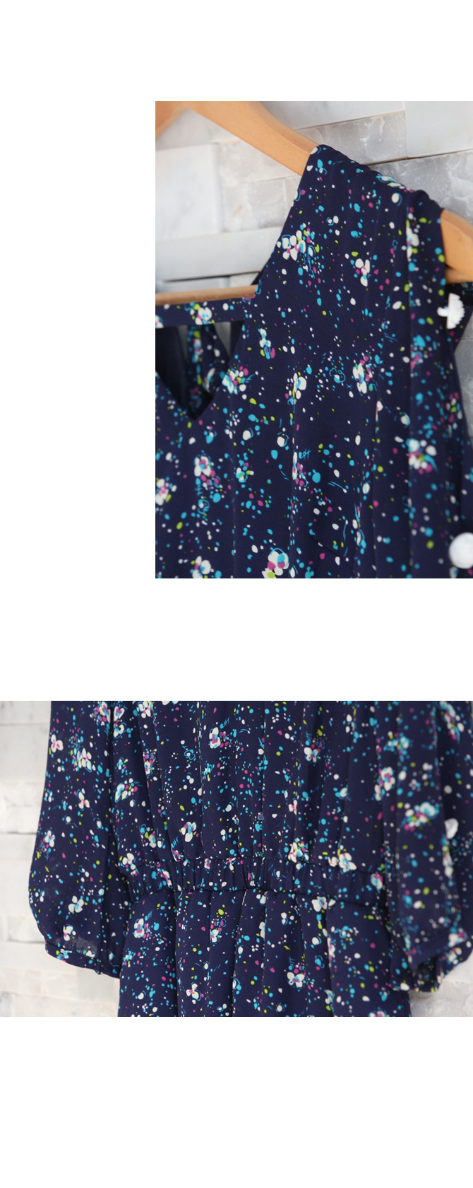 - Jumpsuit แขนสามส่วนรับลมหนาวจากใจ La Rami ค่า ตัวนี้ใช้ผ้าชีฟองลายสวยโทนสีน้ำเงิน เล่นดีเทลผูกเชือกด้านหลังเป็นโบว์น่าร๊ากกก ด้านหน้าทำเป็นคอวีเบาๆ เอวสม็อก ใส่แล้วดูเพรียว งานซิปมีซับในอย่างดีค่ะ
