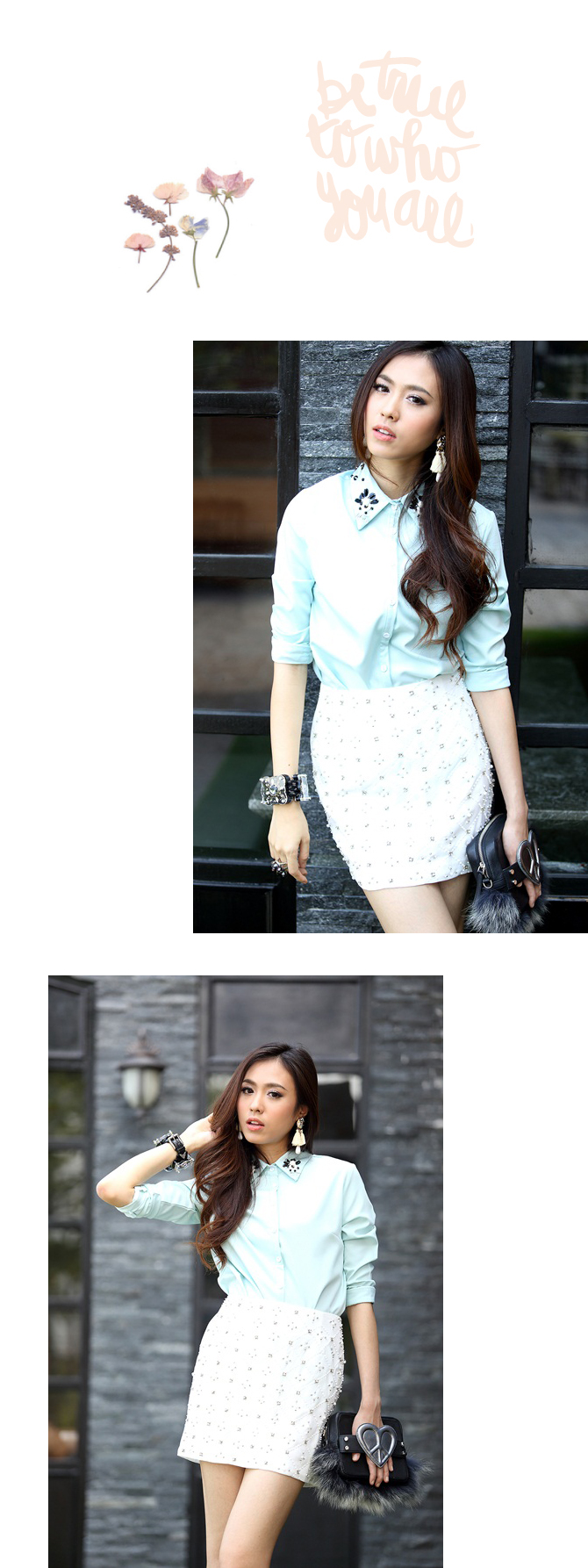 บอดี้คอนผ้าทอเนื้อดี๊ดี งาน Premium จากแดนเกาหลี ดีไซน์ปักลูกปัดและหมุดอย่างดีที่ตัวกระโปรงด้านหน้า งานซิป มาพร้อมซับใน แนะนำให้แมทช์กับเสื้อเชิ้ต หรือ เสื้อยืดเรียบๆ ได้ลุกส์สวยหรูค่ะ หมายเหตุ: น้องกุ๊กกิ๊กและฟาใส่ S ค่ะ