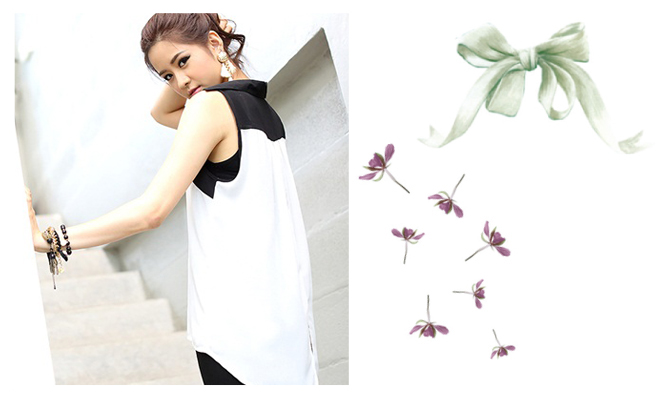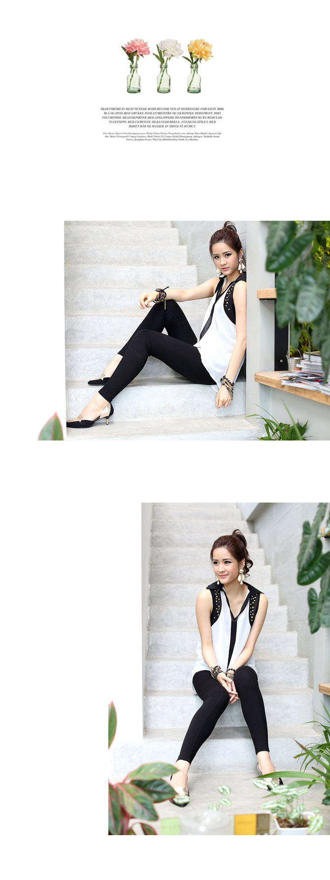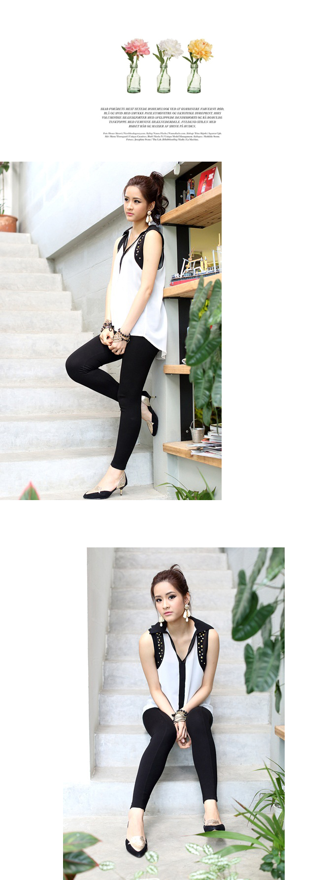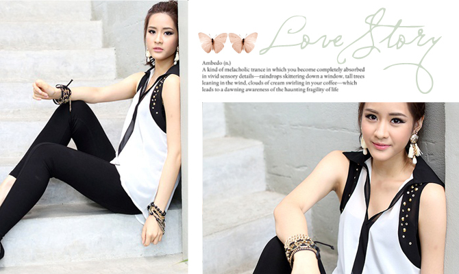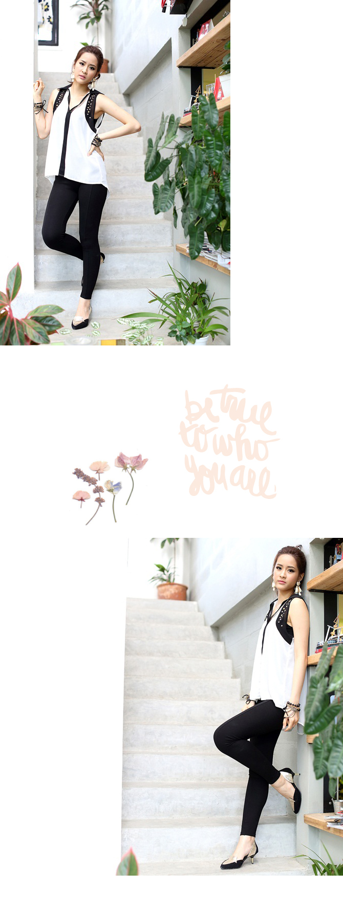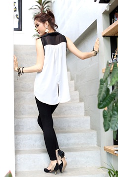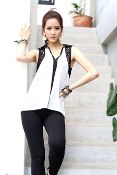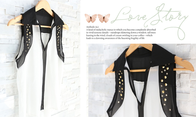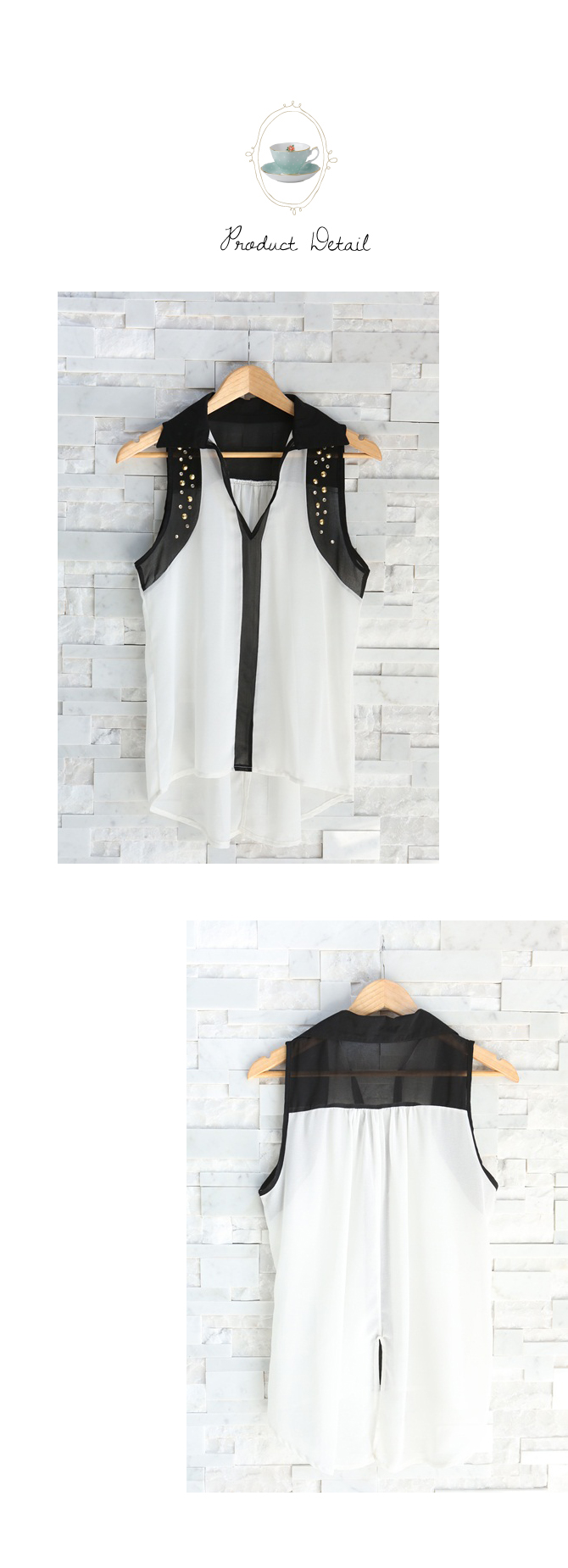 - เสื้อแขนกุด เนื้อผ้าชีฟองบางเบา ประดับหมุดวิ้งๆ รอบช่วงแขน งานเกาหลีใส่แล้วสวยเปรี้ยวสุดๆ ค่ะ