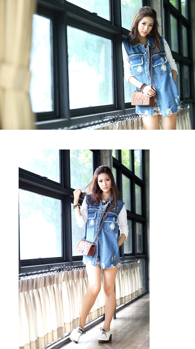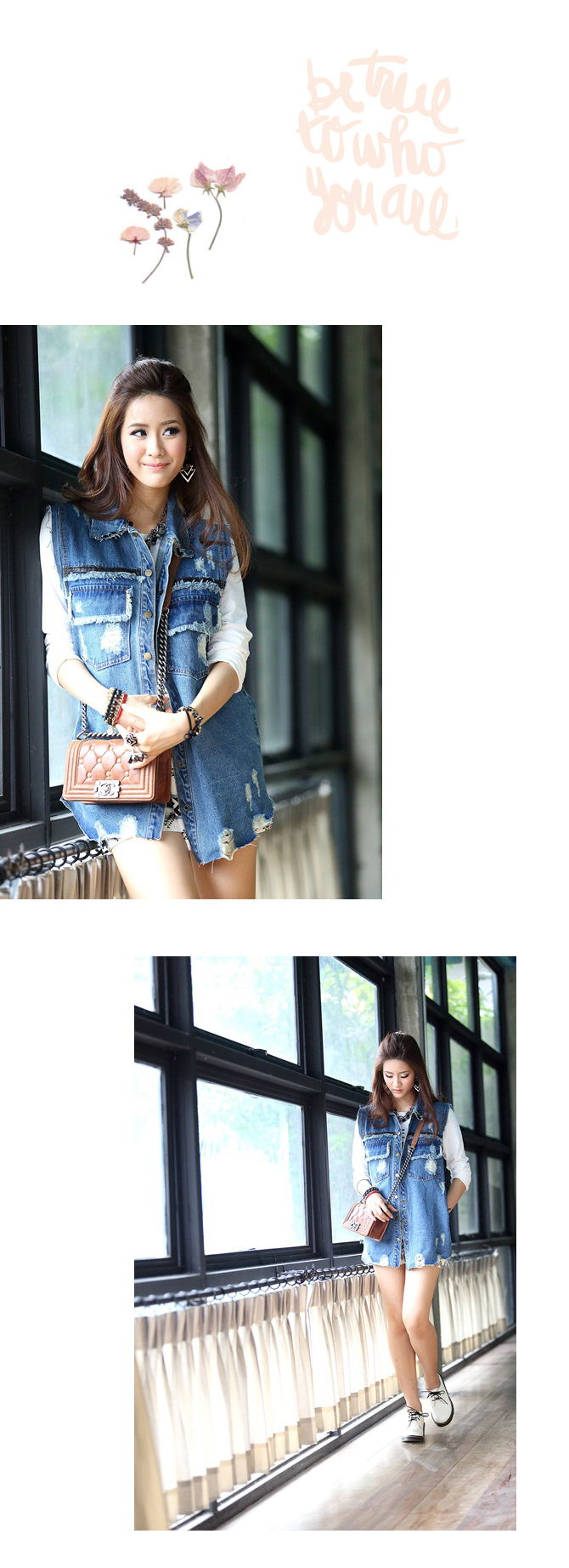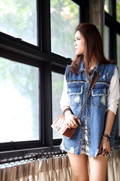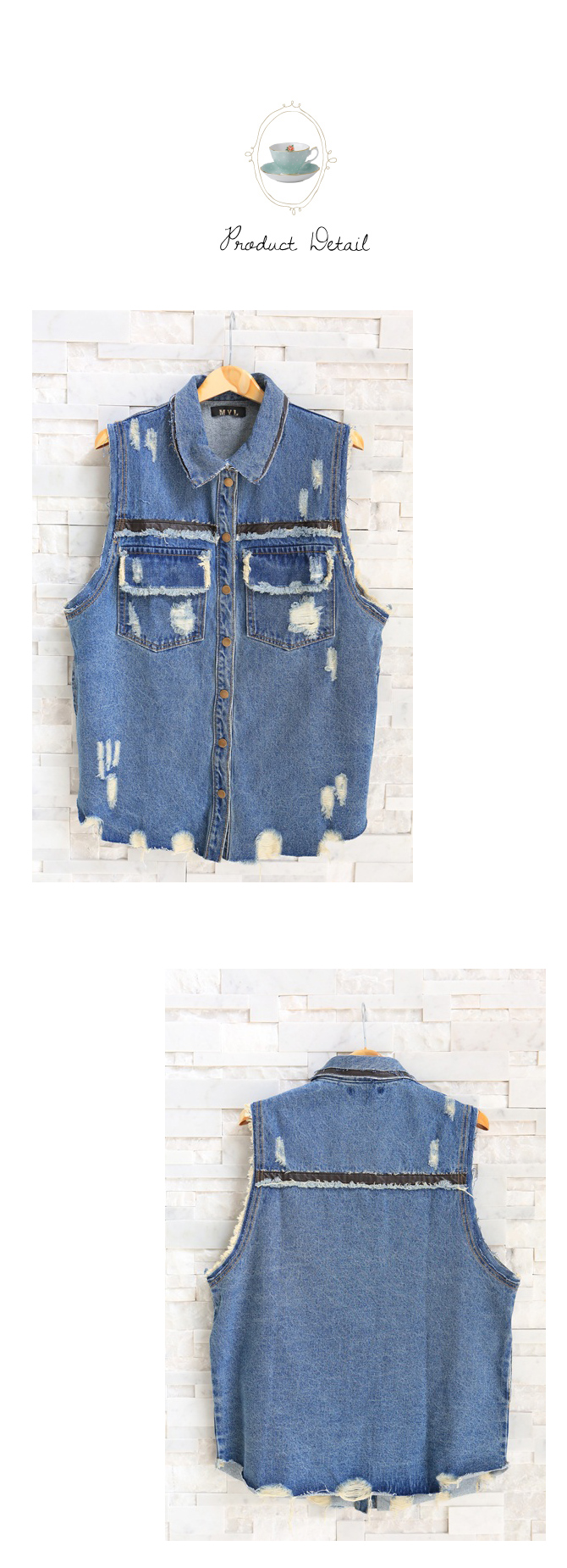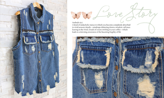 - เสื้อเชิ๊ตยีนส์แขนกุด สไตล์เท่ห์ได้ใจมาก ดีไซน์เซอร์ๆ ทำขาดๆ รุ่ยๆ พองาม สียีนส์เข้มฟอกสวยยย ใส่ได้หลากหลายแบบ จะใส่ยัดใน กับบอดี้คอน หรือ จะใส่คลุมเป็นแจ๊กเก็ตกันลมหนาวเบาๆ ก็เริ่ดค่ะ
