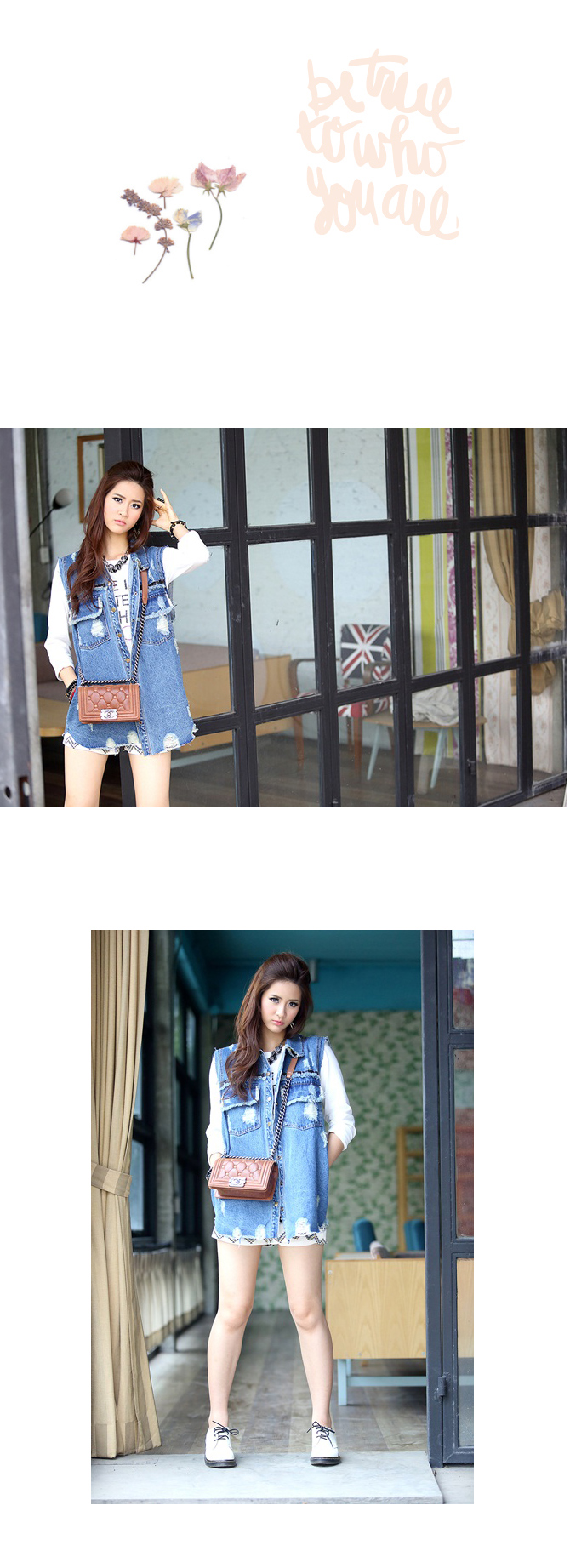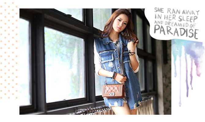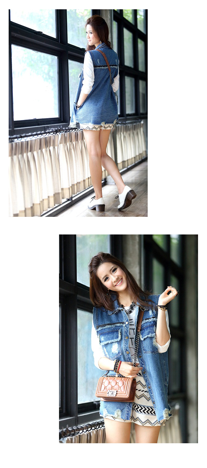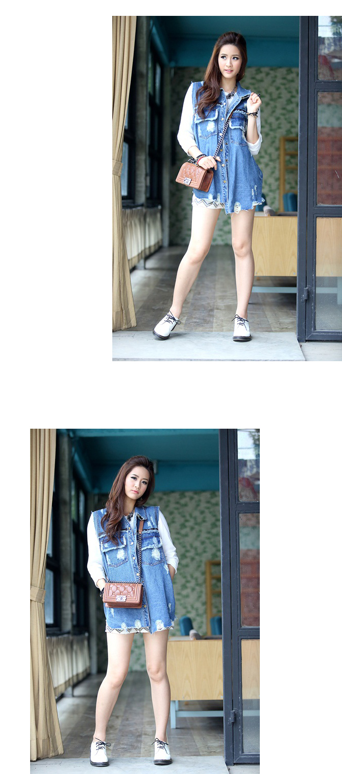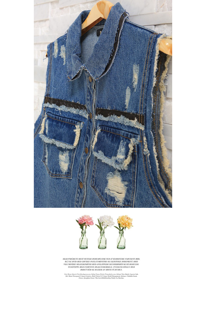 - เสื้อเชิ๊ตยีนส์แขนกุด สไตล์เท่ห์ได้ใจมาก ดีไซน์เซอร์ๆ ทำขาดๆ รุ่ยๆ พองาม สียีนส์เข้มฟอกสวยยย ใส่ได้หลากหลายแบบ จะใส่ยัดใน กับบอดี้คอน หรือ จะใส่คลุมเป็นแจ๊กเก็ตกันลมหนาวเบาๆ ก็เริ่ดค่ะ