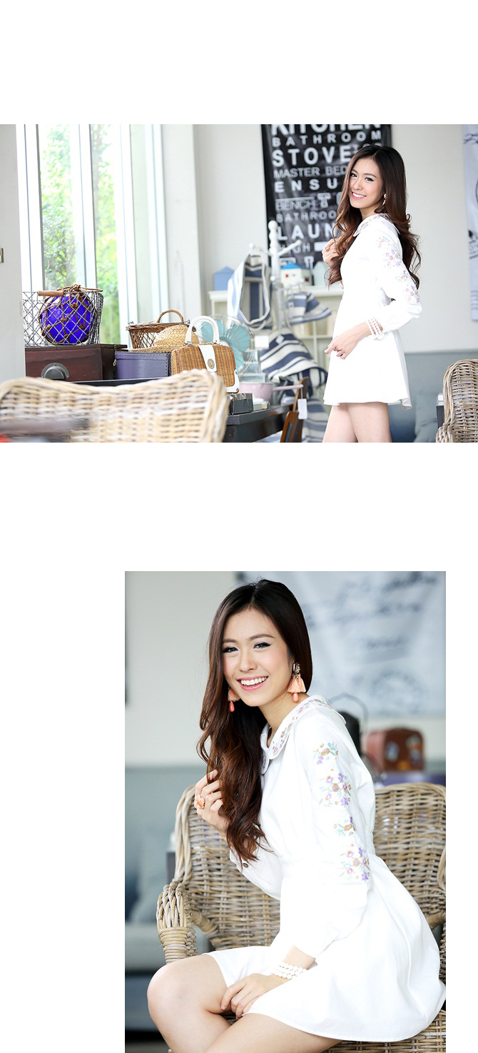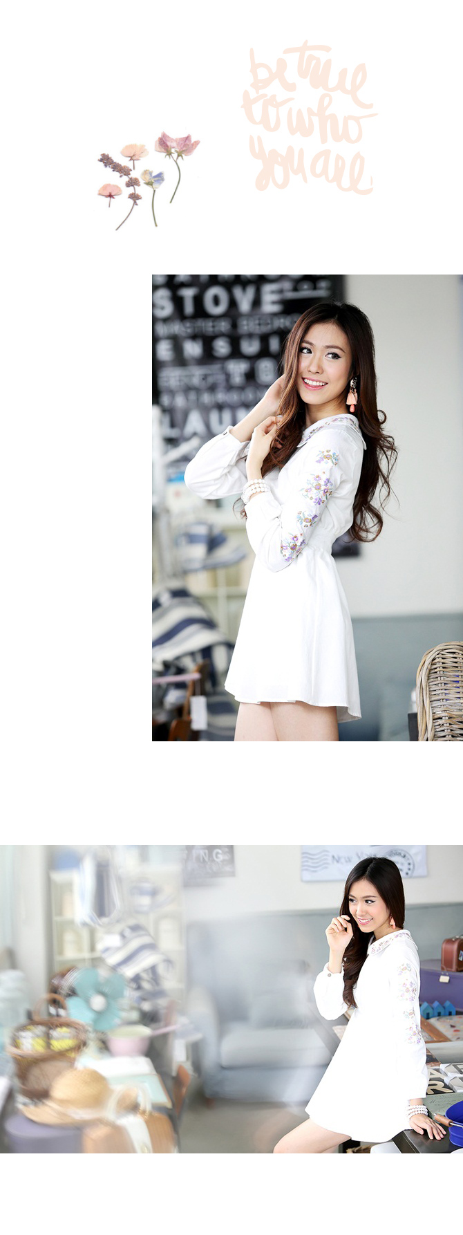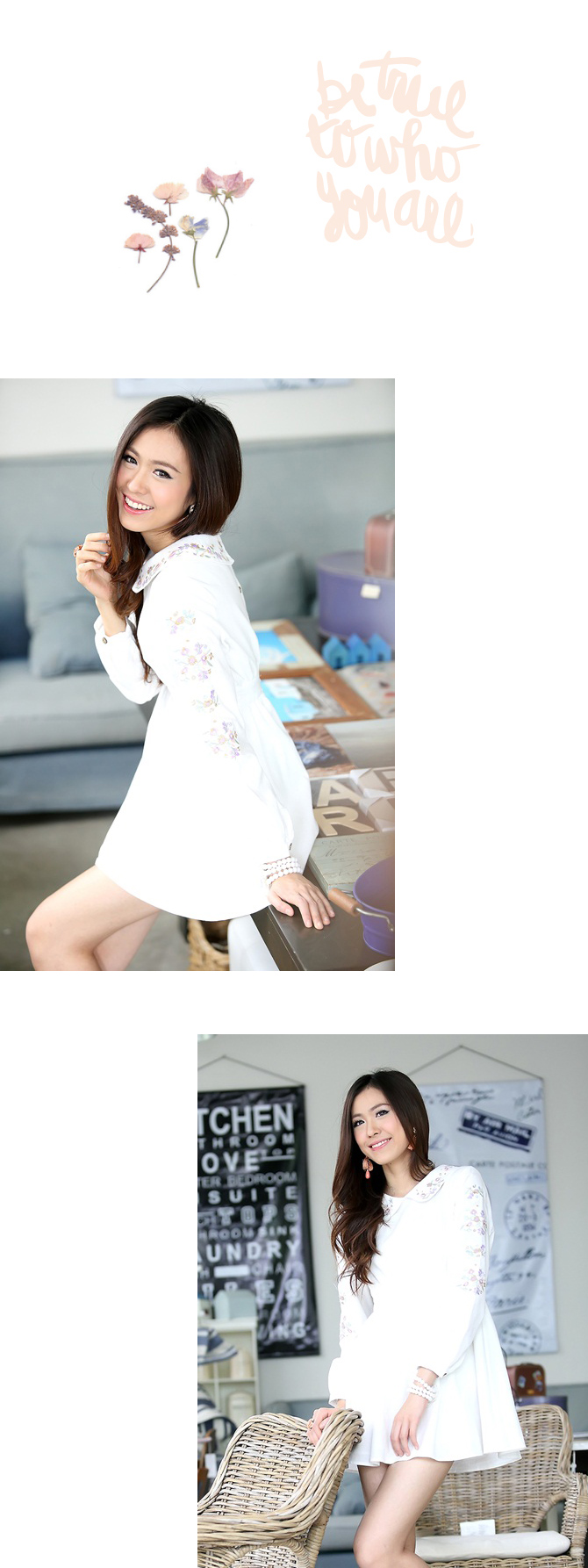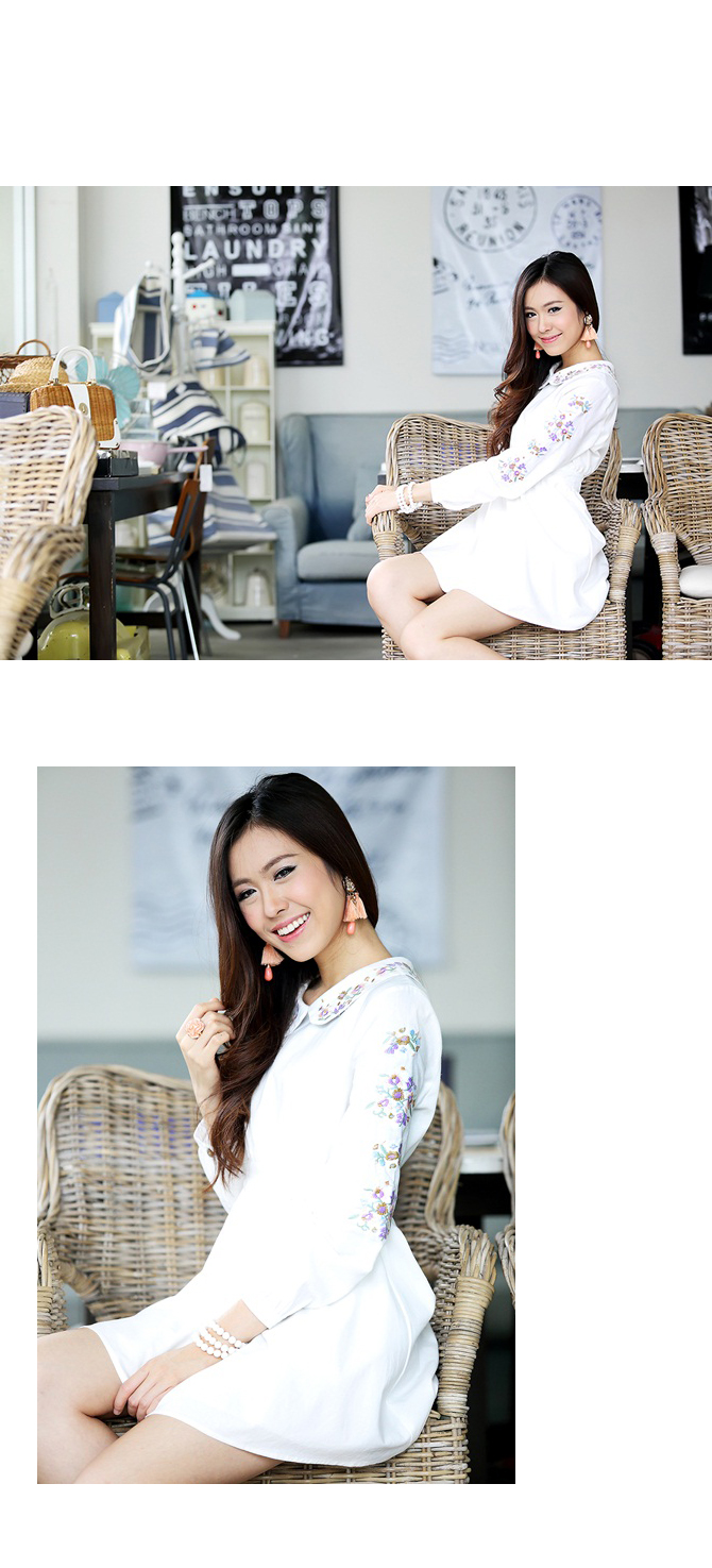 เดรสงานเกาหลีใช้ผ้าคอตตอนผสมเกรดดี เนื้อหนานุ่มมากปักลายดอกไม้ที่ปกและช่วงแขนน่ารักกุ๊กกิ๊กงานซิปเริ่ดๆทรงเข้ารูปน่ารักมากๆ ค่า หมายเหตุ: น้องกุ๊กกิ๊กและฟาใส่ S ค่ะ