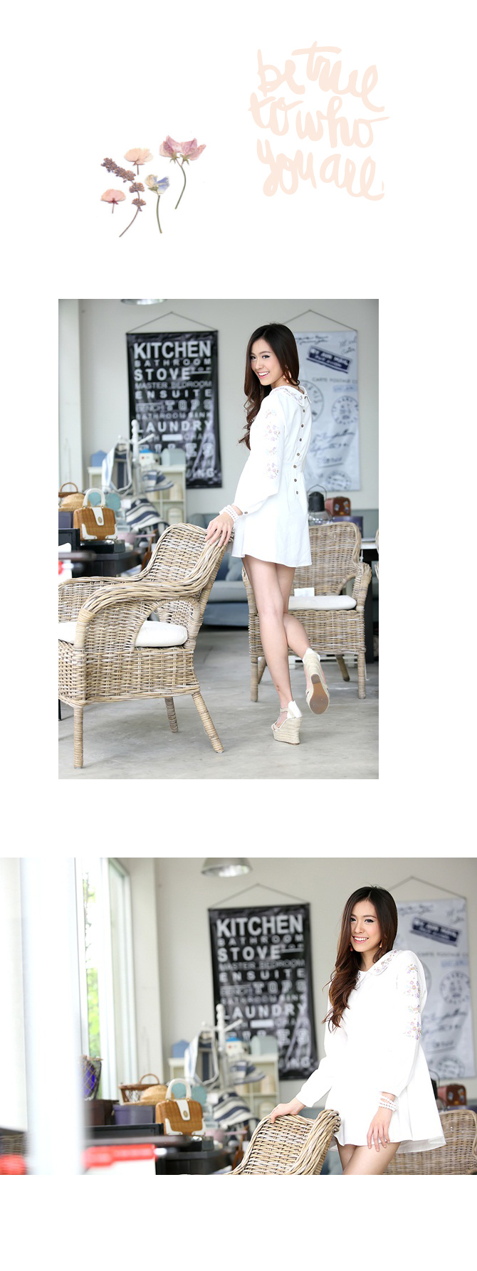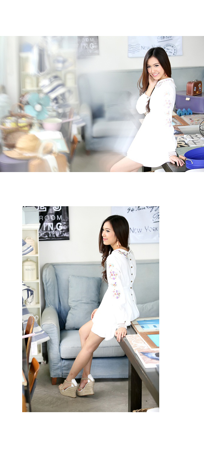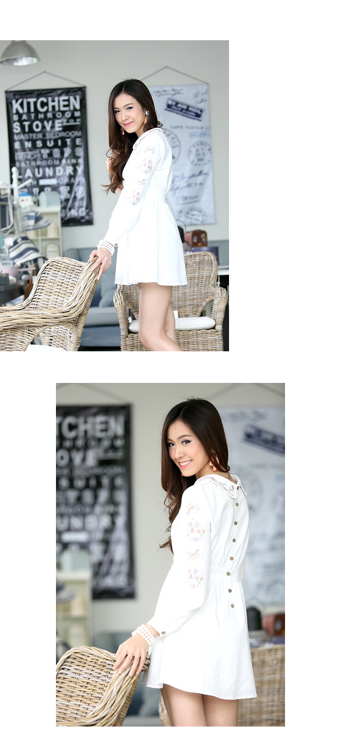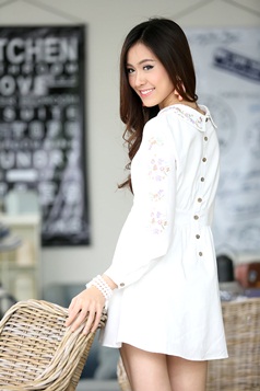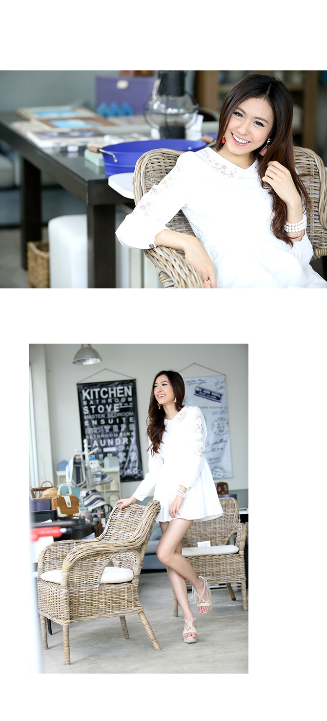เดรสงานเกาหลีใช้ผ้าคอตตอนผสมเกรดดี เนื้อหนานุ่มมากปักลายดอกไม้ที่ปกและช่วงแขนน่ารักกุ๊กกิ๊กงานซิปเริ่ดๆทรงเข้ารูปน่ารักมากๆ ค่า หมายเหตุ: น้องกุ๊กกิ๊กและฟาใส่ S ค่ะ