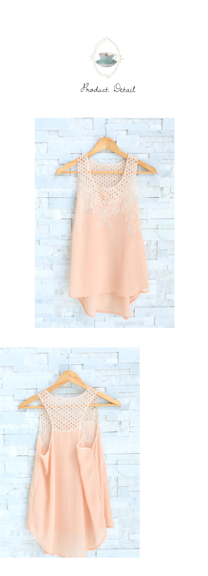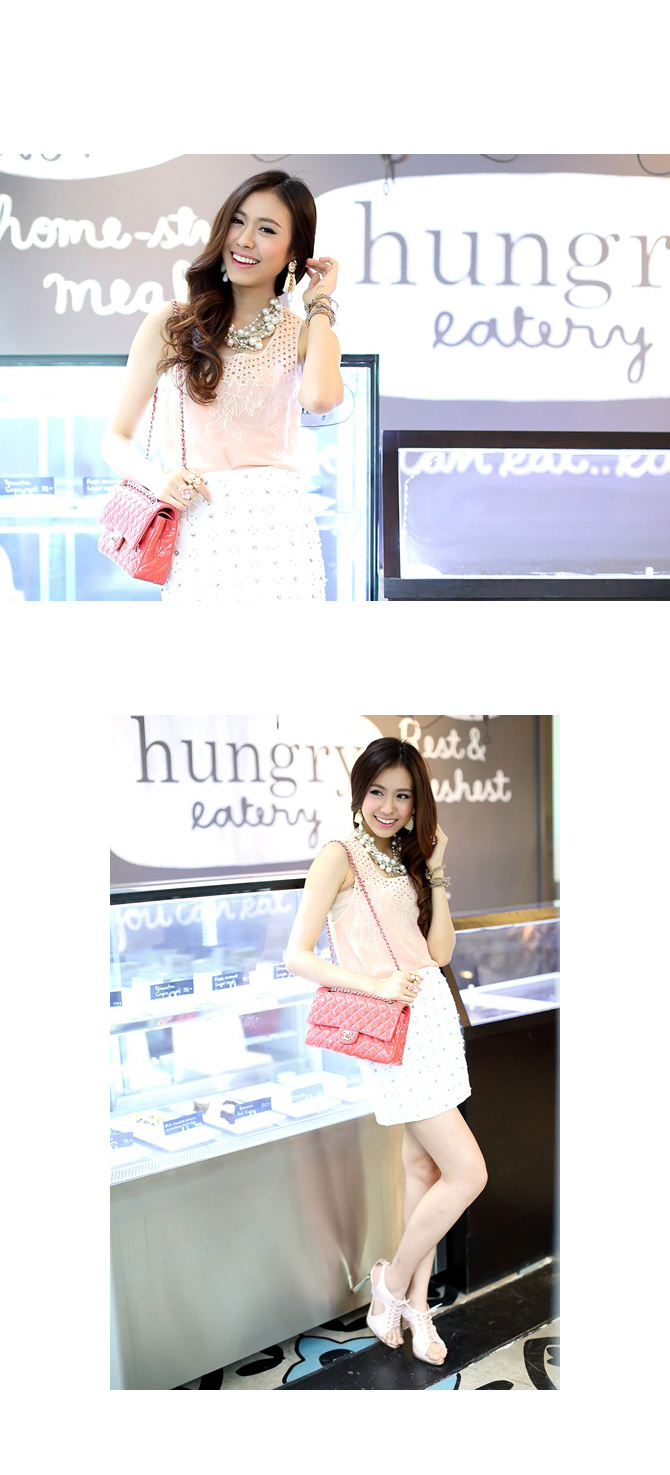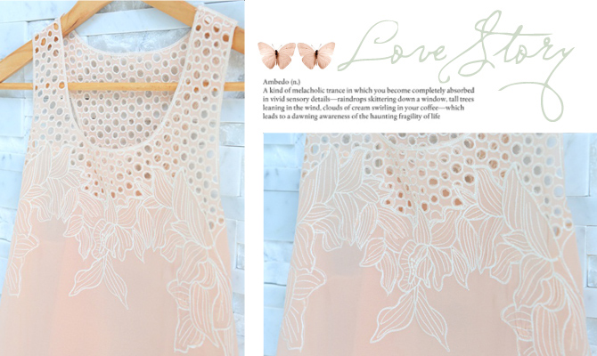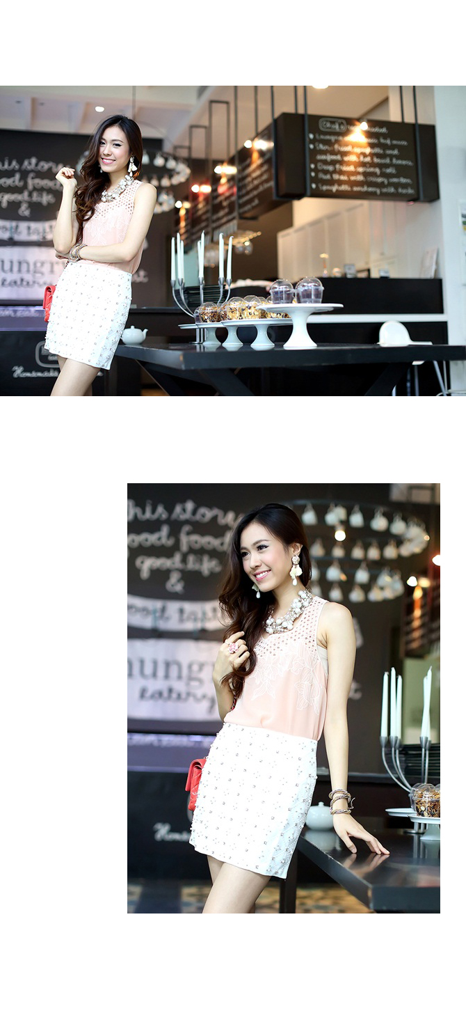 - เสื้อผ้าชีฟองผสมเนื้อบางเบา ทรงเสื้อกล้ามตัวยาวใส่ง่ายๆ ตัวนี้นอกจากสีจะน่ารักแล้ว ดีเทลยังสวยด้วยลูกไม้ฉลุช่วงอกด้วยค่า ลุกส์น่าร๊ากกกก แนะนำหาเกาะอกมาใส่แมทช์เพิ่มซักตัว เปรี้ยวสุดๆ ค่ะ