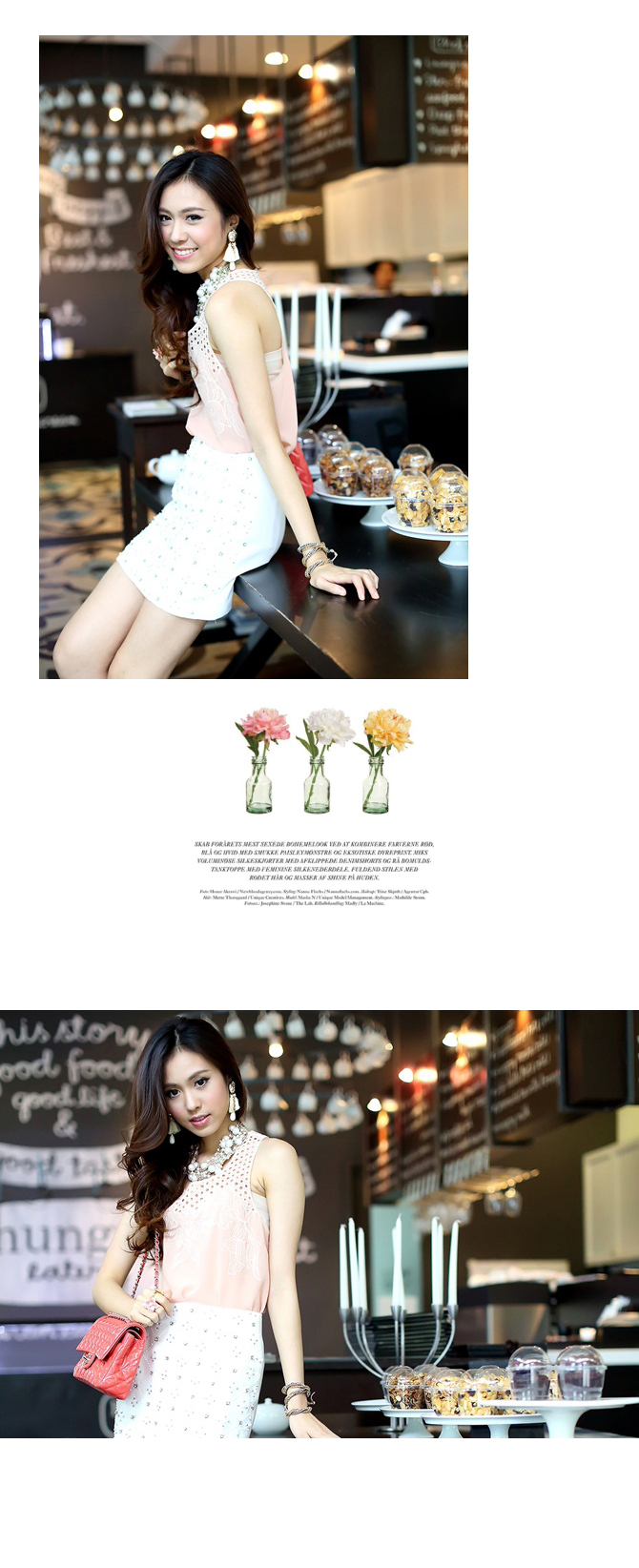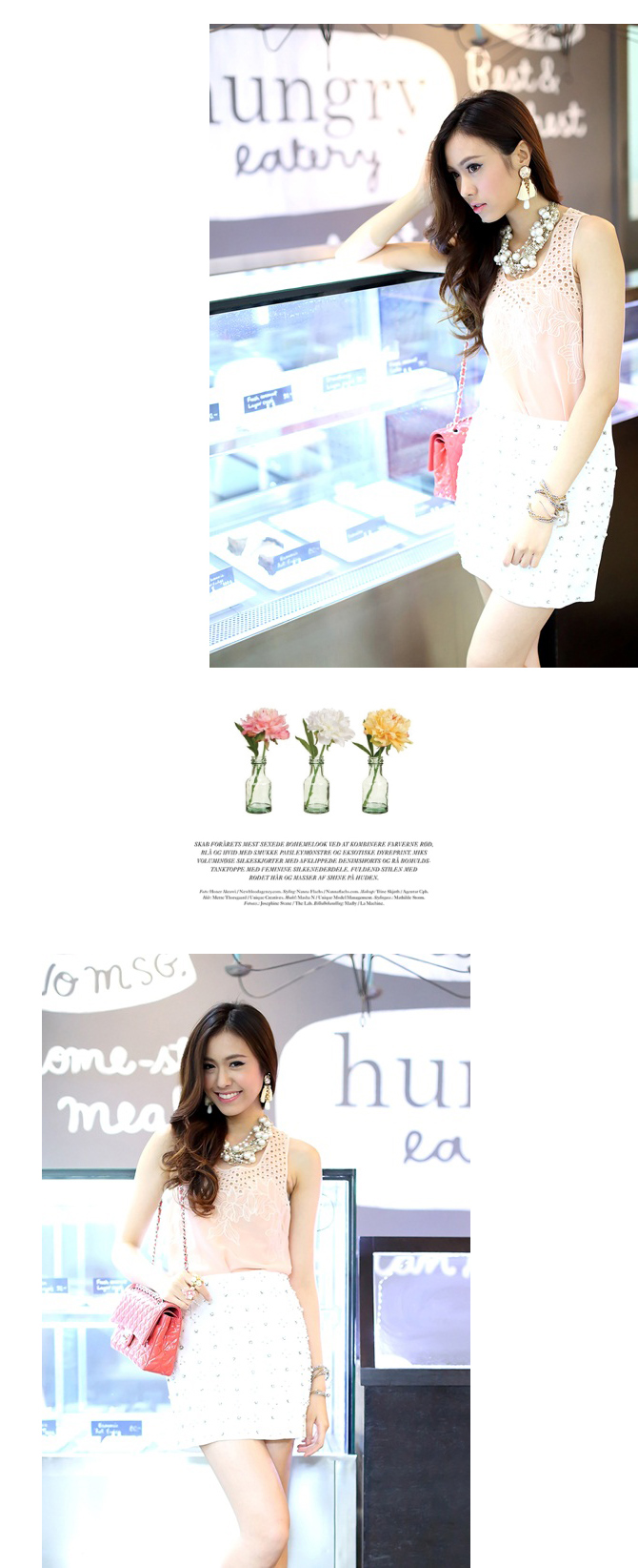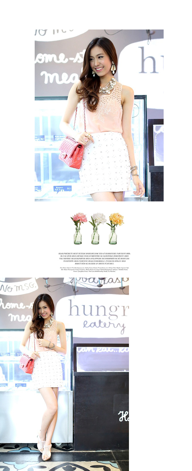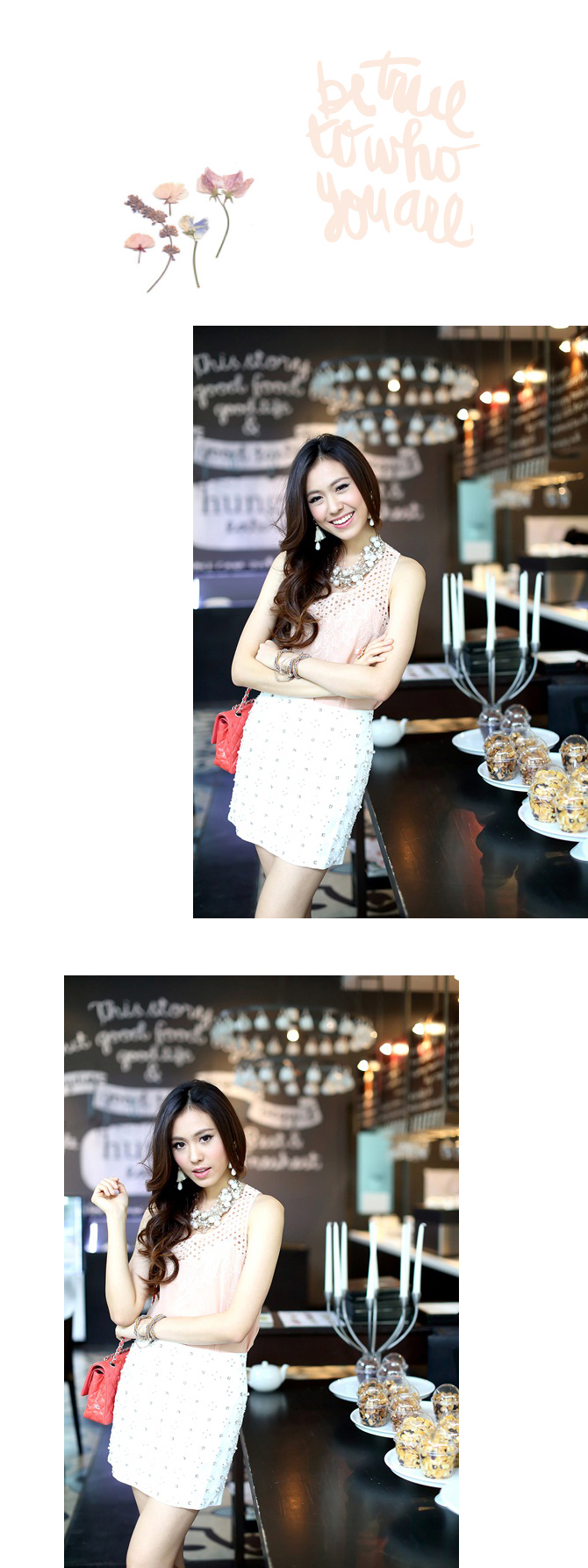 - เสื้อผ้าชีฟองผสมเนื้อบางเบา ทรงเสื้อกล้ามตัวยาวใส่ง่ายๆ ตัวนี้นอกจากสีจะน่ารักแล้ว ดีเทลยังสวยด้วยลูกไม้ฉลุช่วงอกด้วยค่า ลุกส์น่าร๊ากกกก แนะนำหาเกาะอกมาใส่แมทช์เพิ่มซักตัว เปรี้ยวสุดๆ ค่ะ