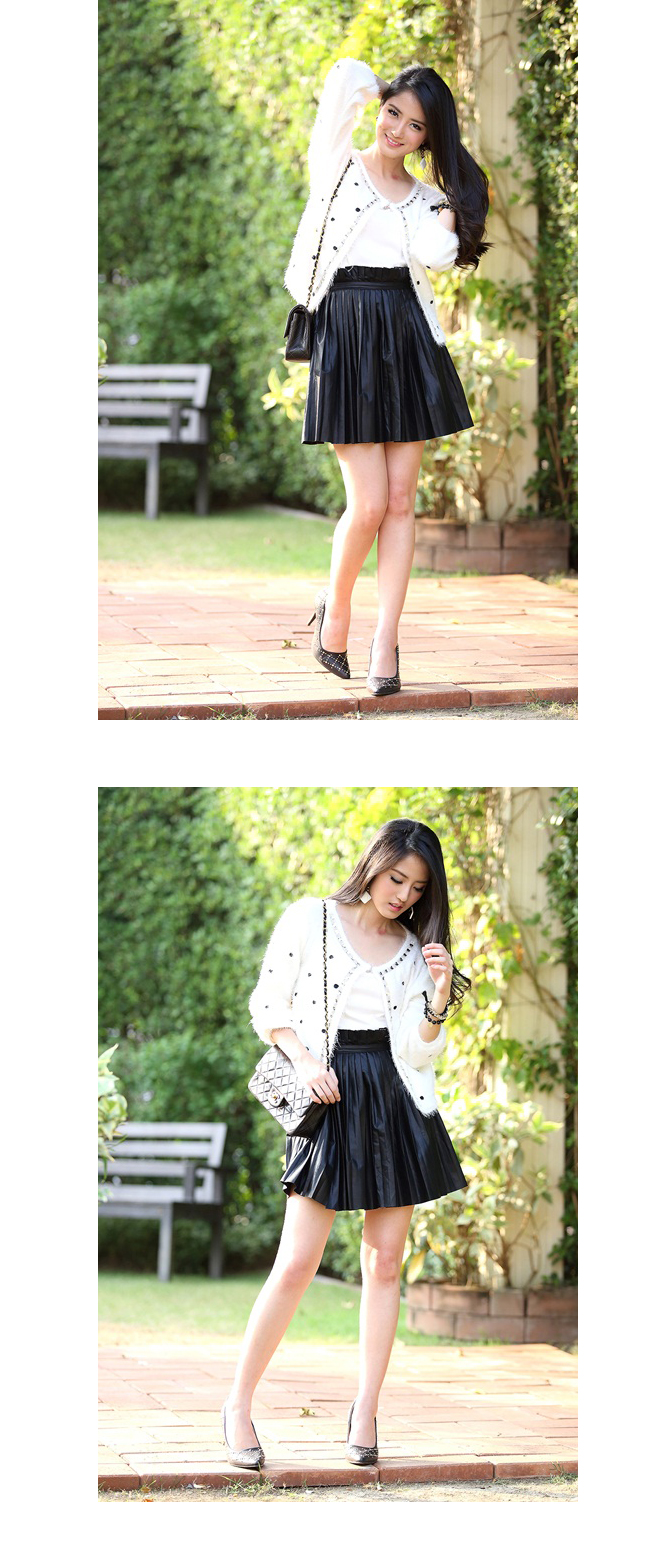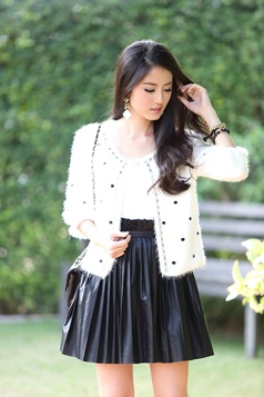 - กระโปรงหนังเทียม เทรนด์ล่ามาแรงสุดในปี 2014 ตัวนี้ดีไซน์เป็นจีบรอบตัว ทรงบานกำลังงาม ใส่แล้วดูหุ่นดี ขาเรียวมากค่า สีเรียบคลาสสิค แมทช์ได้หลายแนวมากๆ จะเสื้อยืด เสื้อเชิ๊ต ก็สวย สาวเปรี้ยว สาวเท่ห์ห้ามพลาดเด็ดขาดเลยค่า