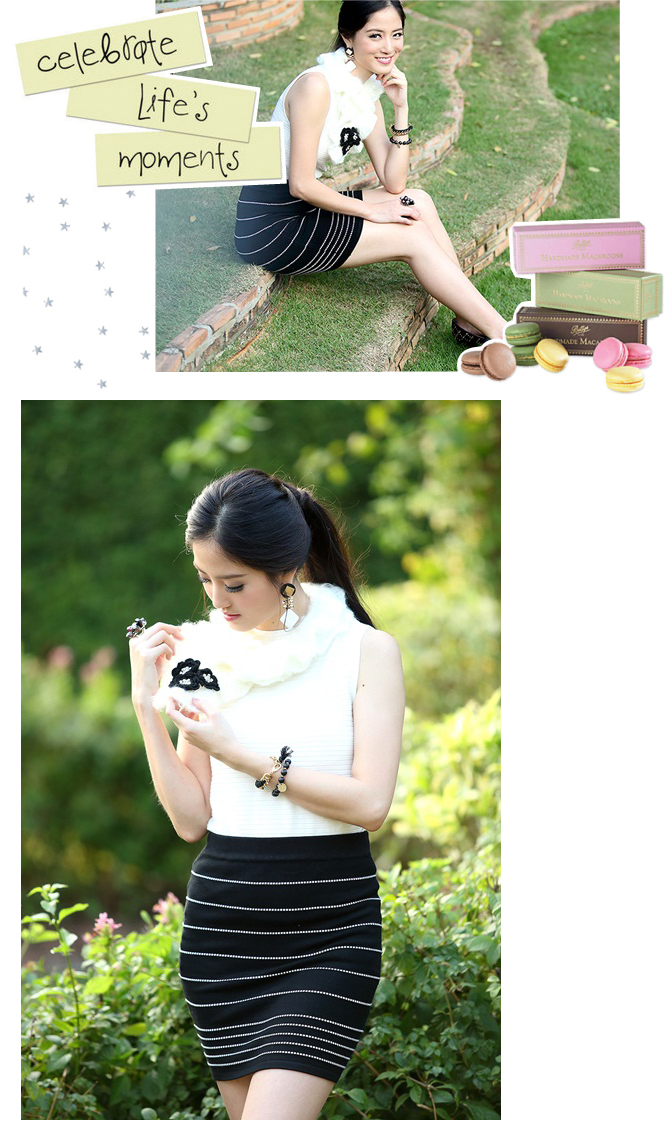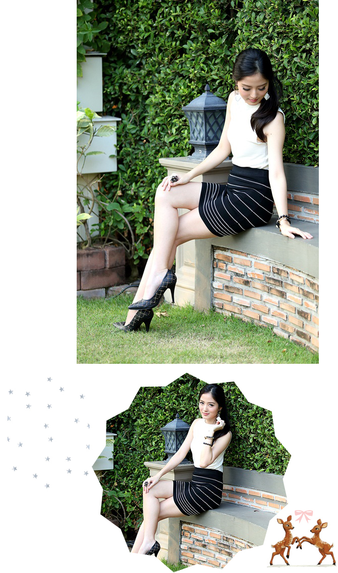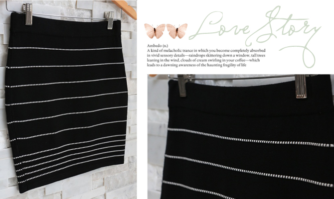 กระโปรง Bodycon ยอดฮิต สีดำตัดต่อลายเส้นสีขาวดูคลาสสิค ผ้าเนื้อดี ยืดได้พอสมควรเลยค่า ตัวนี้เก็บทรงกระชับมากๆ ใส่แล้วดูหุ่นดีสุดๆ หยิบไปแมทช์กับเสื้อเรียบๆ ได้หลายแนวเลยนะคะ คุ้มมากๆ ค่ะ