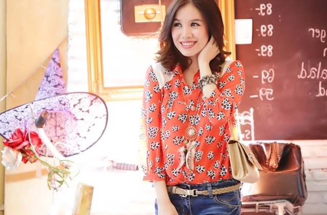 Detail: เสื้อเชิ๊ตเกร๋ๆๆแขน 3 ส่วนจาก La Ramiจร้า ลายผ้าสีแจ่มมากกกหัวใจลายเสือน้อย ตัดต่อแบบเริ่ดคร่า
