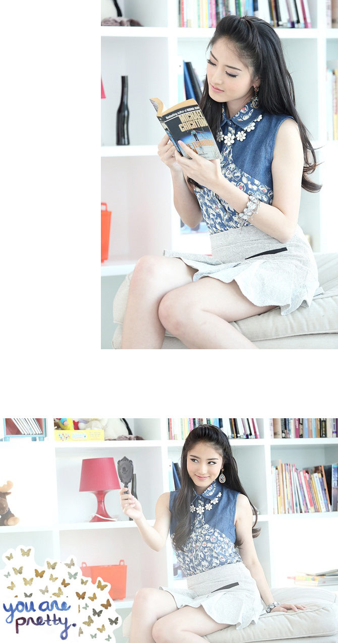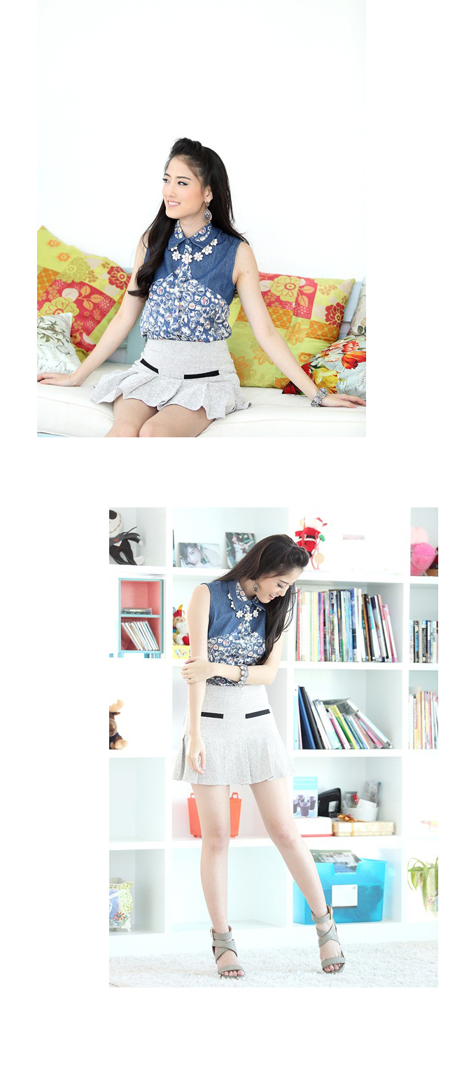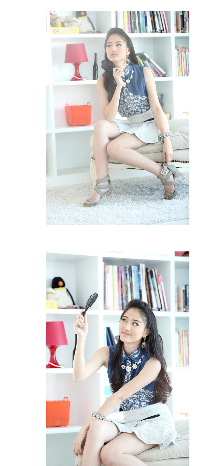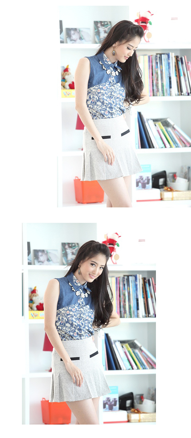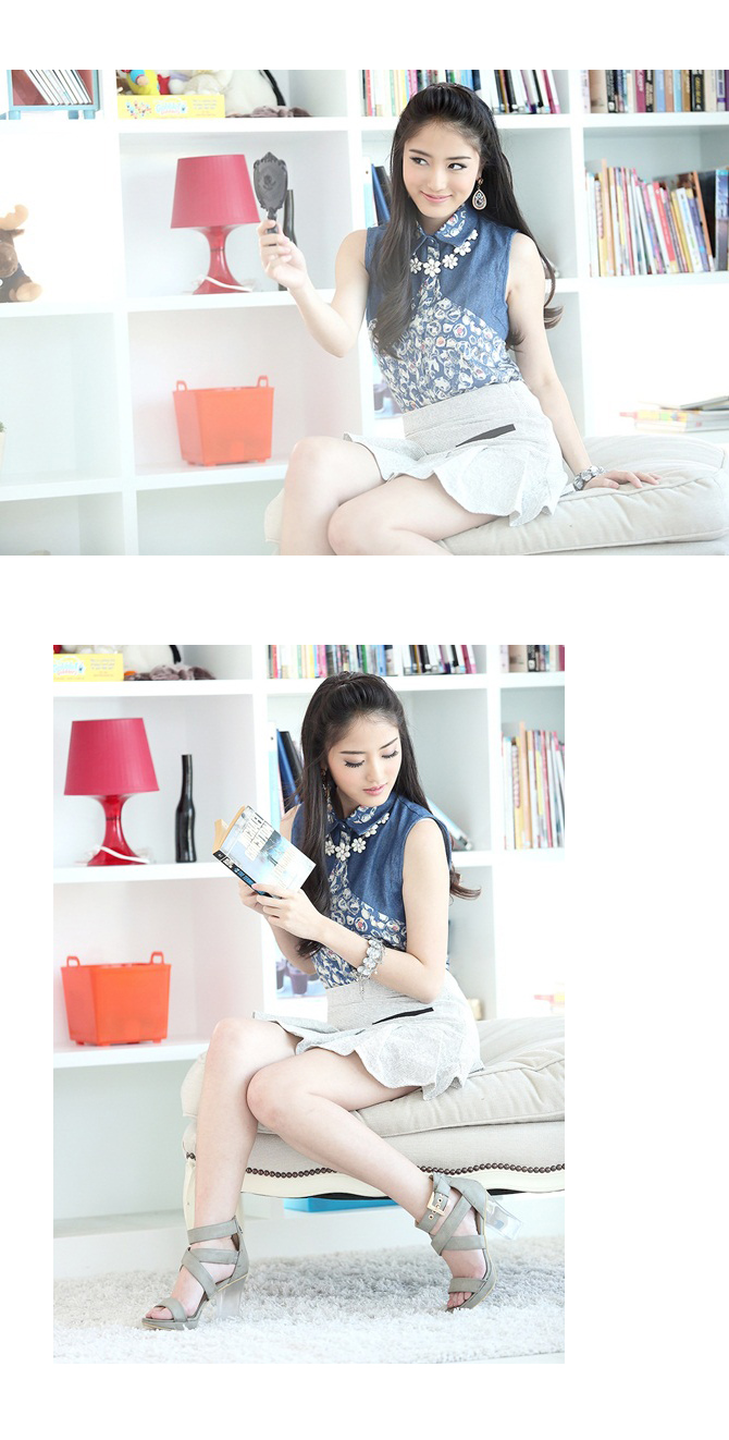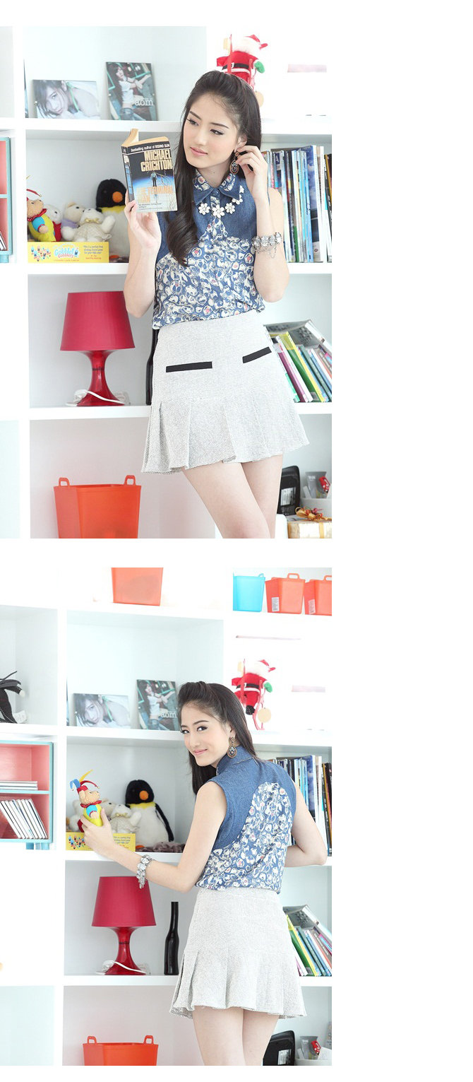 - เสื้อเชิ้ตแขนกุด ตัวนี้เน้นที่ดีเทลผ้าลายสวยนำมาตัดต่อกับผ้ายีนส์เป็นทรงใส่สบายๆ และแมทช์ง่ายมากๆ ค่ะ สาวๆ จะใส่คู่กับกระโปรง หรือ กางเกงก็น่ารักมากๆ La Rami คอนเฟิมว่าตัวนี้คุ้มมาก ใส่ได้บ่อย ไม่มีเอ้าท์ค่า