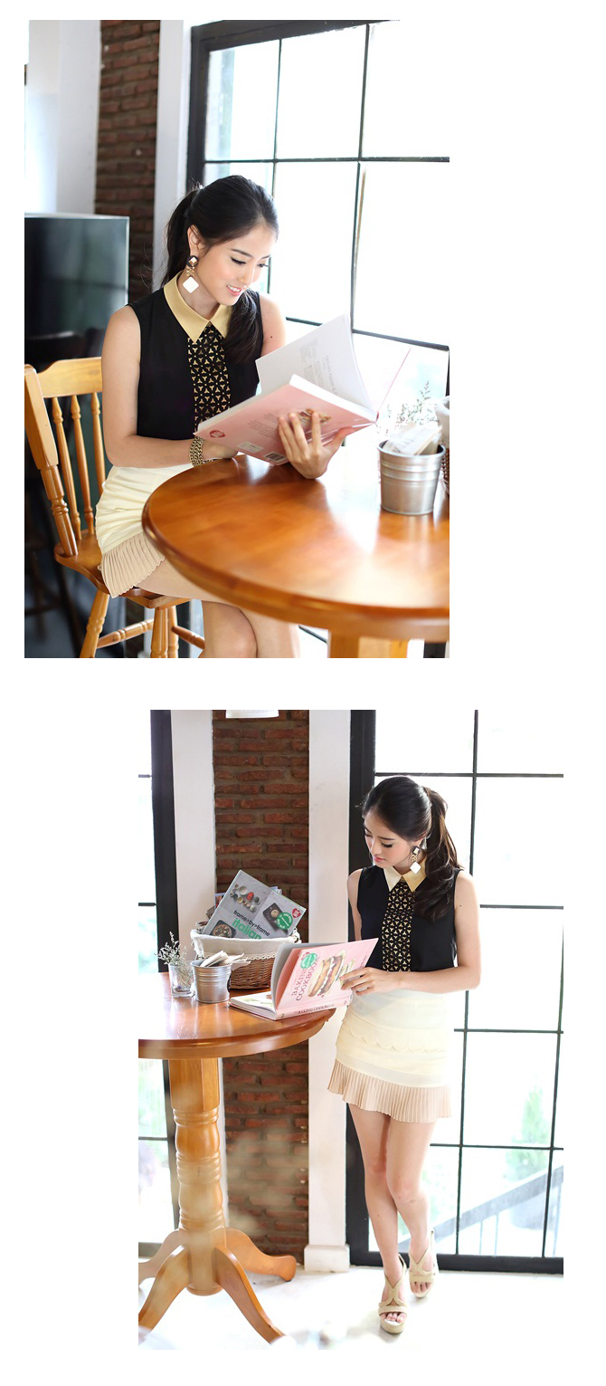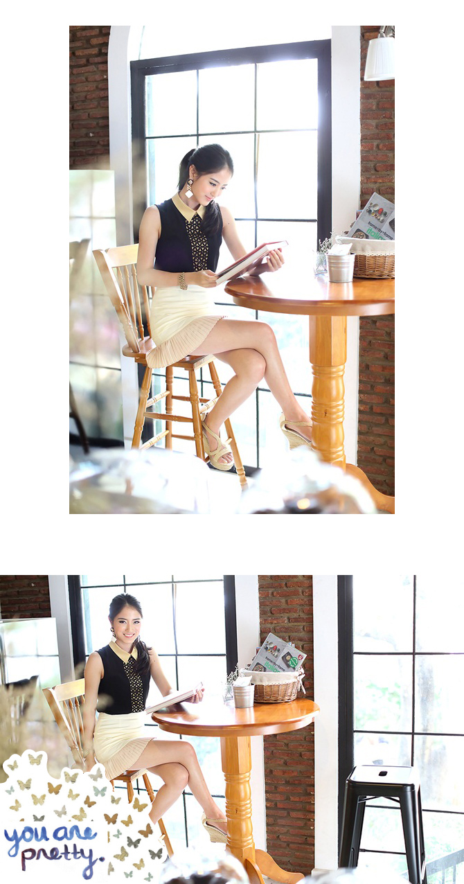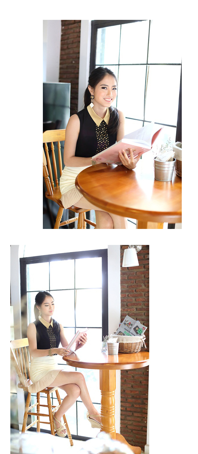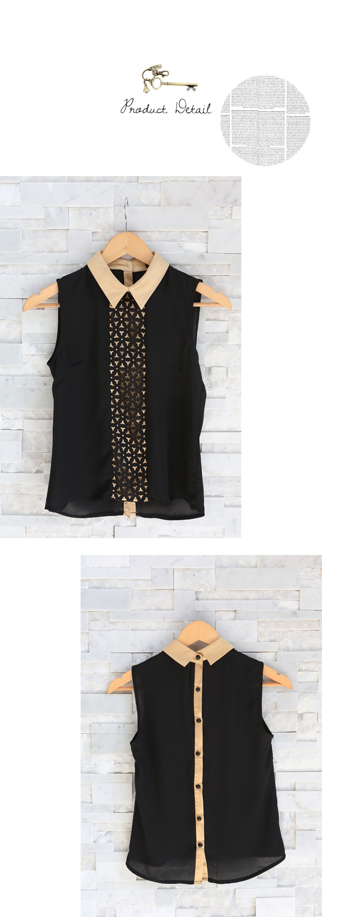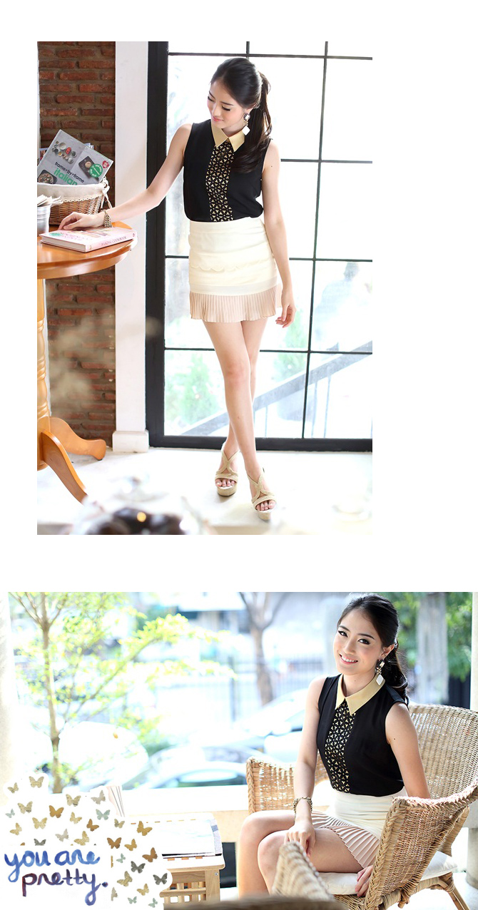 เสื้อเชิ้ตแขนกุด แบบเรียบๆ แต่ดูดีอีกตัวที่ La Rami อยากนำเสนอให้สาวๆ ค่ะ ตัวนี้ใช้ผ้าสีทองมาตัดต่อเป็นปก และทำลายเก๋ๆ ที่ช่วงหน้าให้ดูไม่เหมือนใคร แมทช์กับกางเกงยีนส์ก็เท่ห์ หรือ จะแมทช์กับกระโปรงก็ได้ลุกส์หวานซ่อนเปรี้ยวค่า หมายเหตุ: น้องแพรและฟาใส่ SS ค่ะ