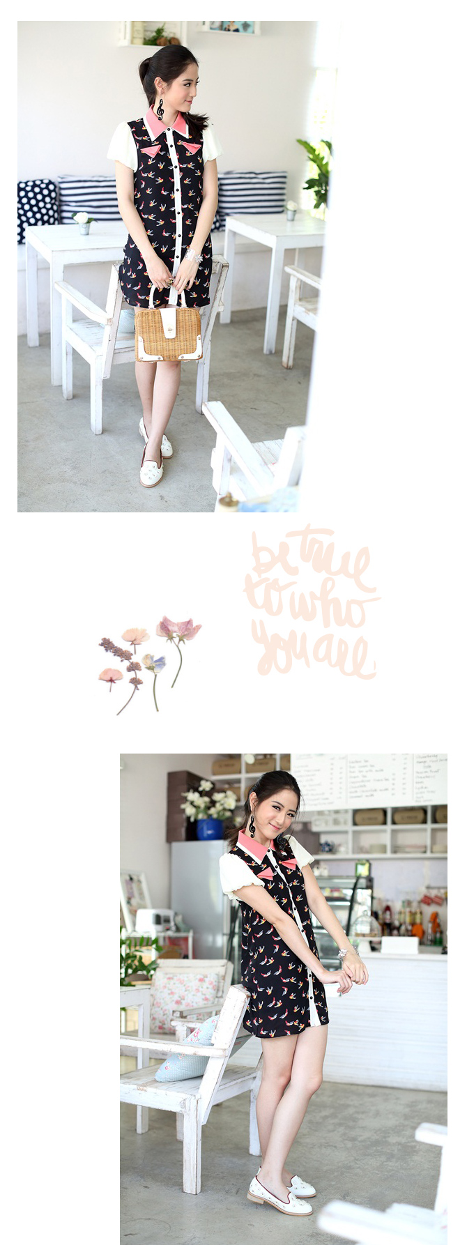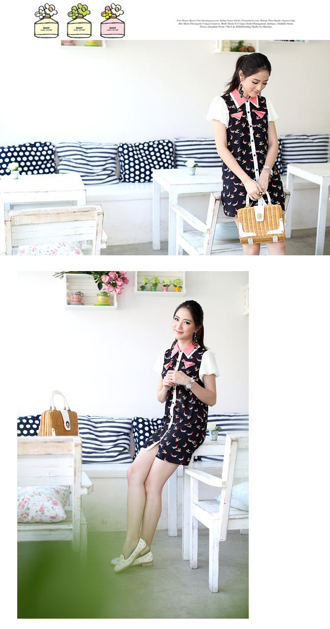 - เดรสแบบเรียบ แต่แอบเท่ห์ ดีไซน์ปกเชิ๊ตสลับสี แขนตุ๊กตาน่ารักๆ ตัวนี้เน้นที่ลายผ้าและสีสดใส ใส่ได้บ่อย ทั้งทำงาน ทั้งไปเที่ยว ชุดเดียวเอาอยู่ งานดี มีซับจาก La Rami ค่า