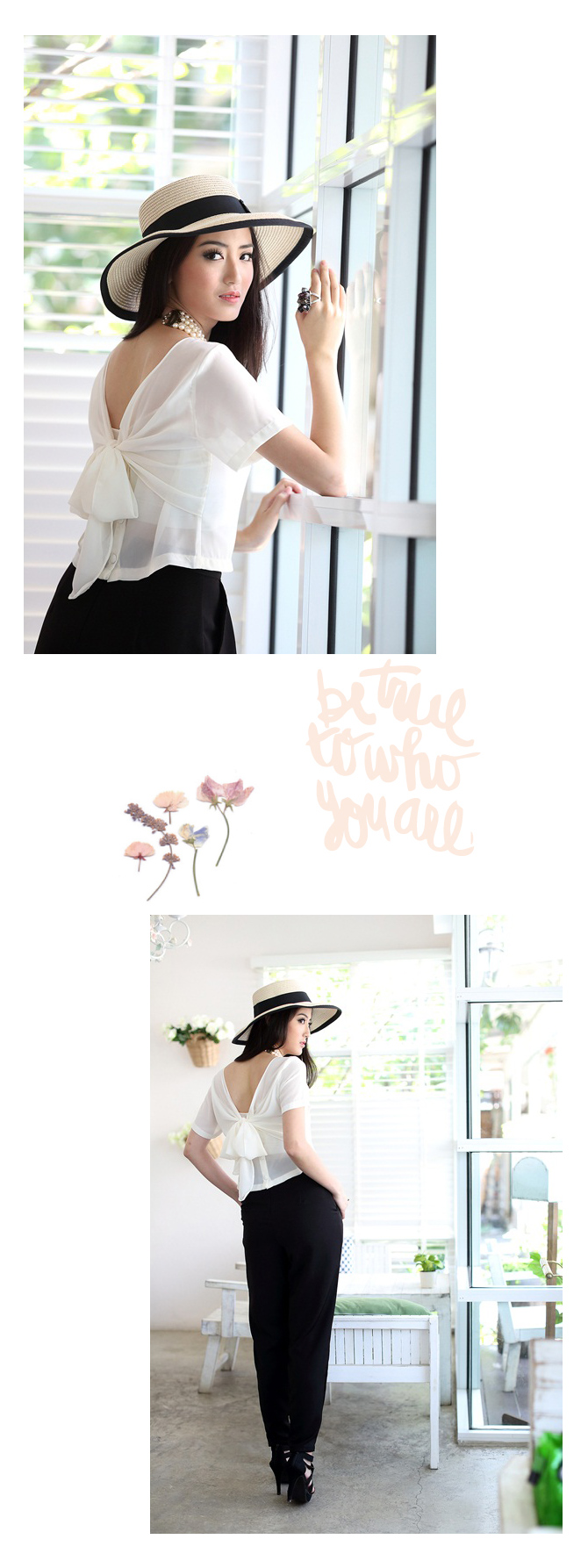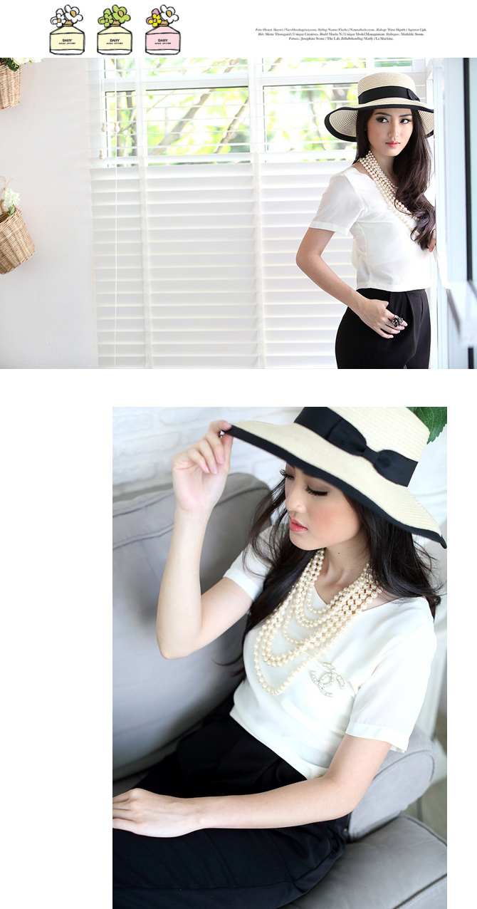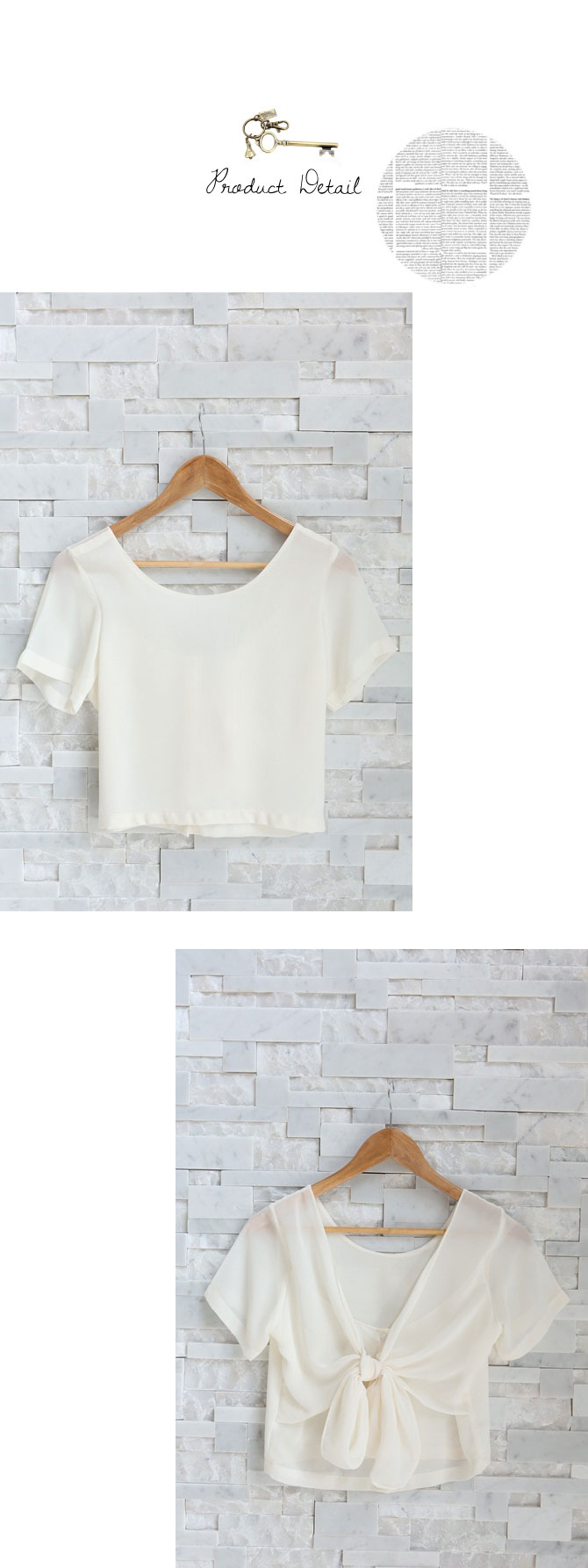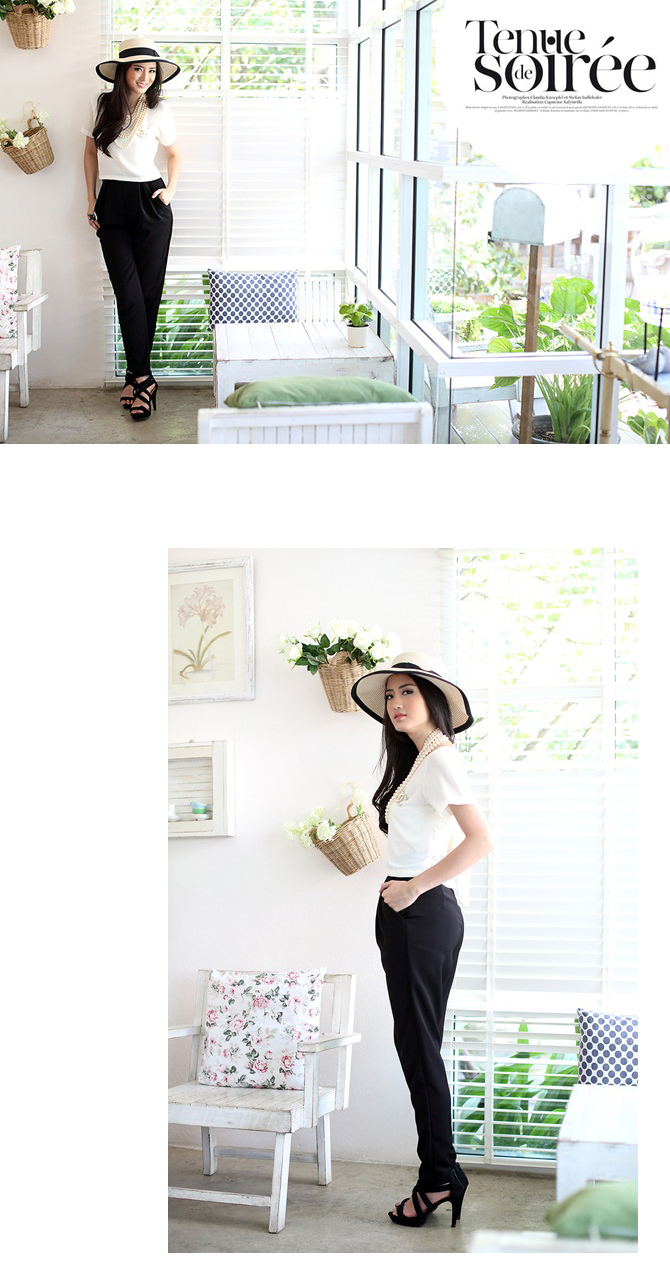 เสื้อแบบเก๋ ทรงคร๊อปเล็กๆ แถมด้านหลังมีโบว์ให้ผูกเก๋ไก๋ หวานซ่อนเปรี้ยวตามกระแส สาวเกาหลีได้อีกค่า แนะนำสาวๆ แมทช์กับเอวสูงแล้วสวยเปรี้ยวอย่าบอกใครเลยนะคะ Pre Summer นี้ ถือเป็น Must Have Item เลยค่า
