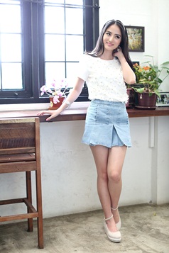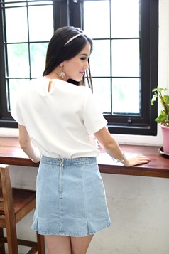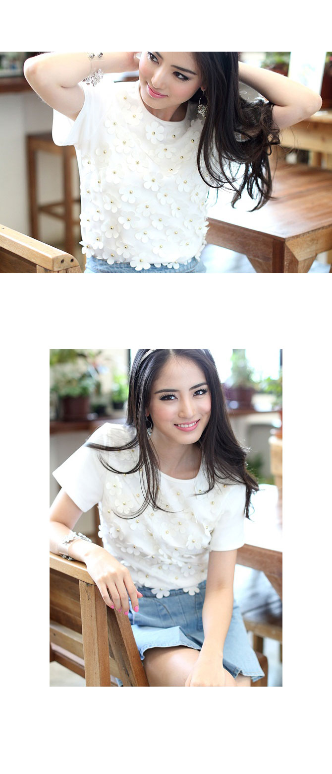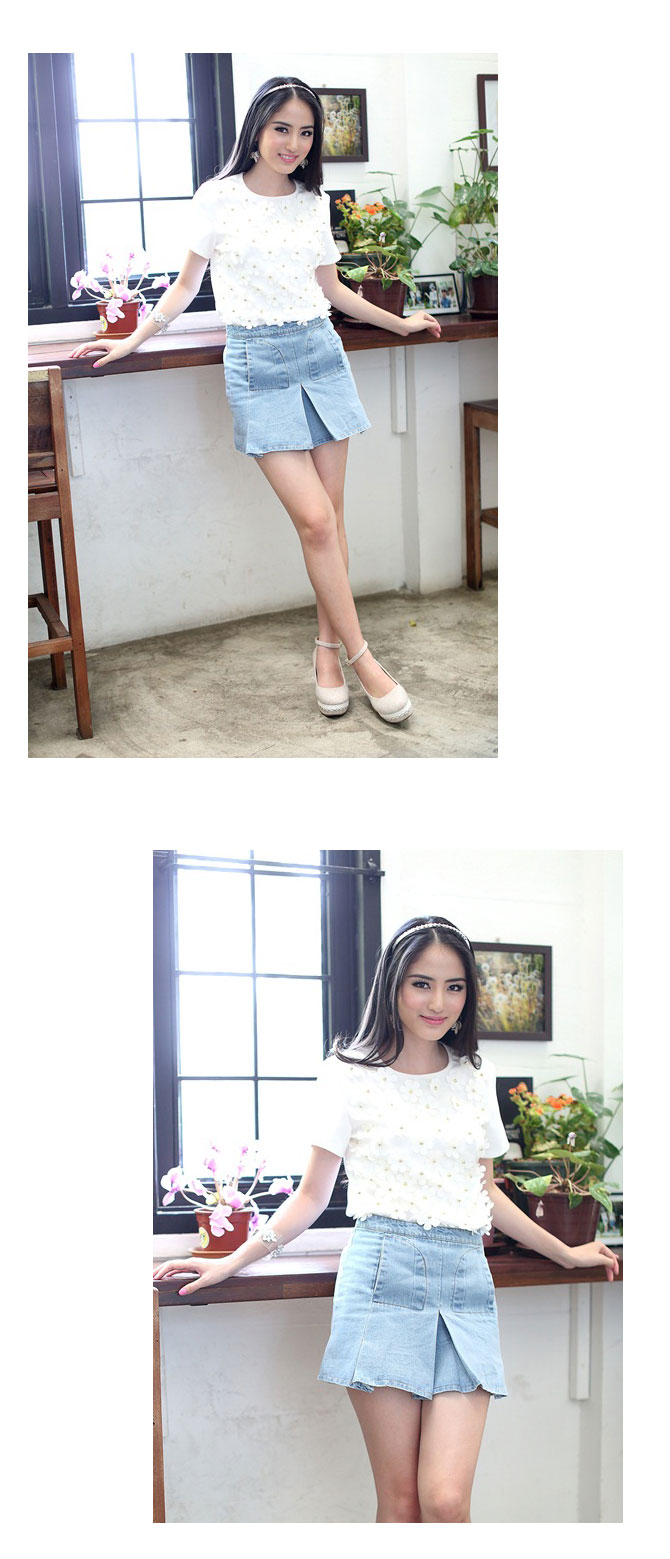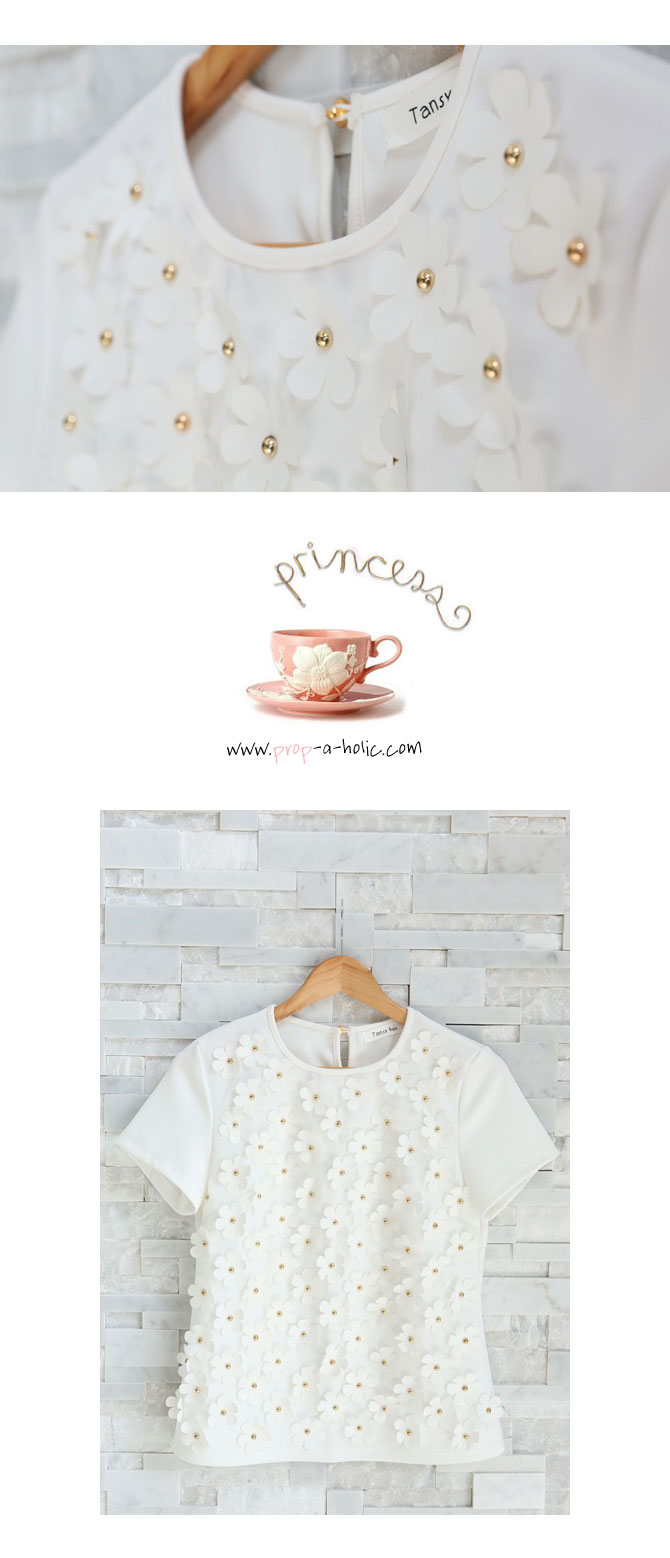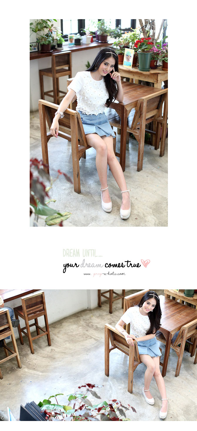 เสื้อผ้าชีฟองผสมเนื้อหนา ไม่บางไม่เนื้อผ้ายืดหยุ่นได้สบายตัว ทรงสบายๆ งานเกาหลีอินเทรนด์อีกตัวที่อยากแนะนำค่ะ ช่วงตัวประดับดอกไม้สไตล์ไฮแบรนด์ด้านหน้าตลอดตัว เพิ่มลุกส์ ดูหรูหรา มีราคา น่ารักมาก แมทช์คู่กระโปรงยีนส์รายการ ST335 ก็ดูคาวาอี้นะคะ