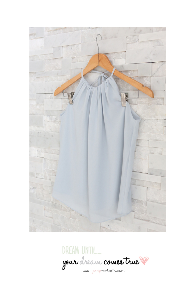 - เสื้อสายเดี่ยวสีโทนฟ้าอมเทาบางๆ ตัวนี้สีสวยแปลกตา แลดูเย็นสบายมากๆ ค่ะ ใช้ผ้าชีฟองเนื้อหนาตัดเป็นเสื้อสายเดี่ยว ตัดต่อช่วงคอเว้าเข้าไหล่เล็กๆ ทรงนี้ใส่แล้วดูเพรียวสวย หุ่นดีมากค่ะ ด้านหลังเป็นเชือกให้ร้อยปรับผูกกระชับกับช่วงคอได้แบบสบายๆ รายการนี้แนะนำสาวๆ แมทช์คู่กับกระโปรงรายการ ST338 รับรองได้ลุคส์สวยหรู ดูดีแบบเลดี้เปรี้ยวๆ เชียวค่ะ