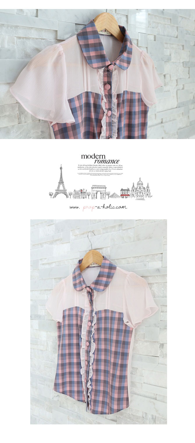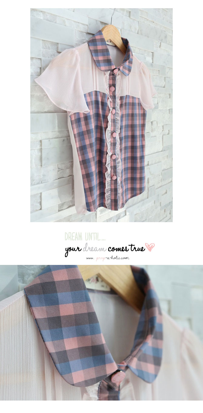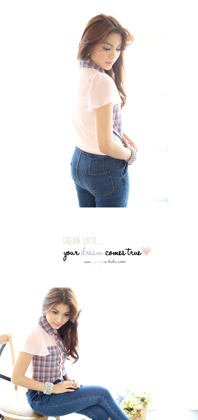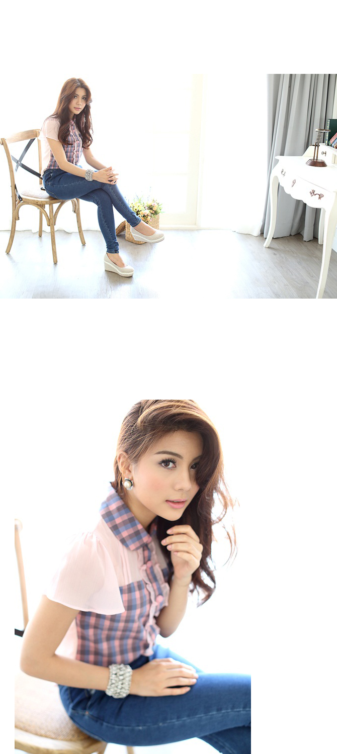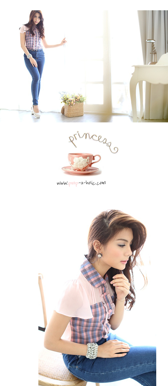 เสื้อเชิ๊ตปกบัว สีหวาน งานคุณหนู จาก La Rami ค่ะ ตัวนี้จัดมาให้สาวๆ เลดี้ที่ชอบความเรียบง่ายแต่มีอะไรๆ Rami เลือกใช้ผ้าชีฟองสีชมพูตัดต่อกับผ้าลายสก๊อตเนื้อดีที่ช่วงตัว และ ปกคอ เพิ่มดีเทลลูกไม้น้อยๆ ที่สาบกระดุม ให้อารมณ์คุณหนูสุดหวานแมทช์ก็ง่ายจริงอะไรจริง จะกางเกงหรือกระโปรงก็ให้ลุกส์เฟมินินแบบสุดๆ ค่ะ หมายเหตุ: น้องฟ้าและฟาใส่ SS ค่ะ