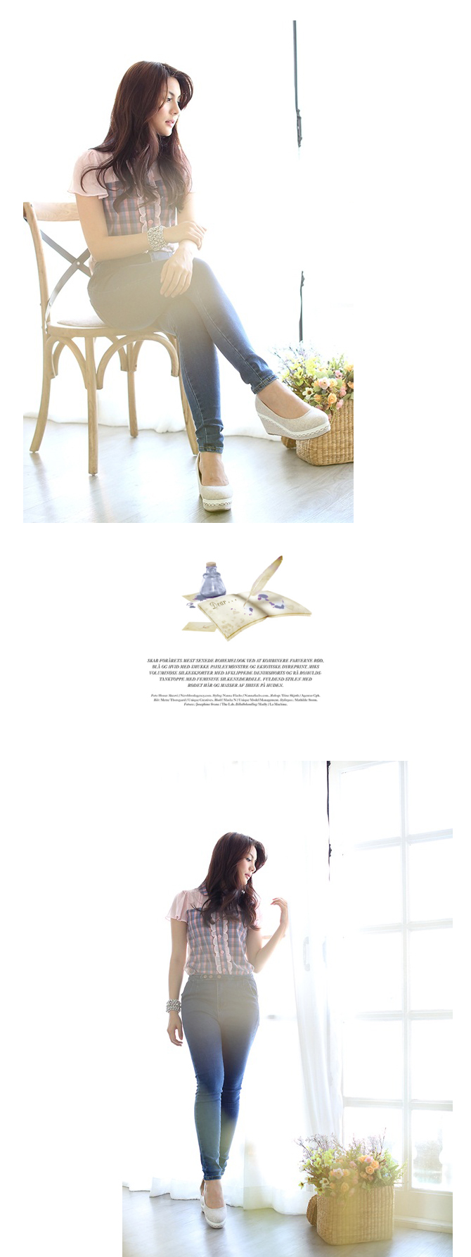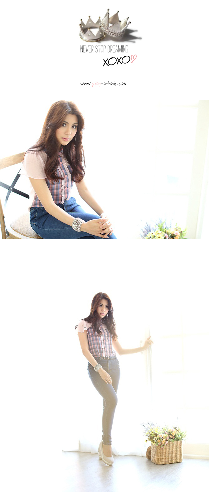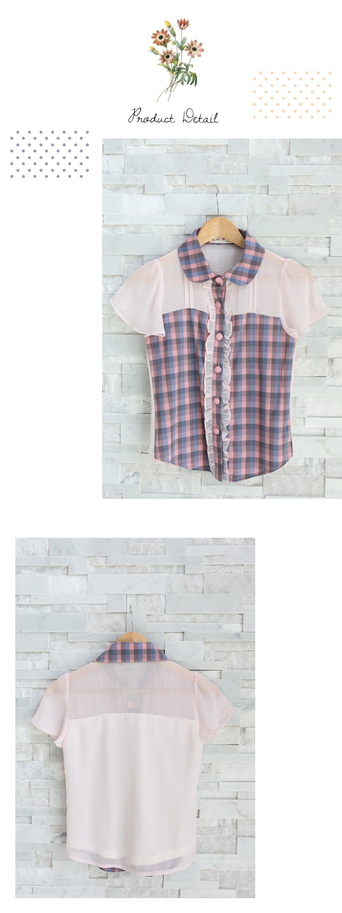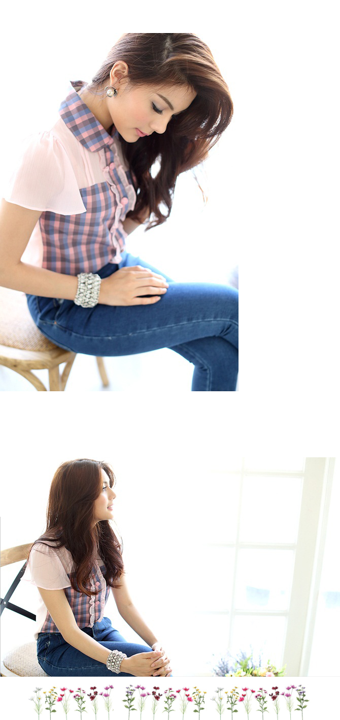 เสื้อเชิ๊ตปกบัว สีหวาน งานคุณหนู จาก La Rami ค่ะ ตัวนี้จัดมาให้สาวๆ เลดี้ที่ชอบความเรียบง่ายแต่มีอะไรๆ Rami เลือกใช้ผ้าชีฟองสีชมพูตัดต่อกับผ้าลายสก๊อตเนื้อดีที่ช่วงตัว และ ปกคอ เพิ่มดีเทลลูกไม้น้อยๆ ที่สาบกระดุม ให้อารมณ์คุณหนูสุดหวานแมทช์ก็ง่ายจริงอะไรจริง จะกางเกงหรือกระโปรงก็ให้ลุกส์เฟมินินแบบสุดๆ ค่ะ หมายเหตุ: น้องฟ้าและฟาใส่ SS ค่ะ