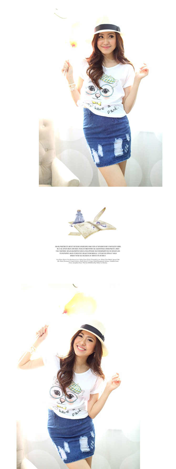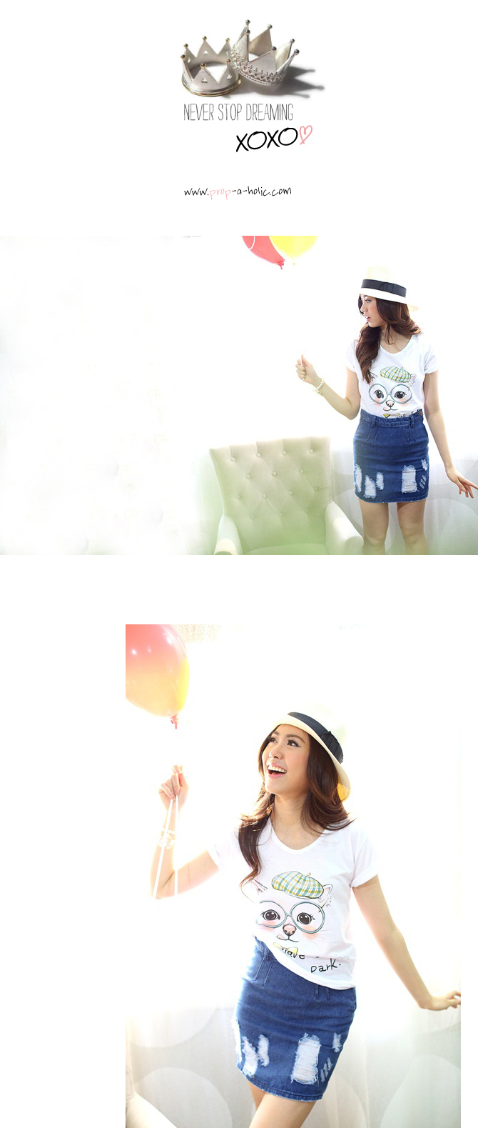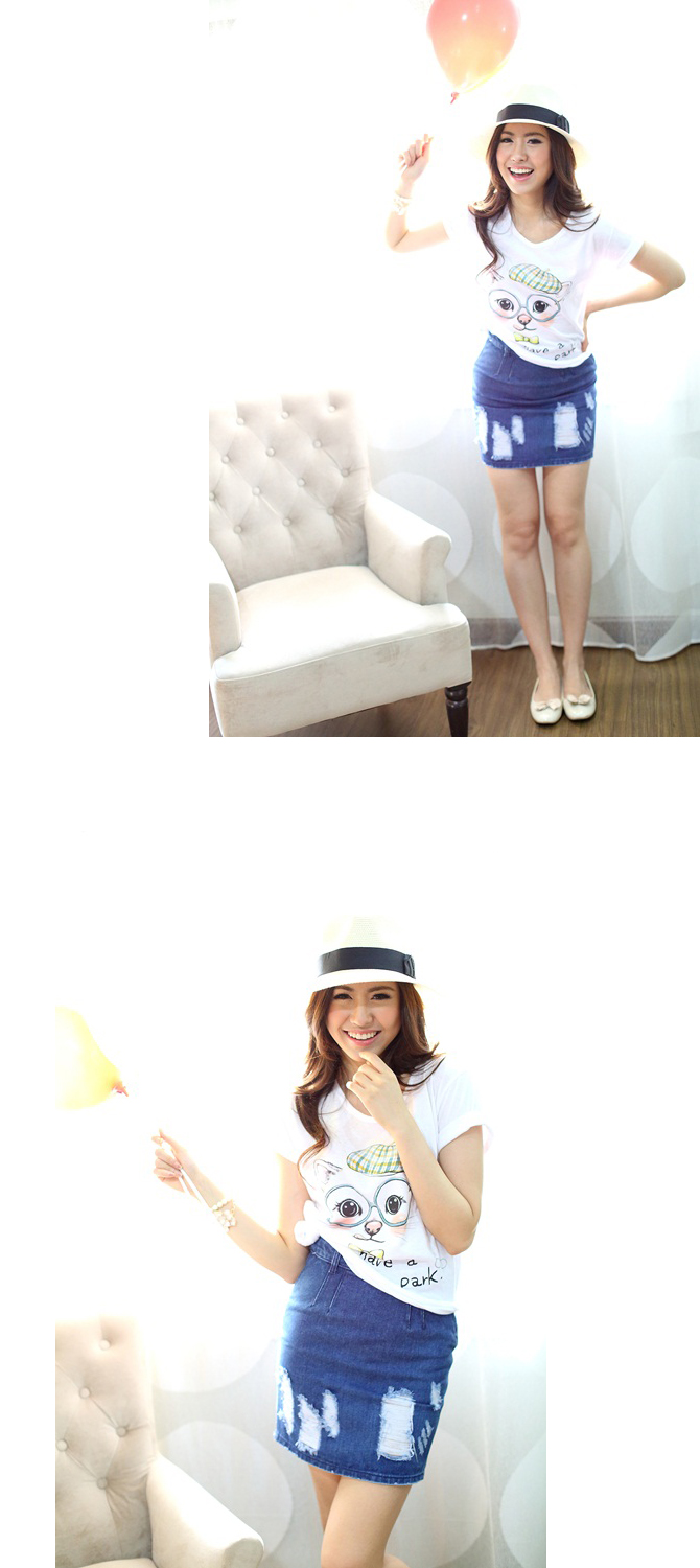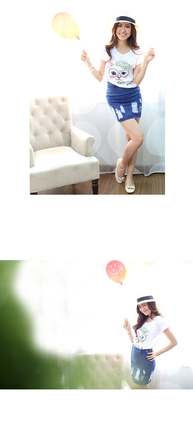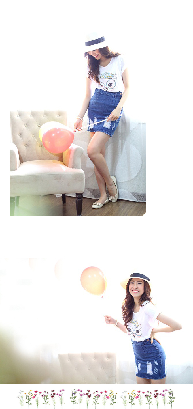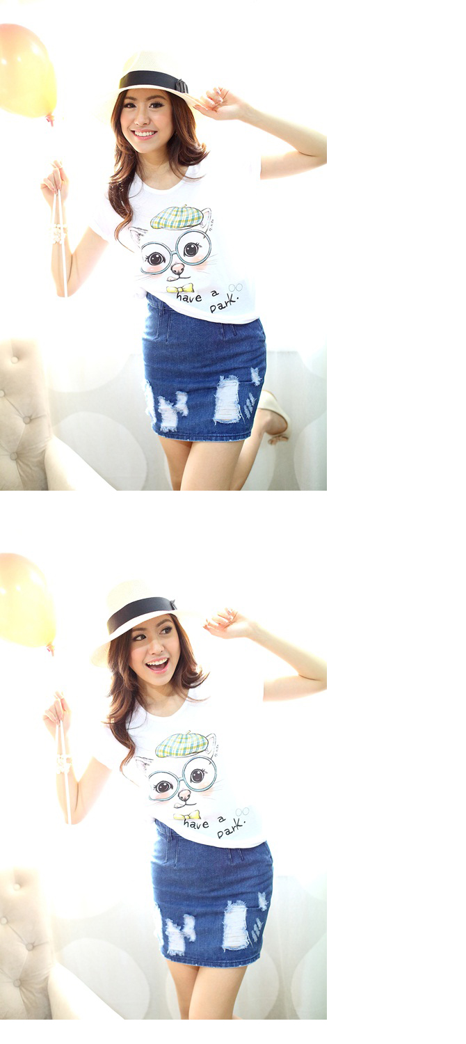 เสื้อยืดเนื้อนิ่มมม ทรงสบายๆ ใส่ได้เรื่อยๆ สะดุดตาน่าร๊ากกด้วยลายน้องแมวเหมียวสุดติสท์ สาวๆ ที่ชอบแนวเสื้อยืดกางเกงยีนส์ จัดไปได้เลยค่า แมทช์คู่กระโปรงยีนส์รายการ ST345 ก็ชิคสุดๆ ค่ะ