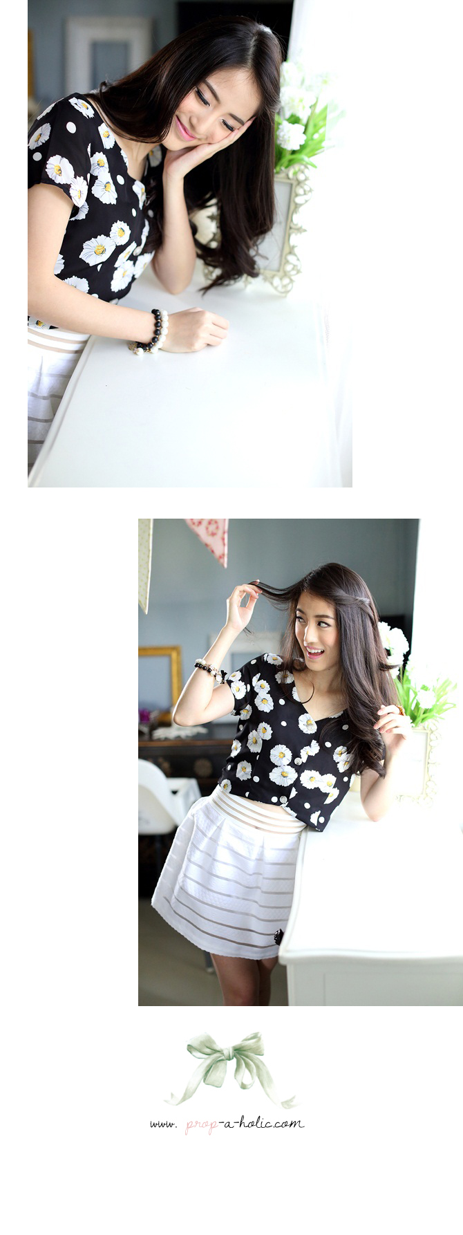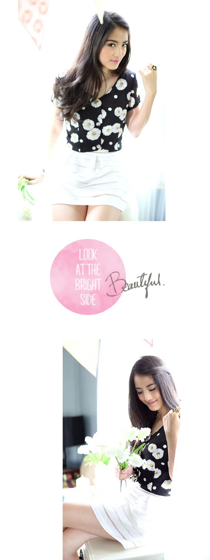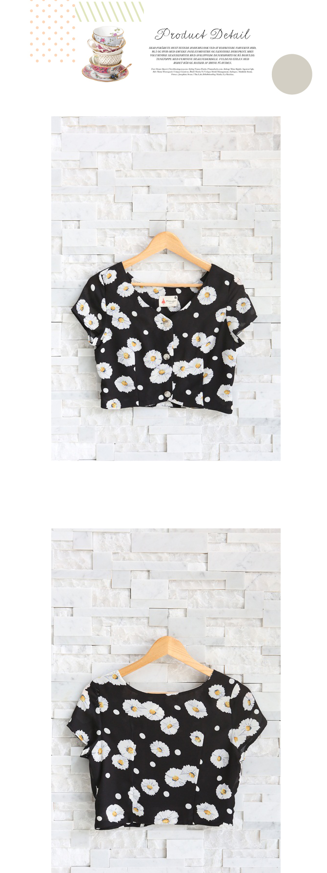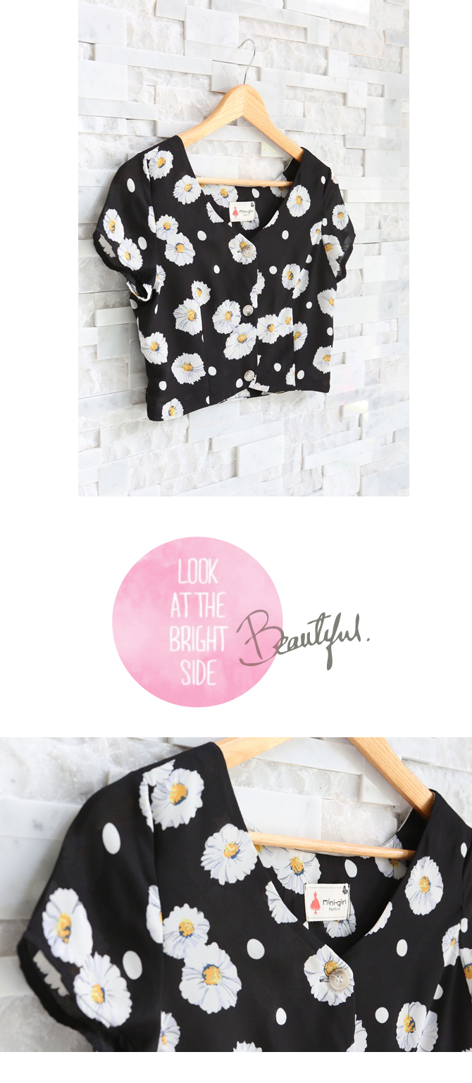 เสื้อตัวสั้น ลายดอกไม้สุดหวานตัดกับสีดำสุดคลาสสิค แค่ลายผ้าก็น่าร๊ากกิ๊บเก๋มากแล้วค่า แถมเนื้อผ้าลื่นๆ เย็นๆ ใส่สบายเข้ากับอากาศร้อนๆ ด้วยนะคะ งานกระดุม ใส่ง่าย ทรงปล่อย ใส่แมทช์กับอะไรก็งามล้ำ จะใส่กับยีนส์เอวสูงก็ดูเหมือนเซเลป หรือ จะแมทช์คู่เอี๊ยมหมีรายการ DS653 ก็ให้ลุกส์หวานใสค่ะ