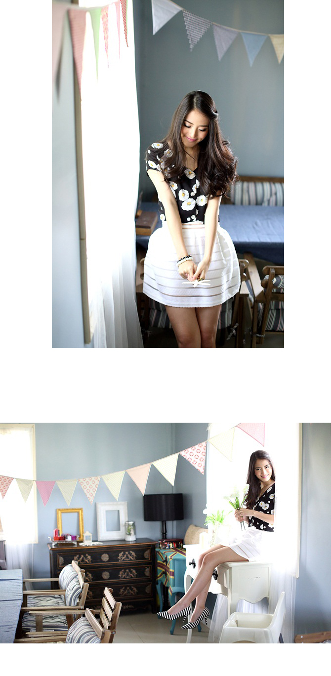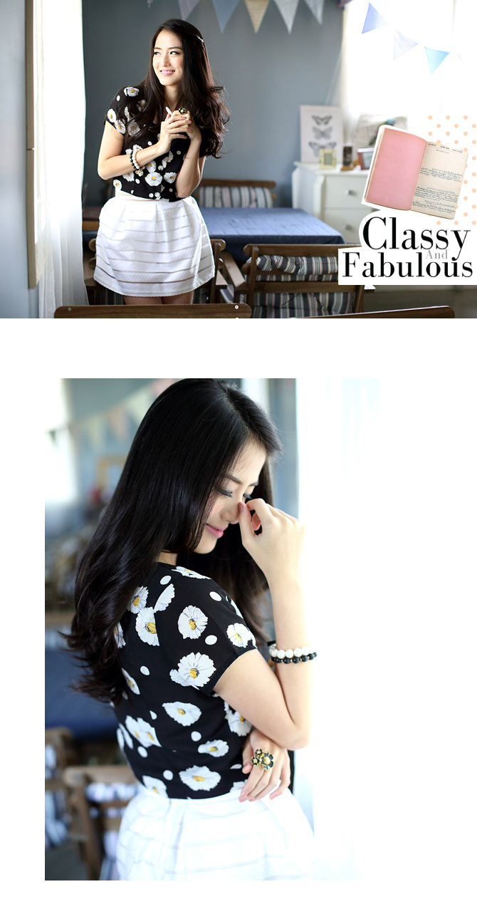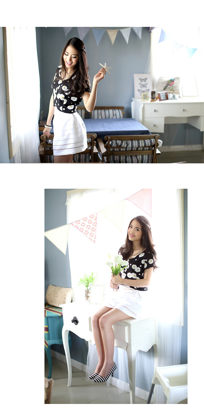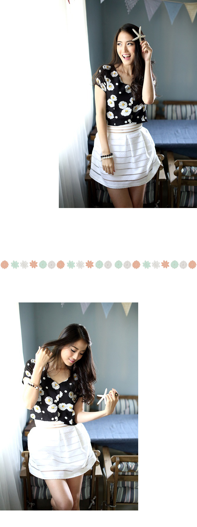 เสื้อตัวสั้น ลายดอกไม้สุดหวานตัดกับสีดำสุดคลาสสิค แค่ลายผ้าก็น่าร๊ากกิ๊บเก๋มากแล้วค่า แถมเนื้อผ้าลื่นๆ เย็นๆ ใส่สบายเข้ากับอากาศร้อนๆ ด้วยนะคะ งานกระดุม ใส่ง่าย ทรงปล่อย ใส่แมทช์กับอะไรก็งามล้ำ จะใส่กับยีนส์เอวสูงก็ดูเหมือนเซเลป หรือ จะแมทช์คู่เอี๊ยมหมีรายการ DS653 ก็ให้ลุกส์หวานใสค่ะ
