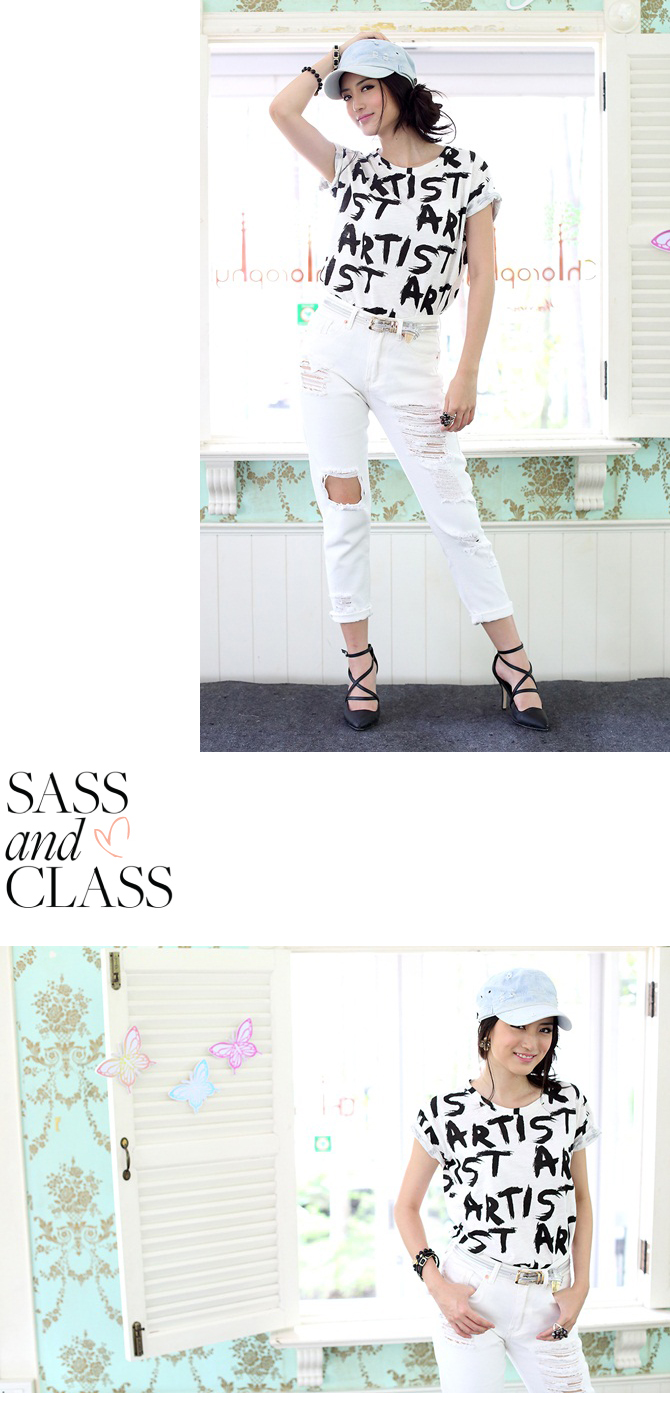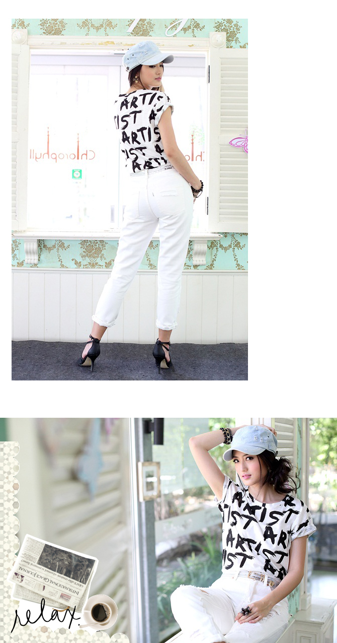 เสื้อยืดสุดเท่ห์ สกรีนตัวหนังสือเก๋ๆ ตลอดตัว ตัวนี้มาแนวเซอร์ๆ บ้างค่ะ กับเสื้อยืดเด็กแนว เนื้อผ้าคอตตอนผสมสบายๆ ใส่คู่กางเกงยีนส์ได้หลากหลายแบบ จะขาสั้น ขายาว ก็เท่ห์สุดๆ ไปเลยค่ะ