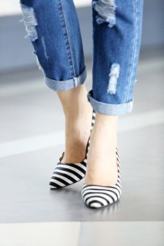- รองเท้าคัชชู ลายทางกิ๊บเก๋ แบบฮิโซวๆ สไตล์ La Rami ค่ะ คู่นี้ความสูงกำลังพอดี๊พอดี 3 นิ้วสวยๆ cotton satinหุ้ม PU เกรดดีพิมพ์ลายทาง ตัดสีขาวดำสุดลงตัว คุณภาพและความงาม พูดเลยว่าเกินราคาไปเลยจ้า แถมทรงนี้ใส่แล้วเท้าเรียวยาวด้วยนะคะ สาวๆ เซเลปพลาดคู่นี้ไม่ได้น๊า