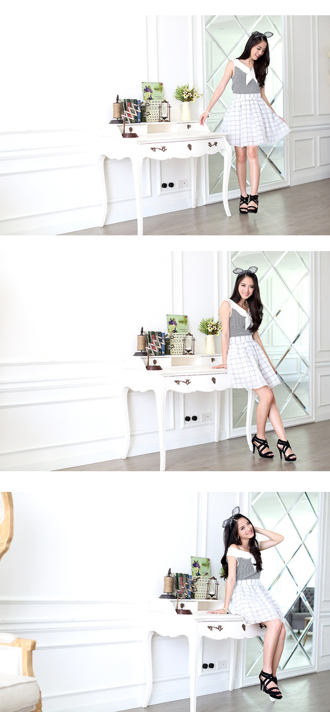 กระโปรงทรงบาน แบบเก๋ๆ ตัวนี้ใข้ผ้าลายตารางสวย สีสันเรียบดูคลาสสิค เพิ่มดีเทลไม่เหมือนใครด้วยผ้าแก้วซีทรูคลุมทับด้านนอก งานซิปมาพร้อมซับในตัว แมทช์กับเสื้อได้หลากหลายสไตล์ หรือจะแมทช์คู่เสื้อรายการ 14-BL1324 ก็คุณหนูดูน่ารักนะคะ หมายเหตุ: น้องแพรและฟาใส่ S ค่ะ