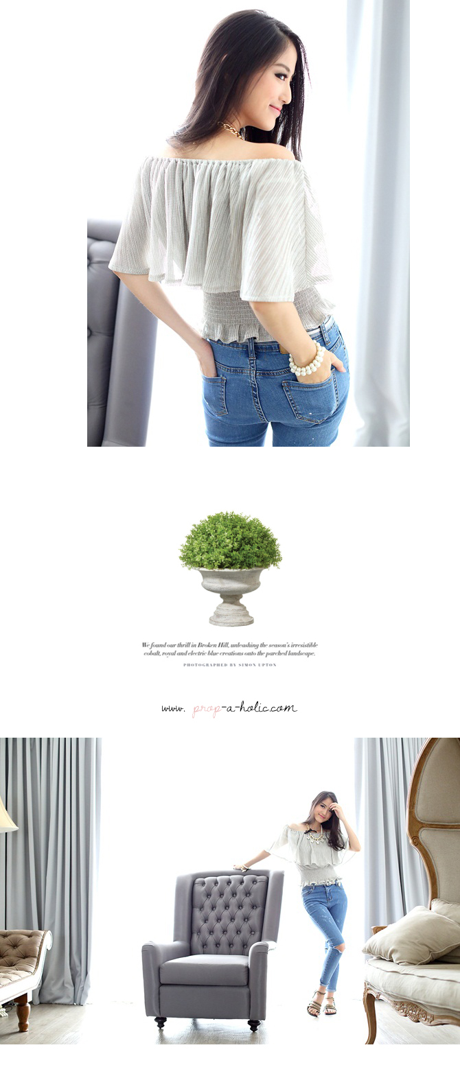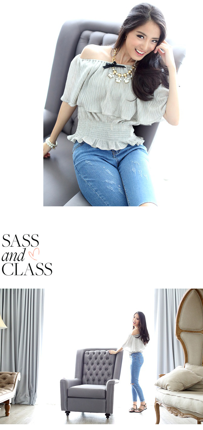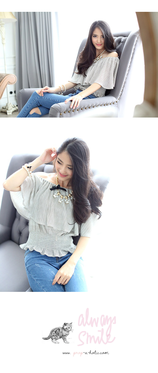 เพิ่มความหรูแบบคุณนาย ด้วยเสื้อดีไซน์หรูเปิดไหล่โทนสีกึ่งเมทัลลิกเบาๆ ตัวนี้เน้นที่ดีไซน์เปิดไหล่ เป็นระบายคลุมช่วงตัว เอวจั๊มพ์เล็กๆ เนื้อผ้าตัดต่อเลื่อมริ้วในตัว ดูหรู ไฮและ ไม่มีคันจ้า รับประกันคัตติ้งงามๆ ด้วยคุณภาพช่างเกาหลี ตัวนี้ออกงานนี้ได้สบายๆ เลยนะฮะ หรือจะใส่สวยในเมือง ก็สามารถค่ะ แค่แมทช์คู่สกินนี่ 20-ST390 สวยเปรี้ยวเลยค่า