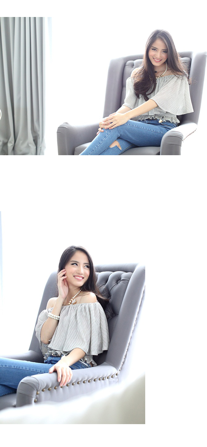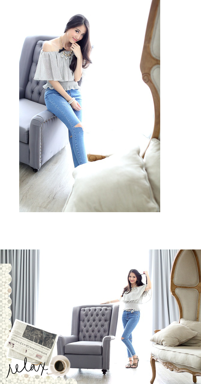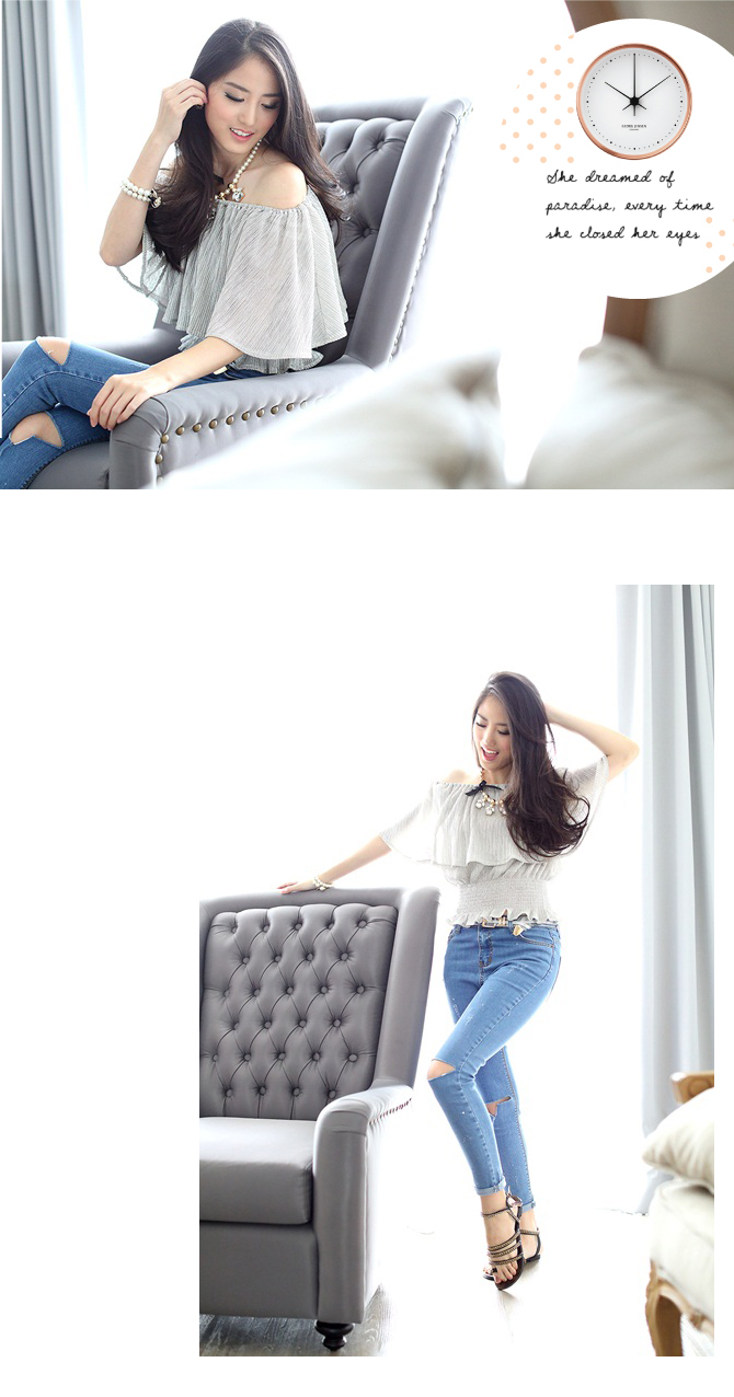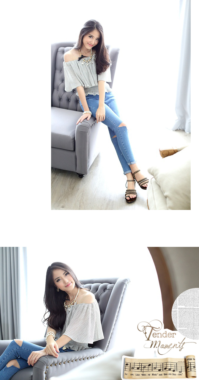 เพิ่มความหรูแบบคุณนาย ด้วยเสื้อดีไซน์หรูเปิดไหล่โทนสีกึ่งเมทัลลิกเบาๆ ตัวนี้เน้นที่ดีไซน์เปิดไหล่ เป็นระบายคลุมช่วงตัว เอวจั๊มพ์เล็กๆ เนื้อผ้าตัดต่อเลื่อมริ้วในตัว ดูหรู ไฮและ ไม่มีคันจ้า รับประกันคัตติ้งงามๆ ด้วยคุณภาพช่างเกาหลี ตัวนี้ออกงานนี้ได้สบายๆ เลยนะฮะ หรือจะใส่สวยในเมือง ก็สามารถค่ะ แค่แมทช์คู่สกินนี่ 20-ST390 สวยเปรี้ยวเลยค่า