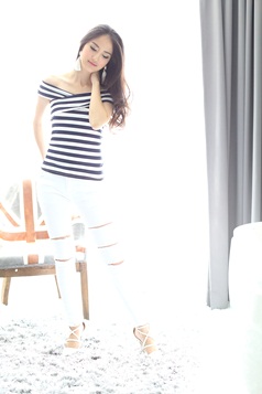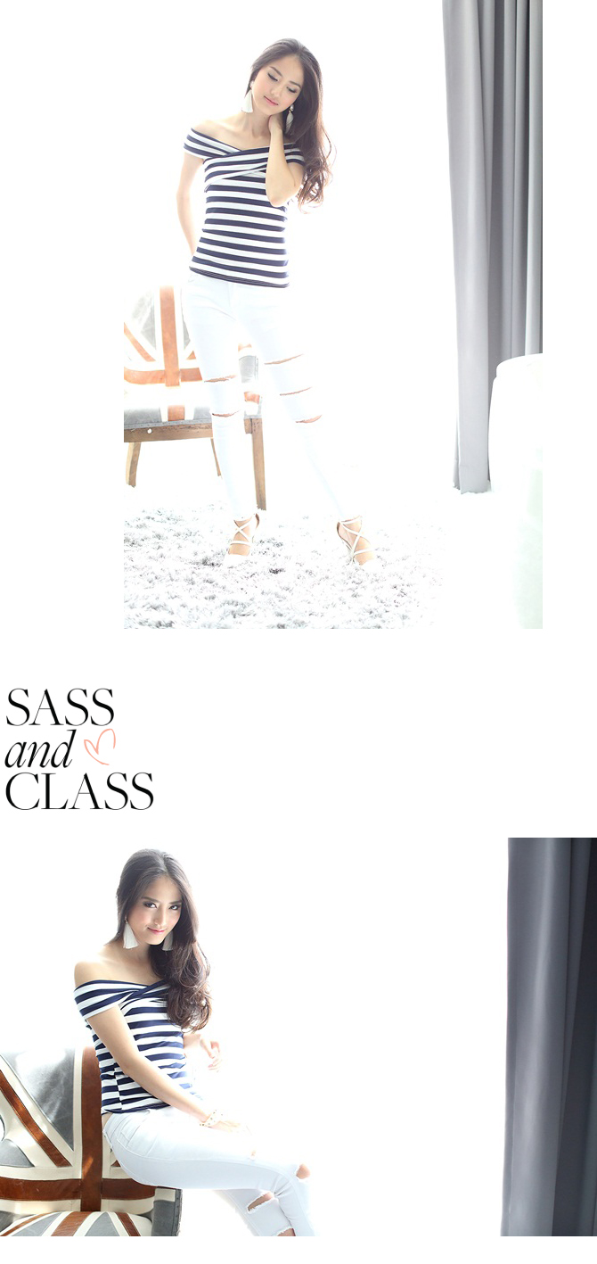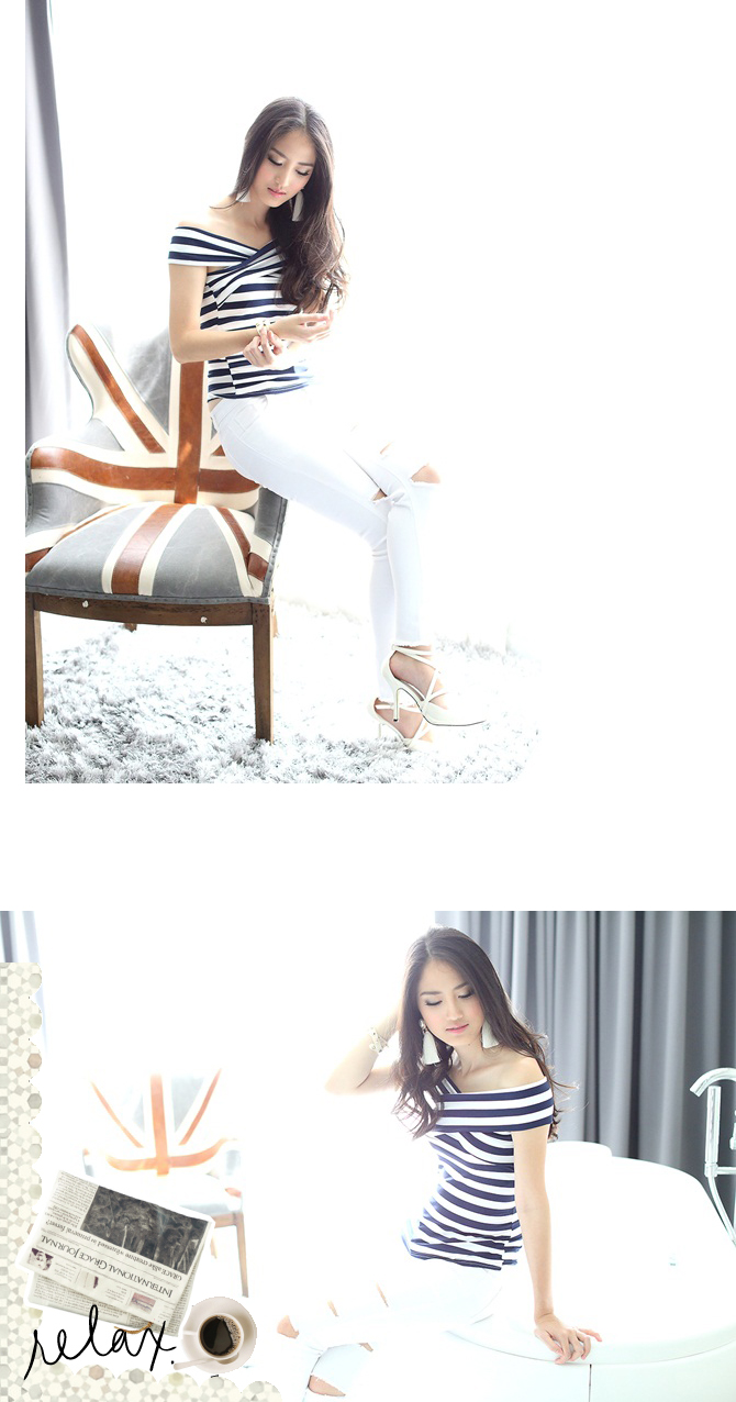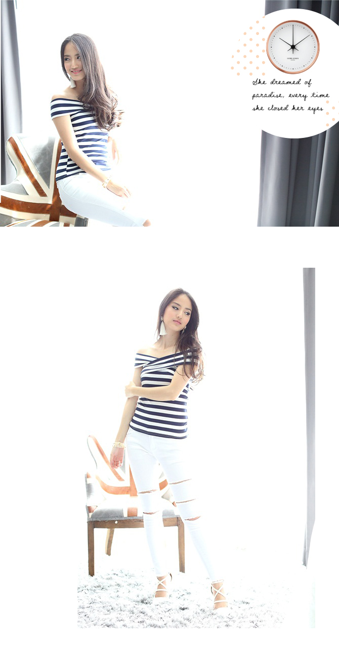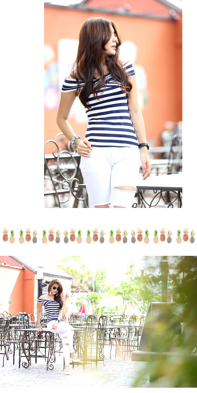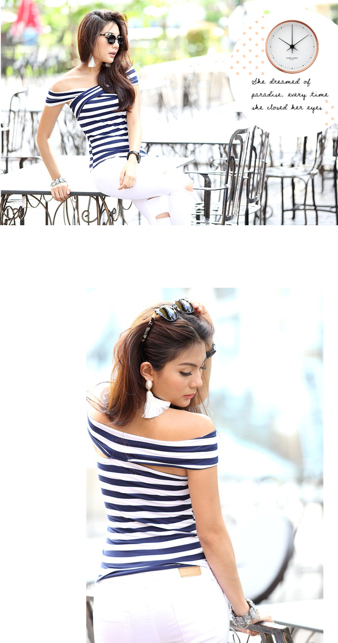 - คีพลุกส์สวยเปรี้ยวแบบมีสไตล์ ด้วยเสื้อยืดแบบเก๋ เนื้อดี ผ้าคอตตอนผสมสเป็นเด็กซ์ เนื้อนิ่มเด้งเบาสบาย ดีไซน์เปิดไหล่ เข้ารูปสุดเปรี้ยวลายทางเก๋ไก๋แบบลงตัว แมทช์คู่ท่อนล่างด้วยสกินนี่ รายการ 22-ST387 ก็งาม ชนะเลิศค่า
