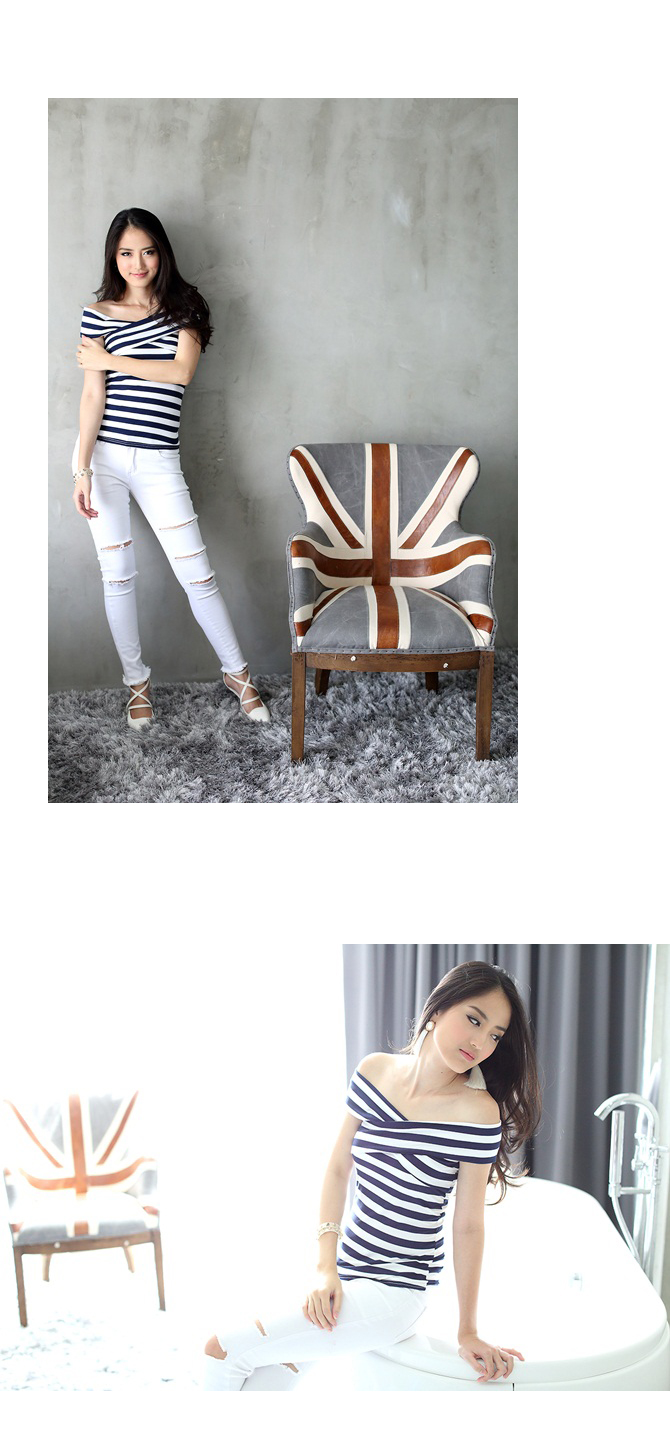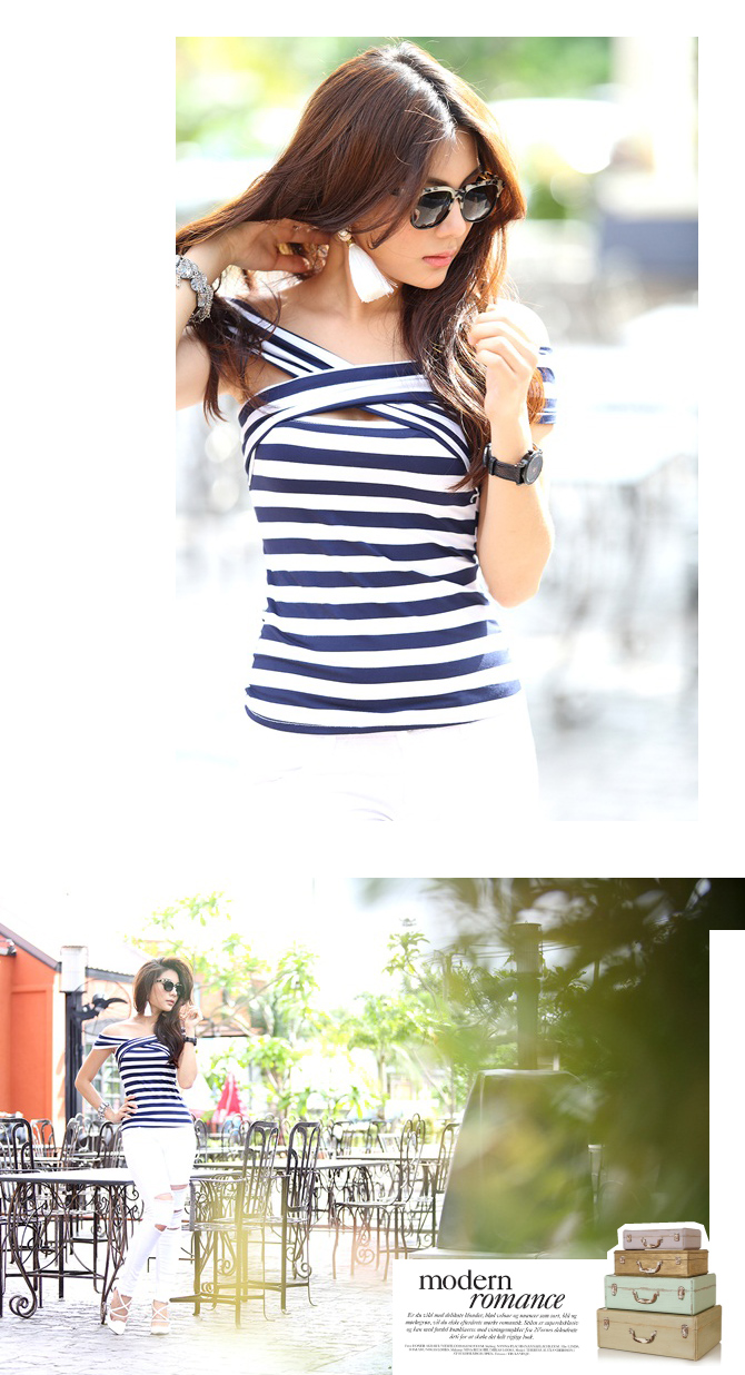 21-BL1319 Cross neck stripe Top