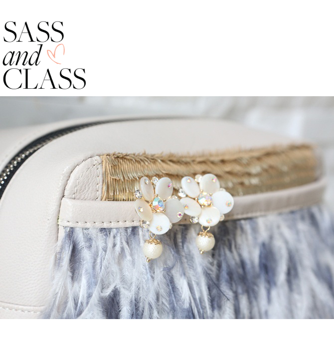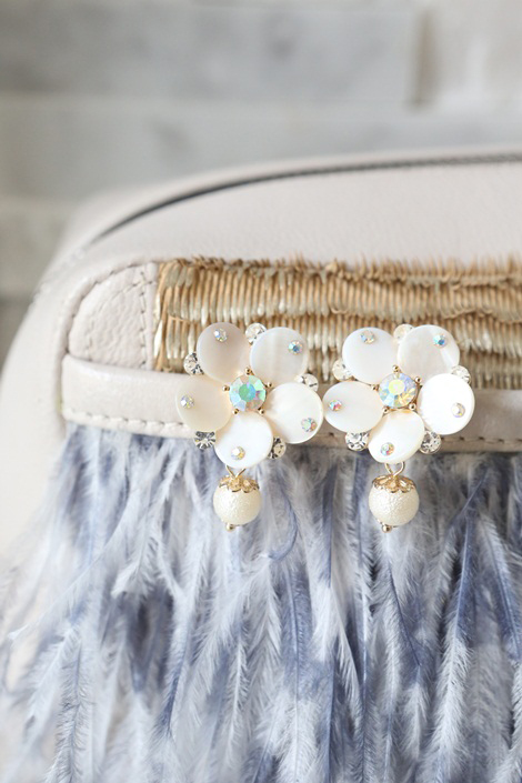 ต่างหูดีไซน์รูปดอกไม้ สีขาวเหลือบมุก สวยหรู ดูน่ารักมากมาย คู่นี้ใส่กับชุดหวานได้มากมาย รับรองความงามเลยนะคะ