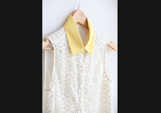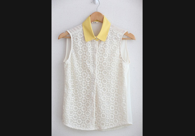 เสื้อเชิ๊ตกล้ามลูกไม้สวยมากกกกกก งานเกาหลี เพิ่มสีสันด้วยปกสีเลมอน สวยใสๆจร้า
