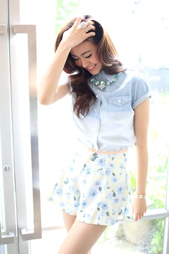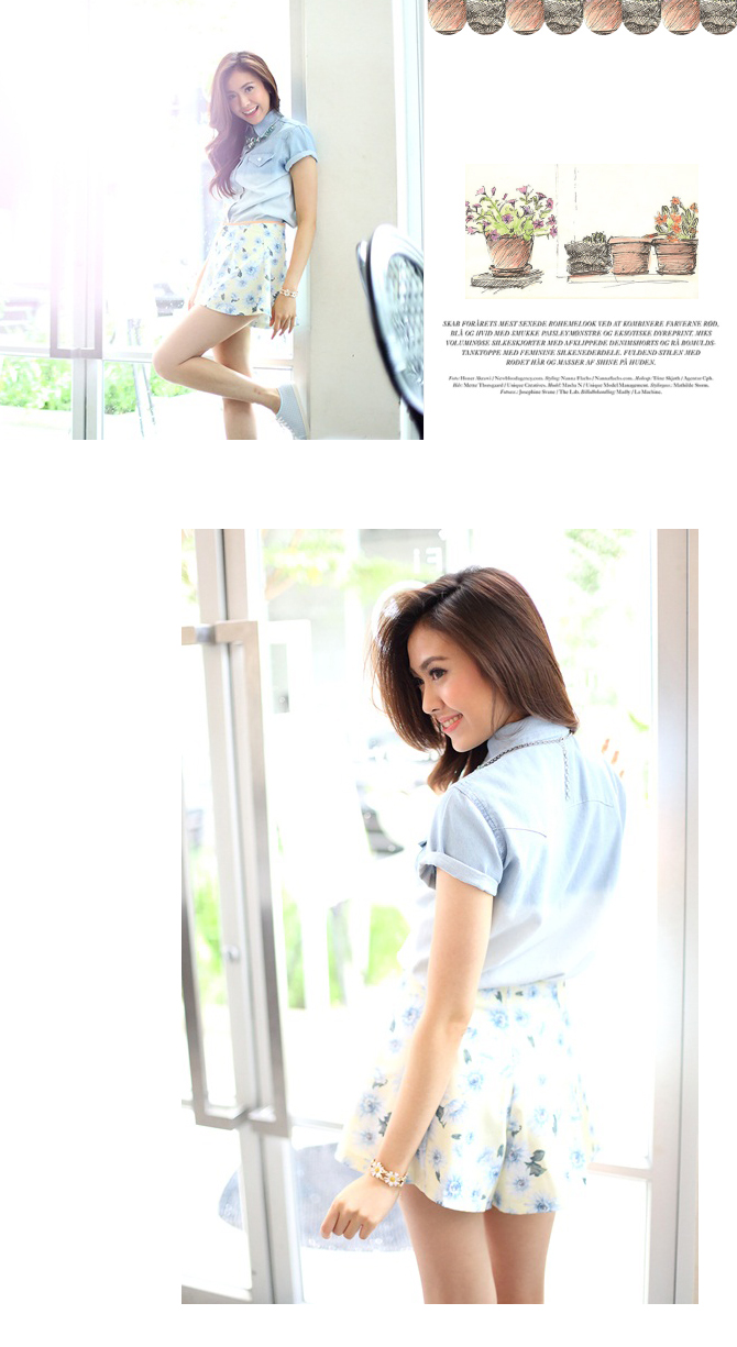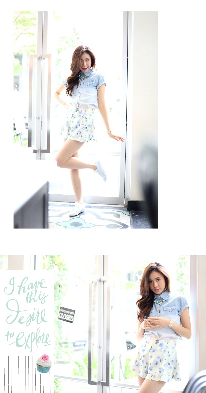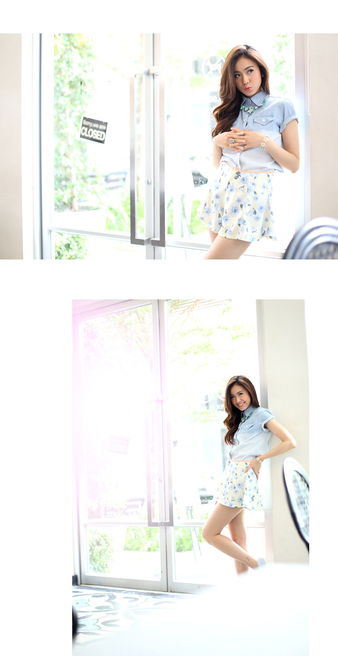 กางเกงขาสั้น ทรงปลายบานแบบอินเทรนด์จากเกาหลี ตัวนี้ใช้ผ้าลายดอกไม้ สวยหวานน่ารัก มองเผินๆ เหมือนใส่กระโปรงเลยค่ะ แมทช์เสื้อได้มากมายสารพัดแบบ หรือถ้าไม่อยากหวานมากจนเกินไป แนะนำแมทช์คู่เสื้อรายการ BL1345 สวยหวานซ่อนเท่ห์เลยค่ะ หมายเหตุ: น้องกุ๊กกิ๊กและฟาใส่ S ค่ะ