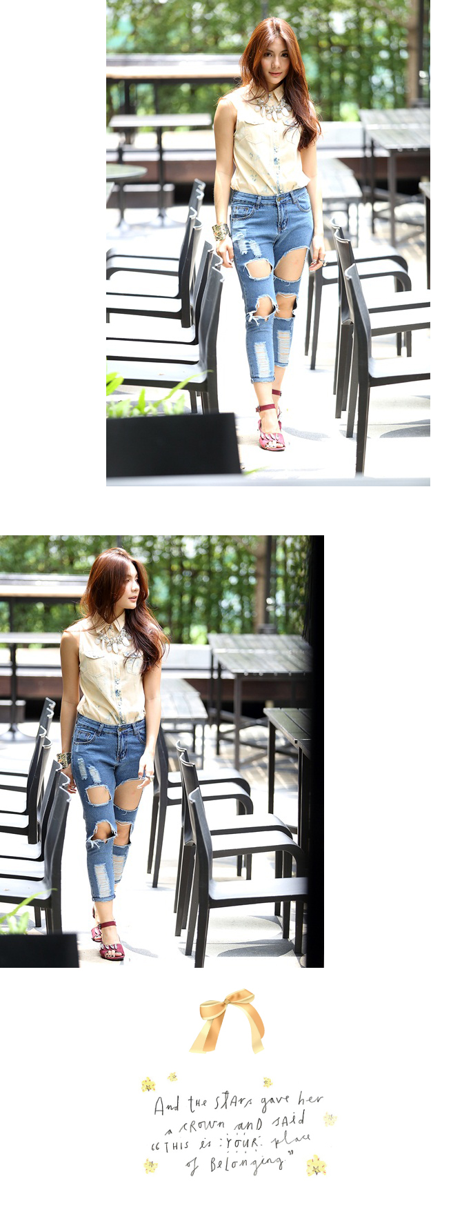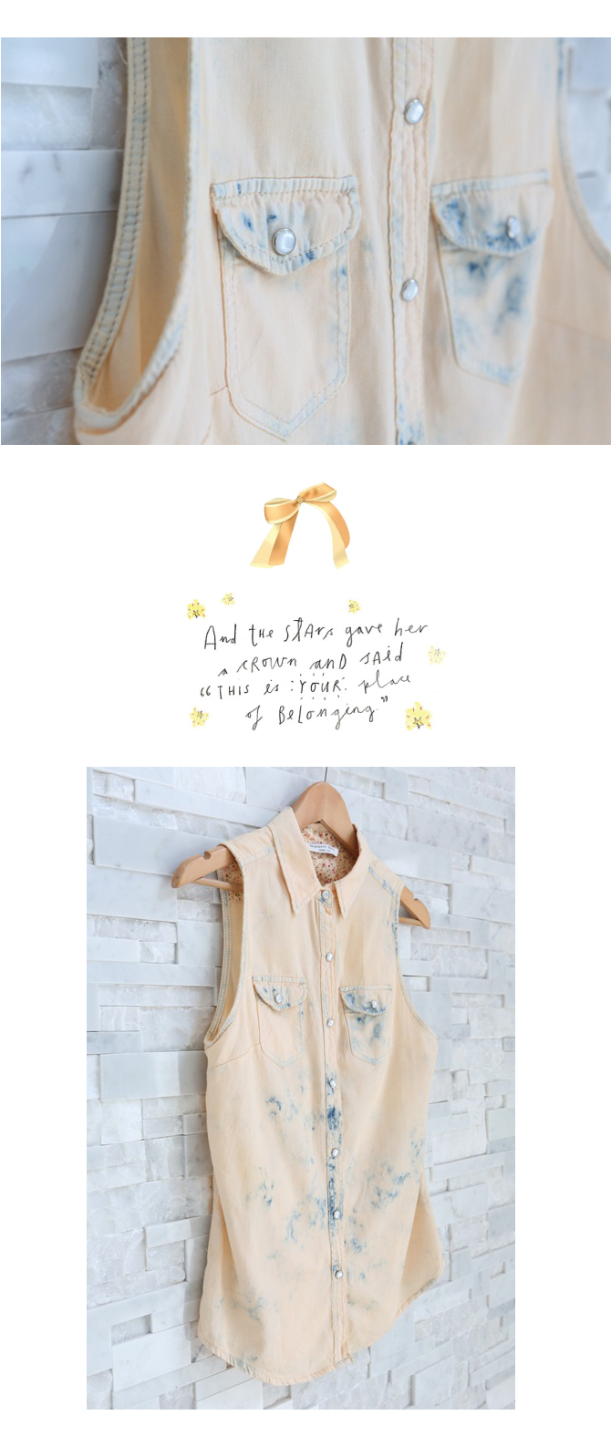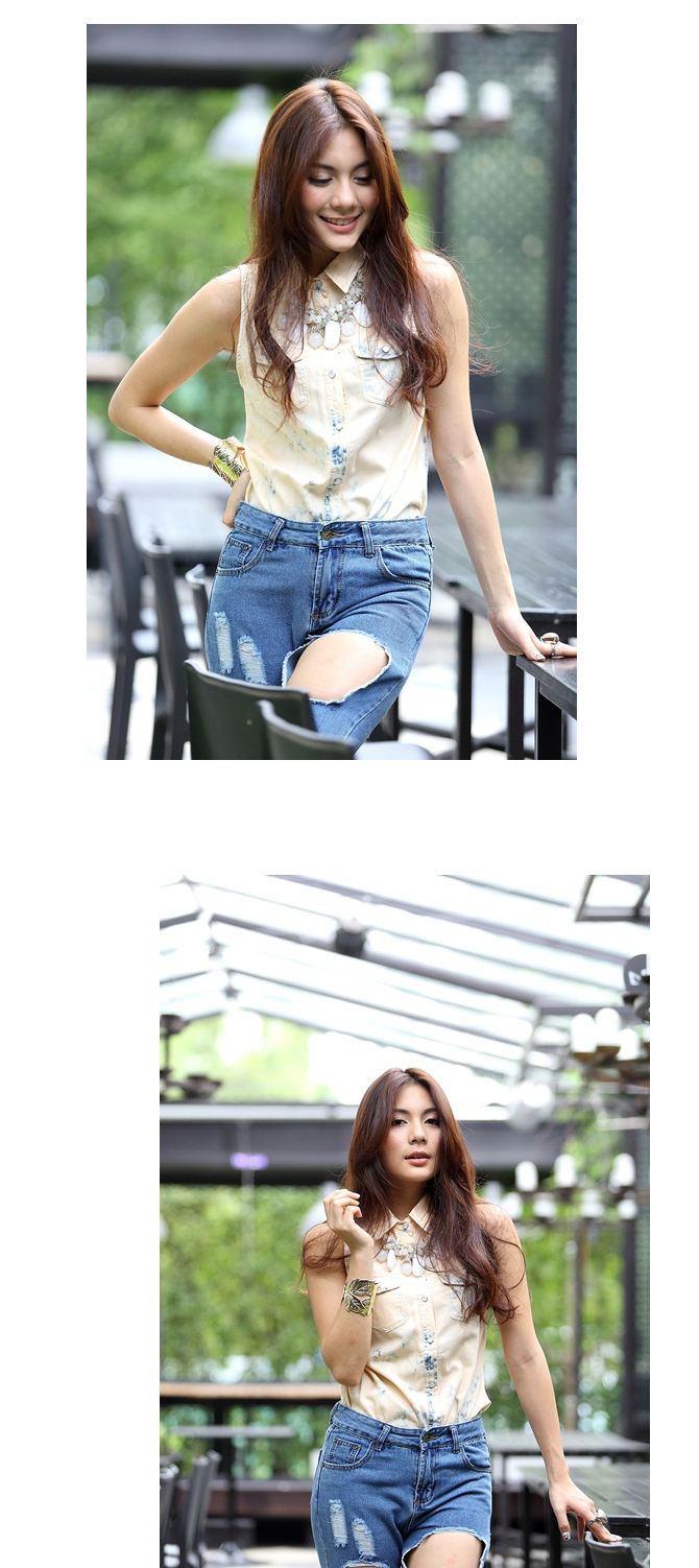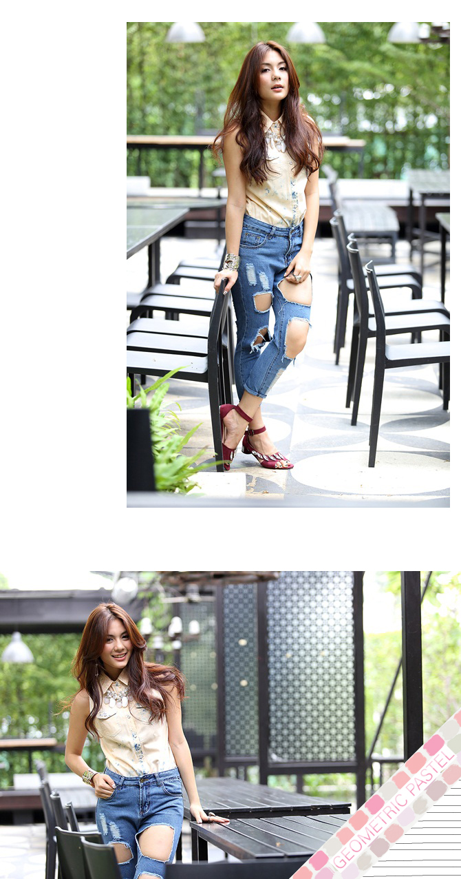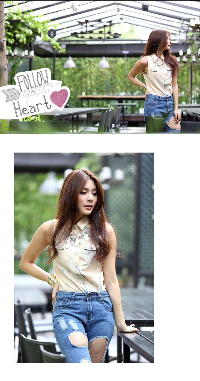 - เสื้อเชิ้ตแขนกุดเนื้อเดนิ่มผสมคอตตอนเกรดดี ตัวนี้ฟอกสีโอลด์โรสสวยตัดกับสียีนส์เซอร์ๆ เบาๆ ให้อารมณ์สวยลงตัวมากๆ แนะนำสาวๆ แมทช์คู่ท่อนล่างเป็นยีนส์ สไตล์ Double denim ก็สวยเท่ห์ค่า