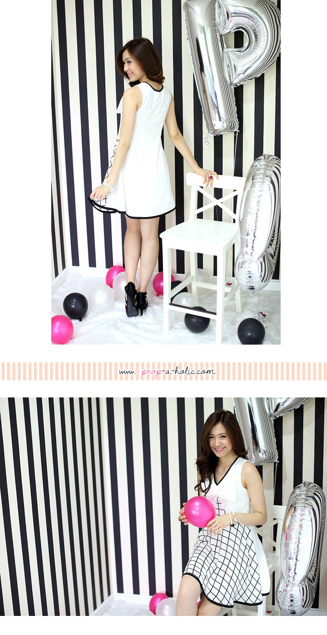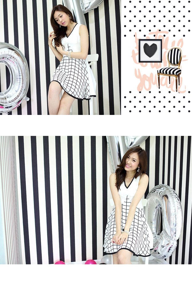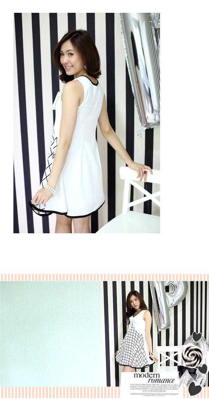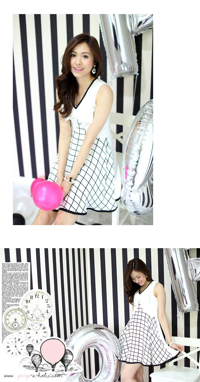 - เดรสคุณนาย สไตล์ไฮคลาส จาก La Rami ที่รับรองสาวๆ ว่าปลื้มปริ่มแน่นอน ตัวนี้ใช้ผ้าเนื้อดีเกรดญี่ปุ่นตัดต่อสีเข้ากันอย่างลงตัว สีเรียบขาวดำดูหรู เพิ่มผ้าลายตารางให้ดูมีอะไรๆ ทรงบาน คอวีแบบนี้ใส่แล้วดูเพรียวนะคะ รับประกันค่า