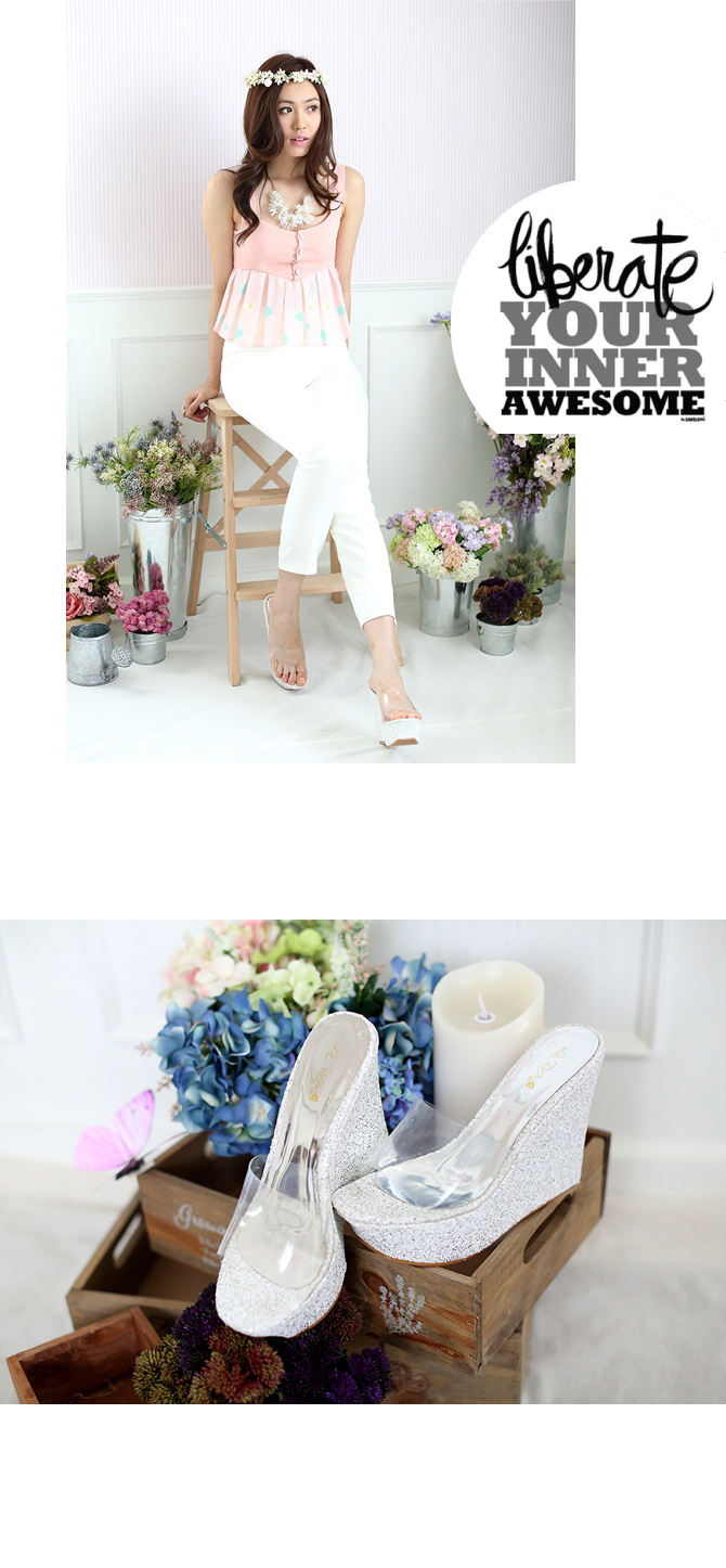 - รองเท้าส้นเตารีด สีขาวเรียบเริ่ดเชิ่ดแบบคุณหนู ส้นเตารีดติดกากเพชรวิ้งวับสวยงามมากๆ ค่ะ คู่นี้เป็นแบบสวม ใส่ง่าย น้ำหนักเบามากด้วยนะคะ แถมช่วงแพลตฟอร์มด้านหน้าเสริมสูง 2 นิ้ว ช่วยให้เดินง่าย สบายขึ้นอีก La Rami การันตีความดีงามค่าสาวๆ