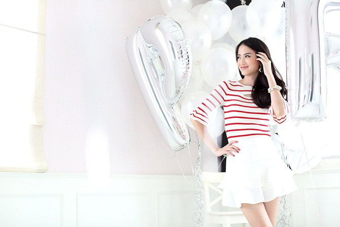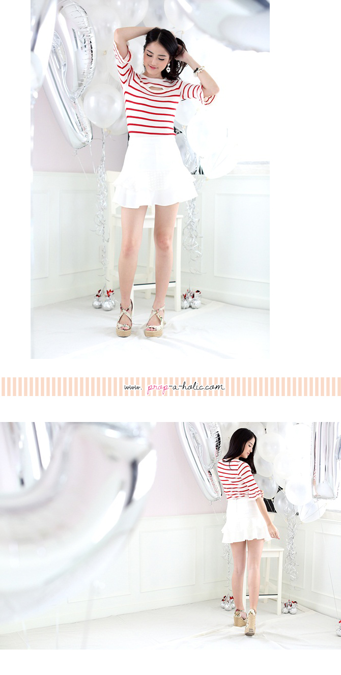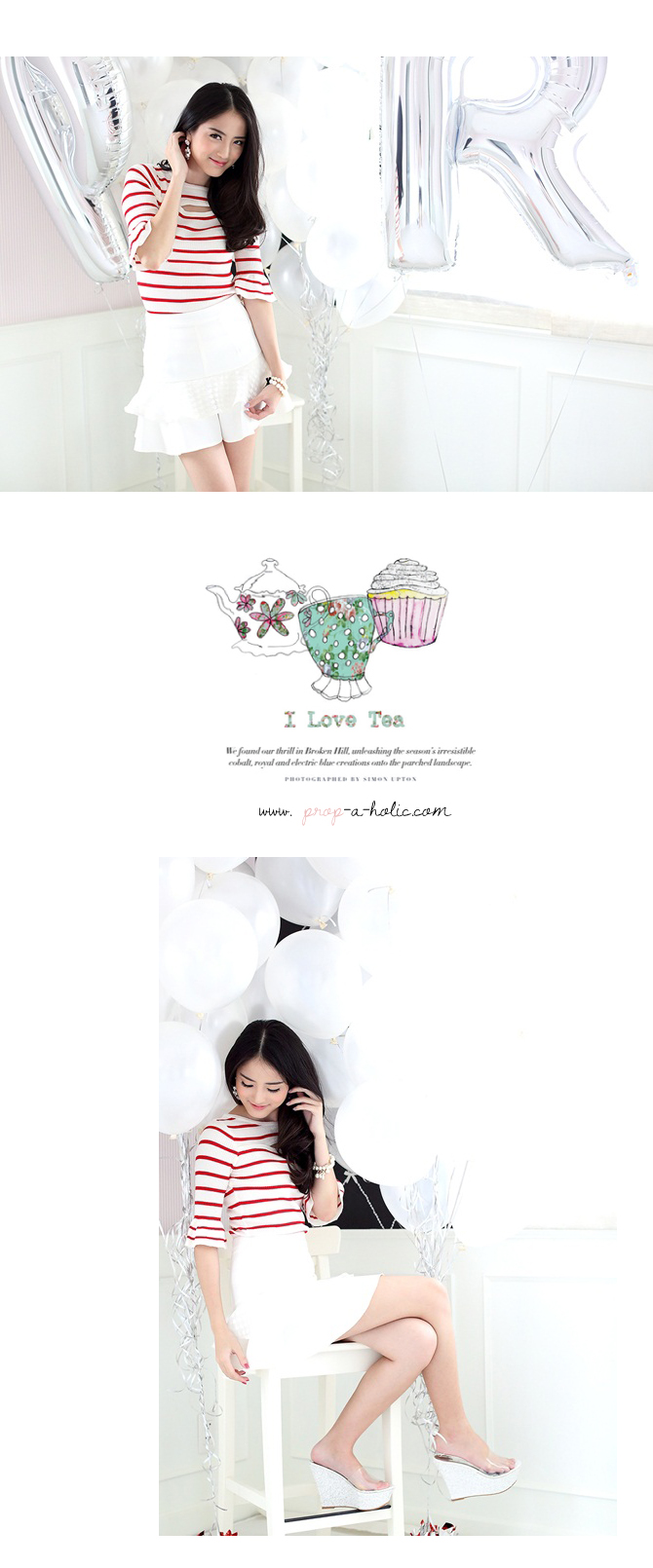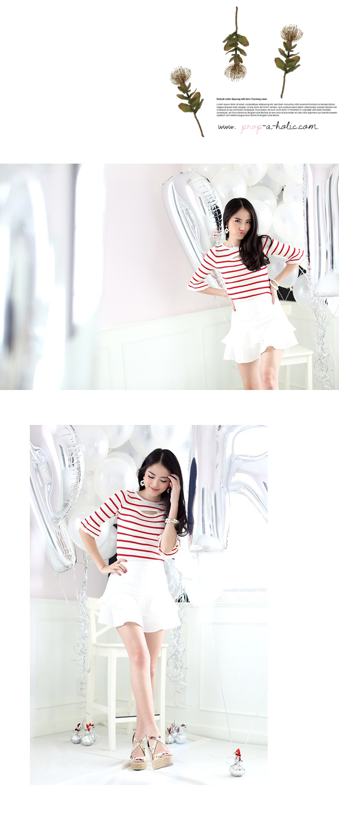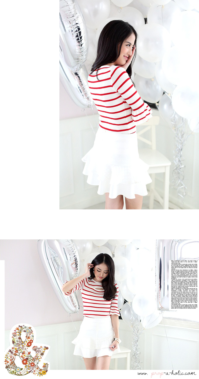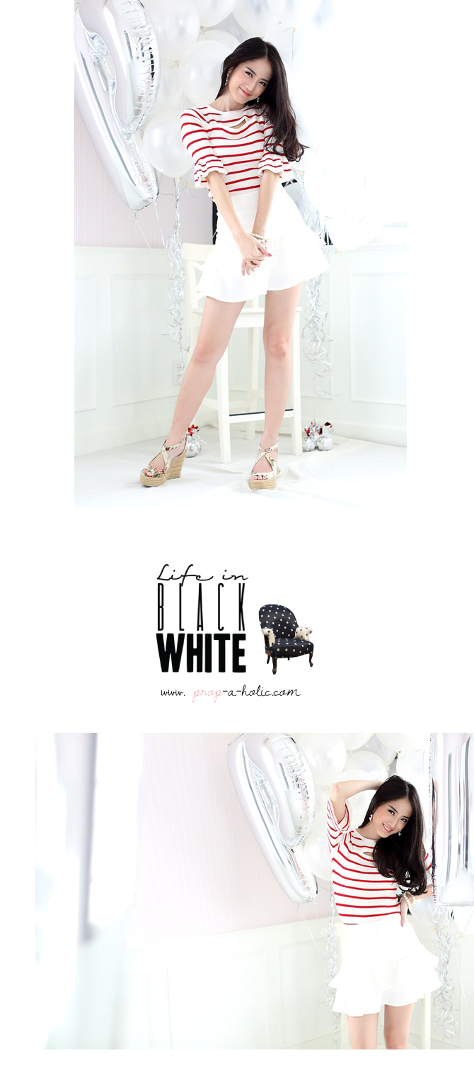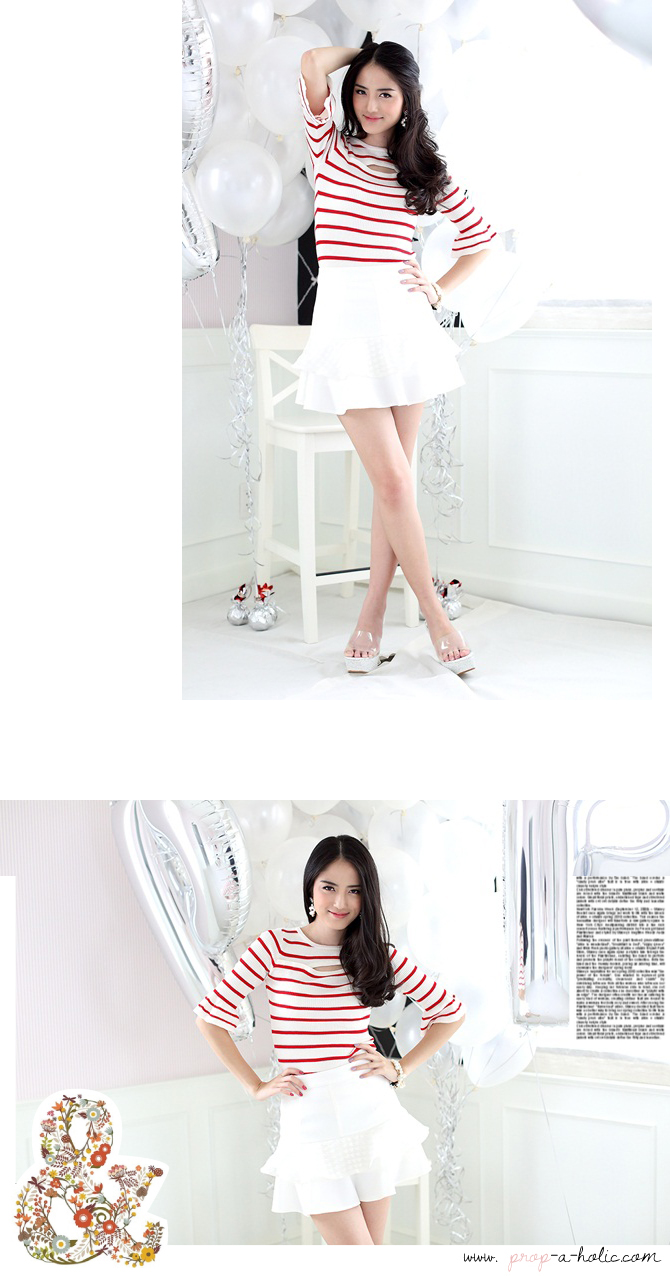 เสื้อยืดเนื้อคอตตอนผสม ตัวนี้นิ่ม บางเบา สบายมากมาย สีแดงตัดขาวเข้ากันดี๊ดี ปลายแขนทำเป็นระบายเพิ่มความหวานให้สาวๆ ด้วยนะคะ น่ารักแบบนี้ แมทช์กับอะไรก็ง่ายค่ะ หรือ จะให้สวยเซี้ยวแบบไม่เหมือนใคร แนะนำแมทช์กับรายการ DS680 ค่า