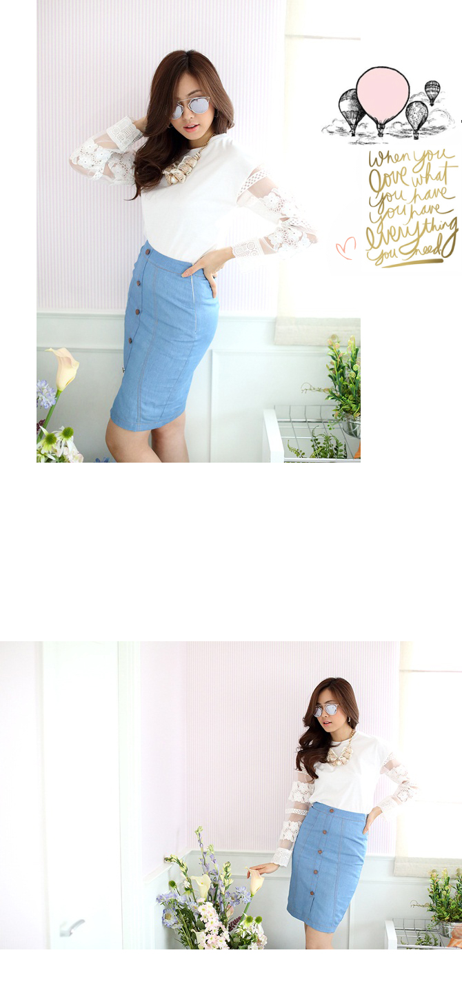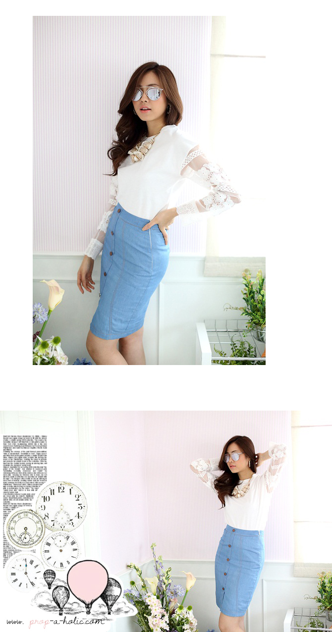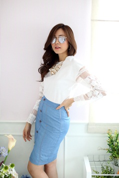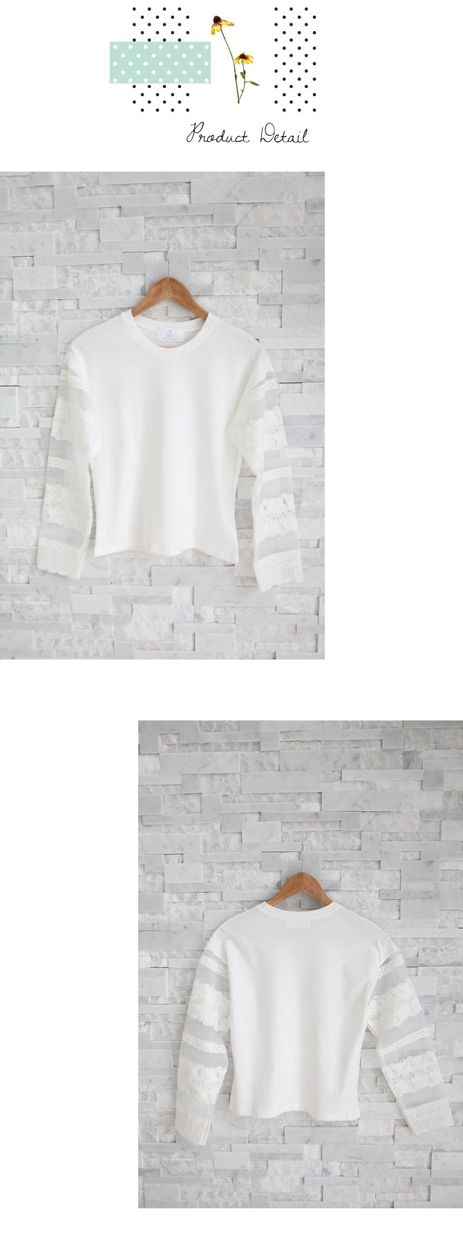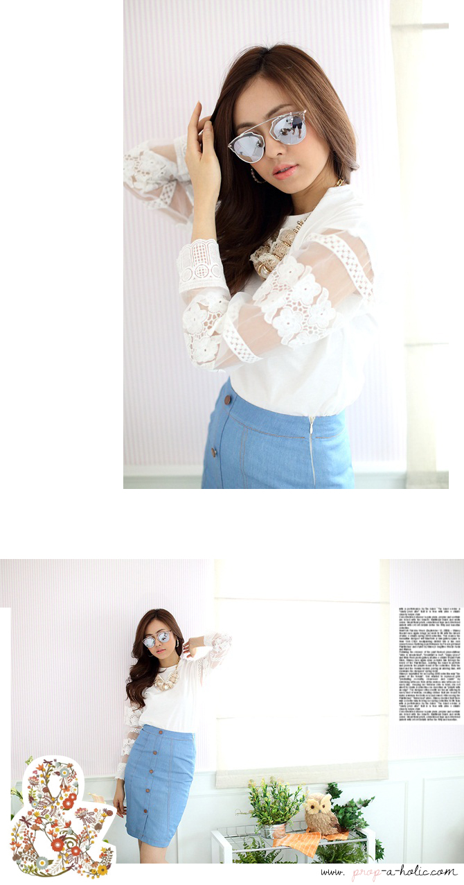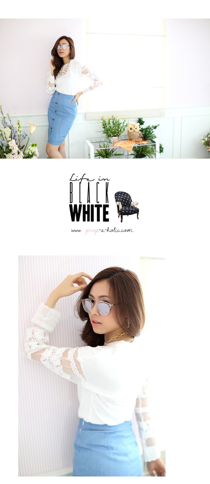 เสื้อยืดแบบน่ารัก ดีเทลเก๋ไม่เหมือนใครที่ผ้าแก้วโปร่งช่วงแขน ย้ำความหวานด้วยลูกไม้ที่ช่วงแขนและกุ๊นที่ขอบปลายแขน น่ารักหวานใสมากๆ เนื้อผ้าคอตตอนหนานุ่มใส่สบาย ถ้าอยากได้ลุกส์น่ารักๆ เพิ่ม แนะนำสาวๆ แมทช์กับรายการ ST401 ก็น่ารักดีนะคะ
