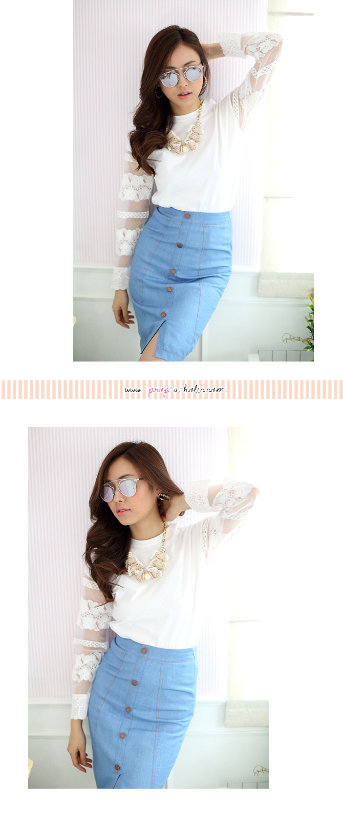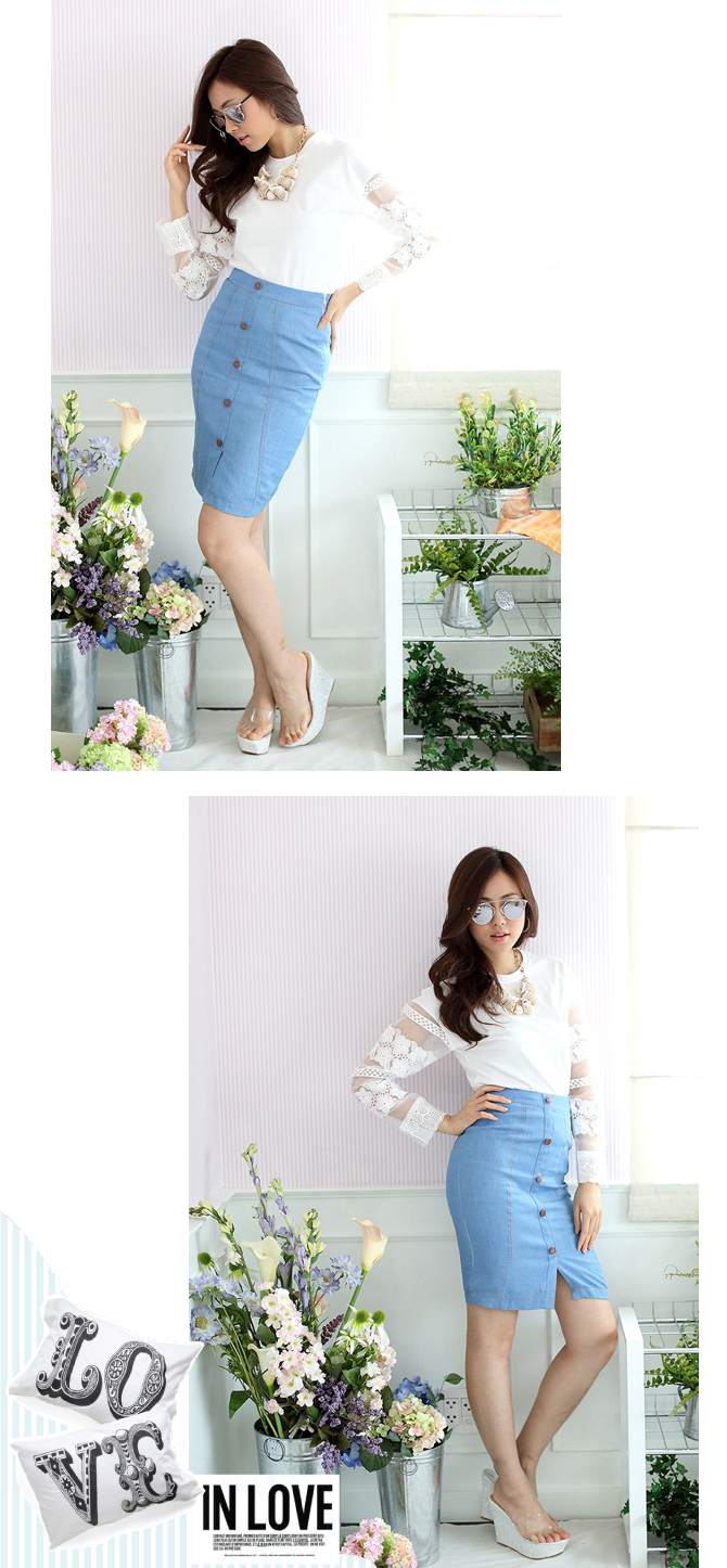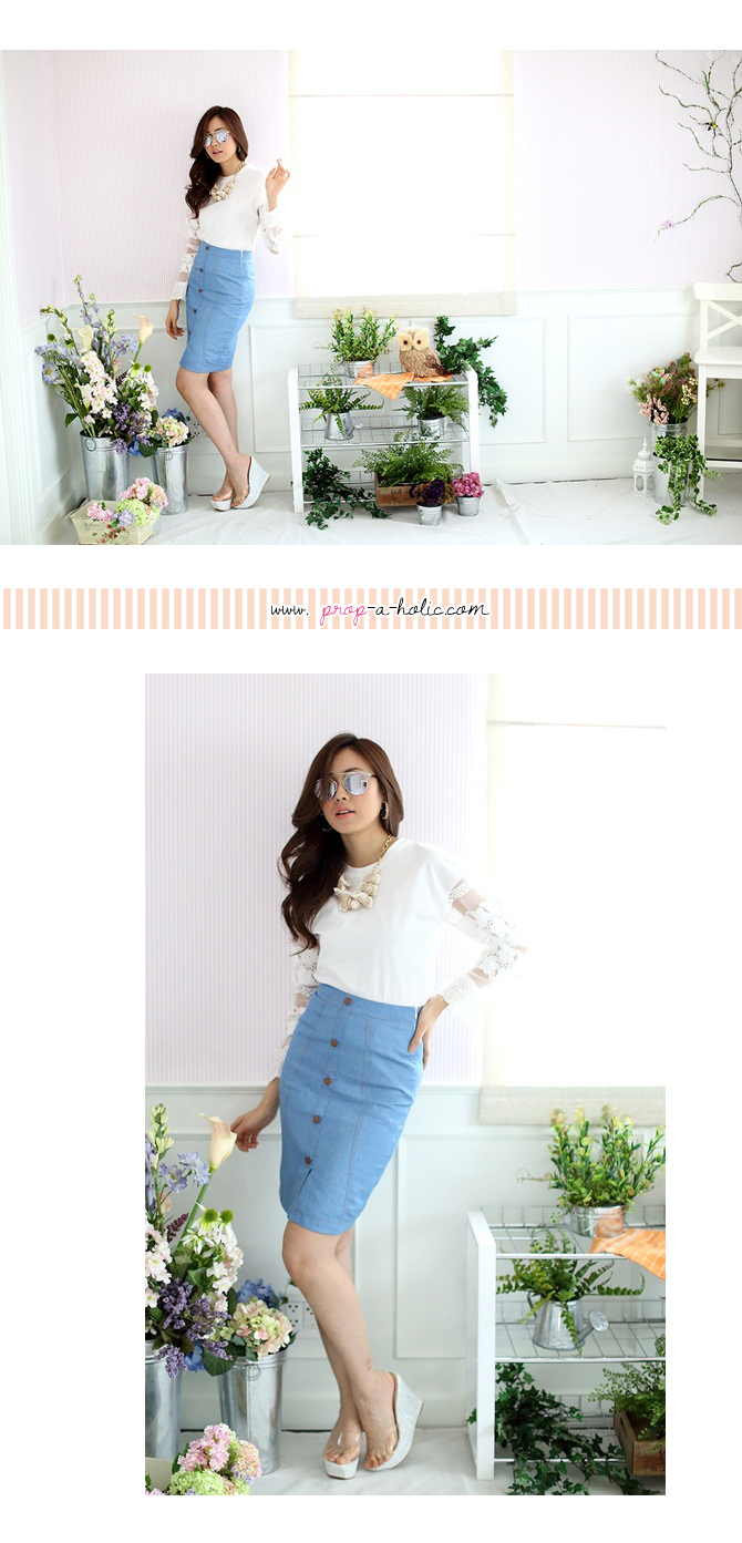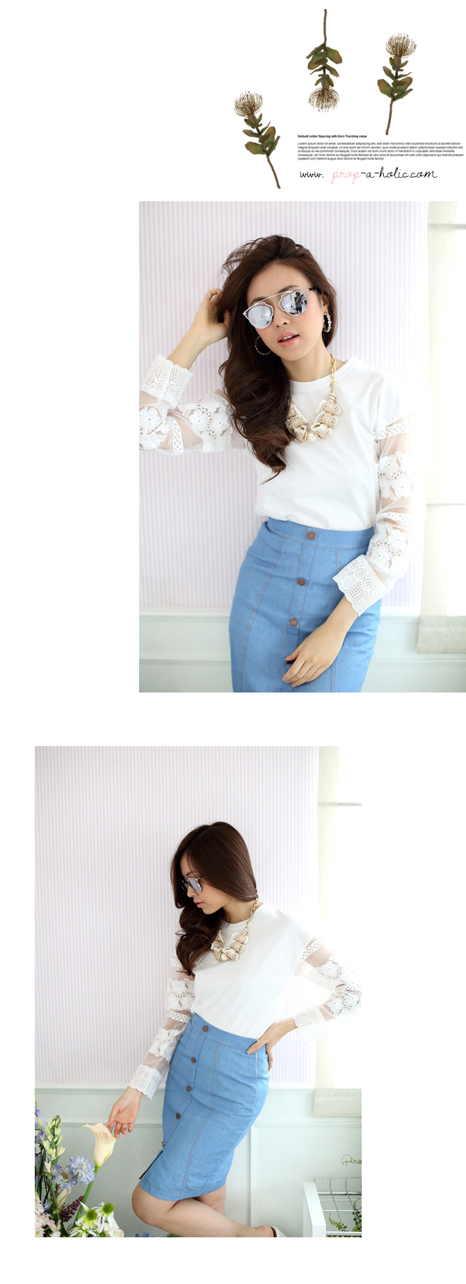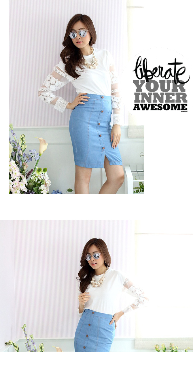 เสื้อยืดแบบน่ารัก ดีเทลเก๋ไม่เหมือนใครที่ผ้าแก้วโปร่งช่วงแขน ย้ำความหวานด้วยลูกไม้ที่ช่วงแขนและกุ๊นที่ขอบปลายแขน น่ารักหวานใสมากๆ เนื้อผ้าคอตตอนหนานุ่มใส่สบาย ถ้าอยากได้ลุกส์น่ารักๆ เพิ่ม แนะนำสาวๆ แมทช์กับรายการ ST401 ก็น่ารักดีนะคะ